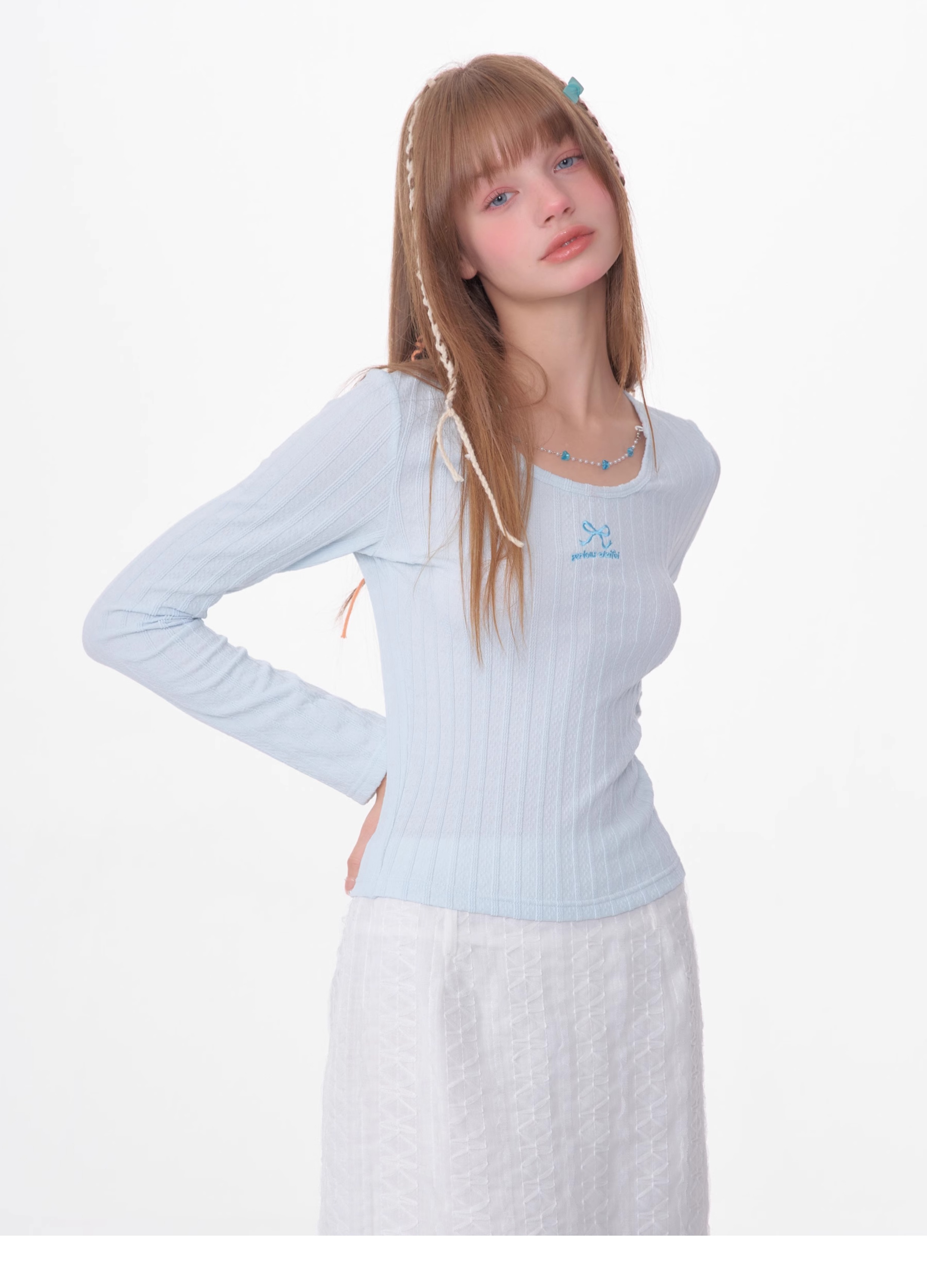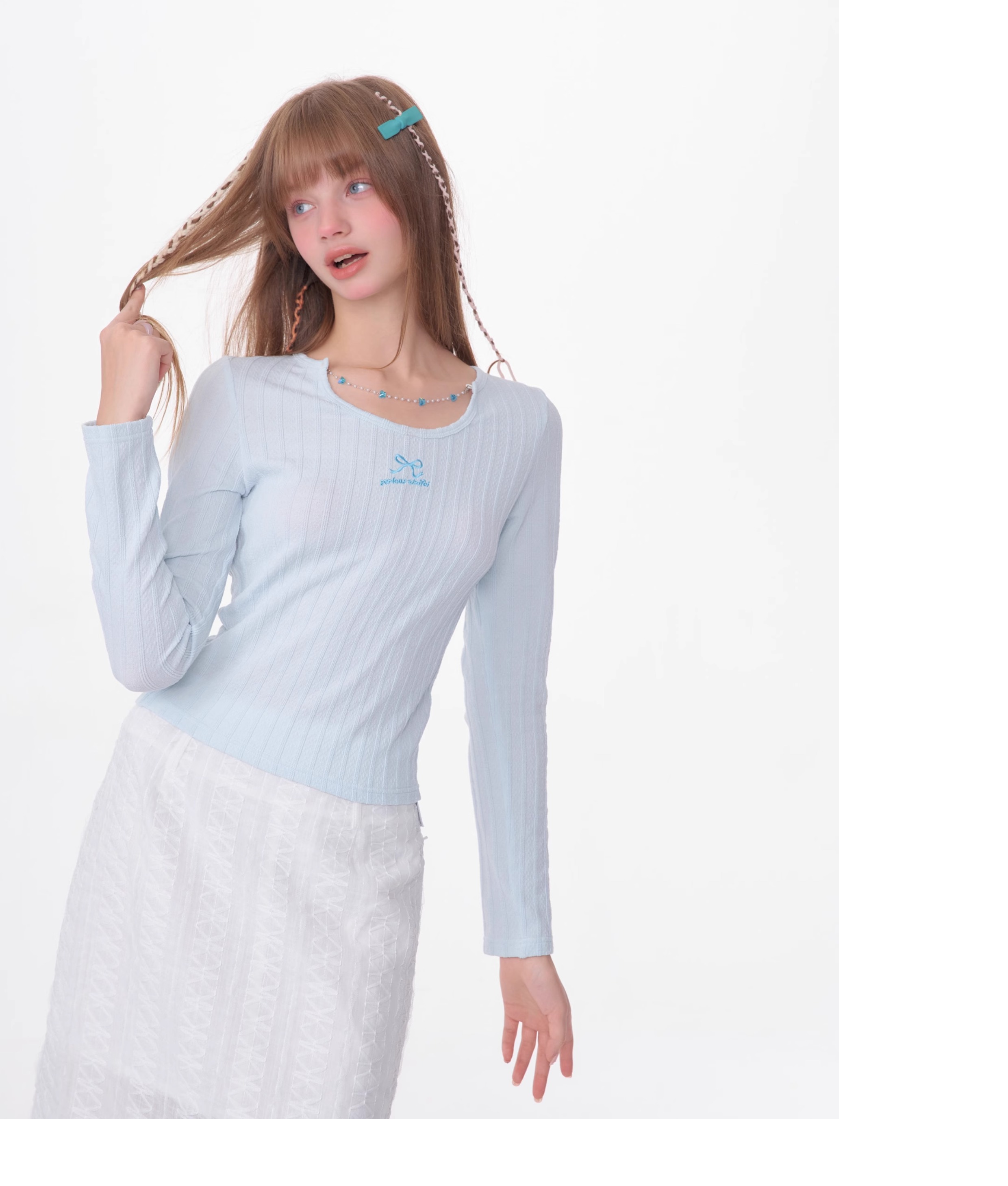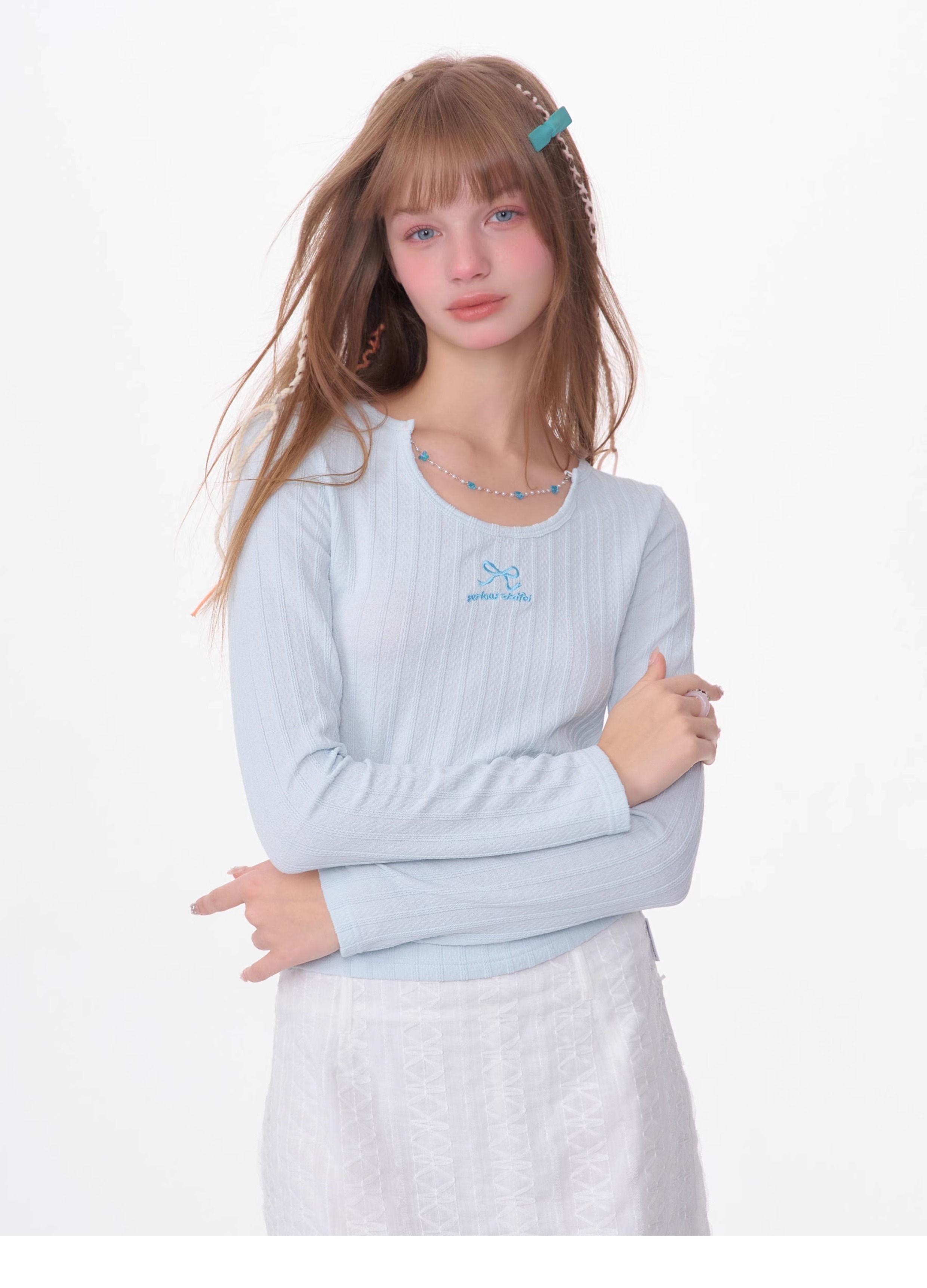 Slim Fit Chain Long Sleeve Top | Retro Knitted Design for Spring/Summer