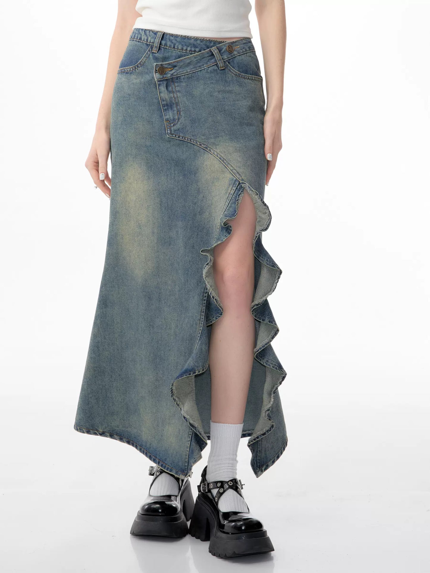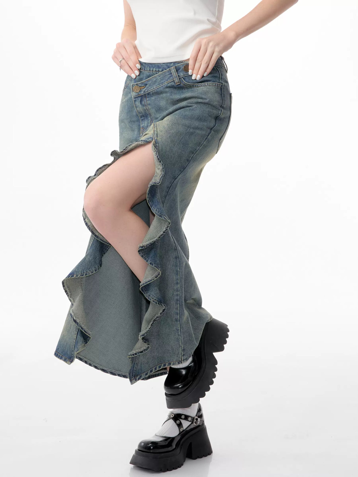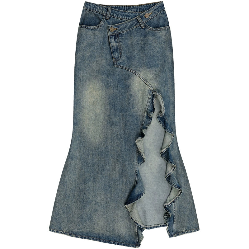 Denim Split Tail Skirt | Retro High Waist Slim Fit Spring/Summer Style
