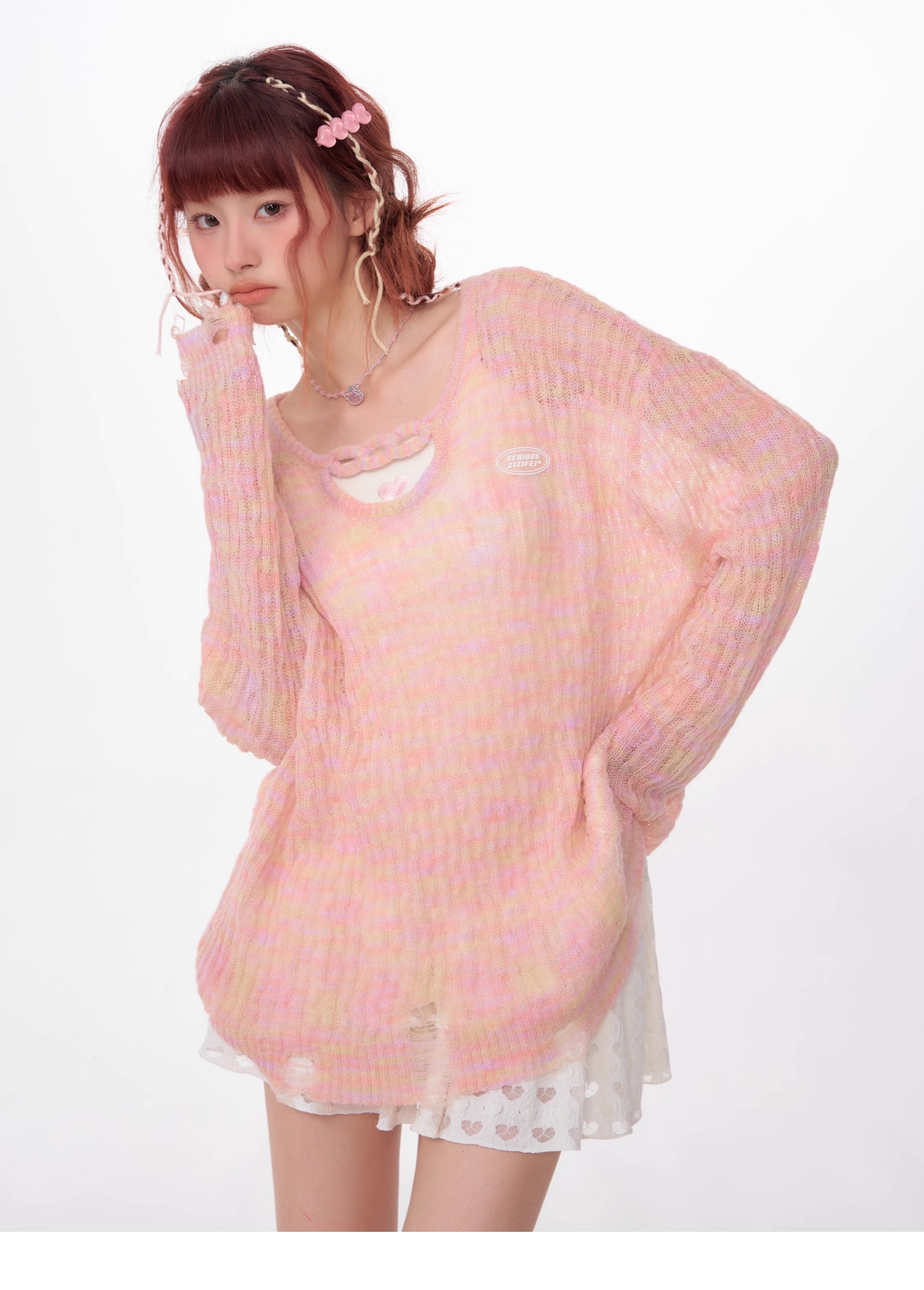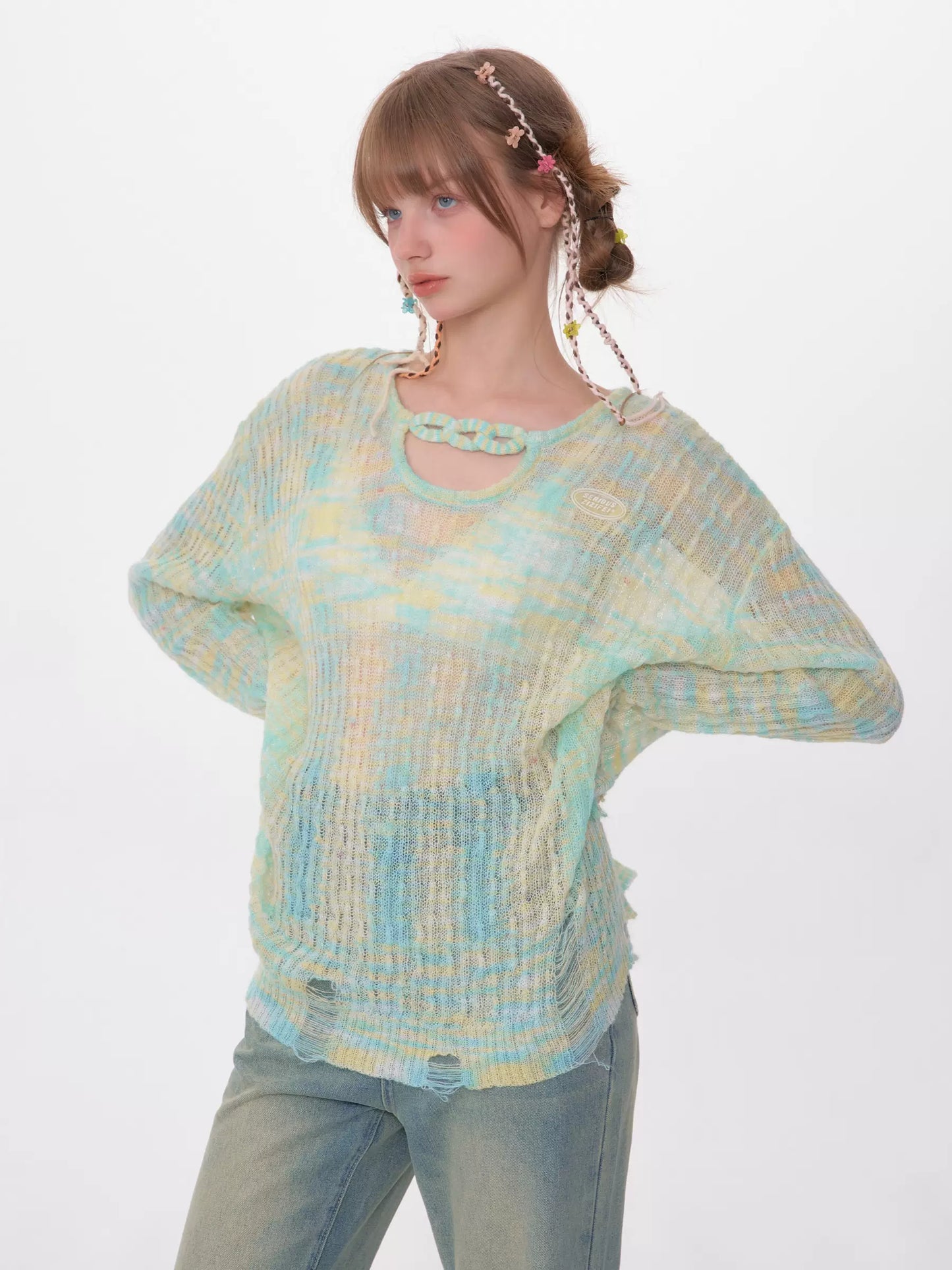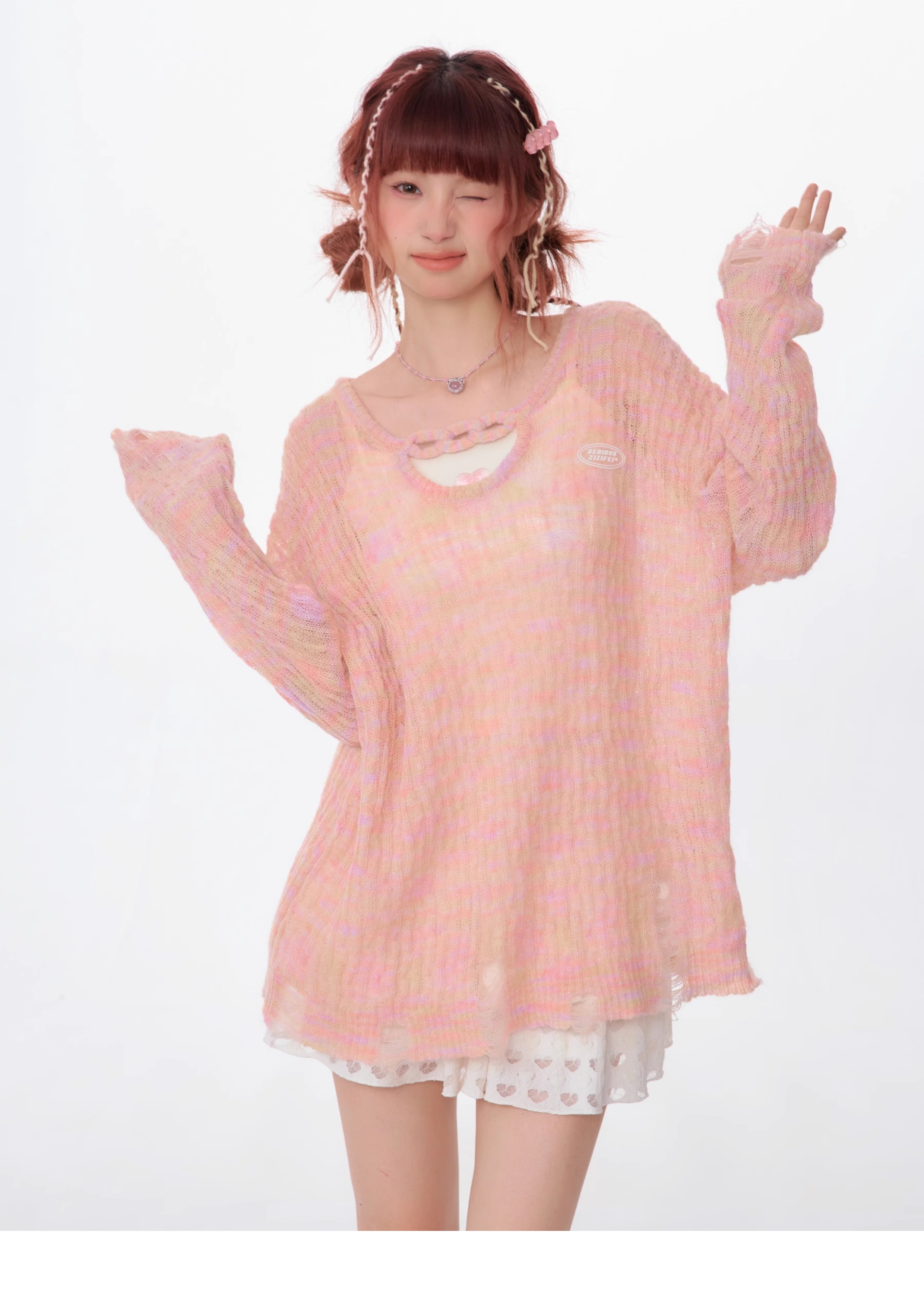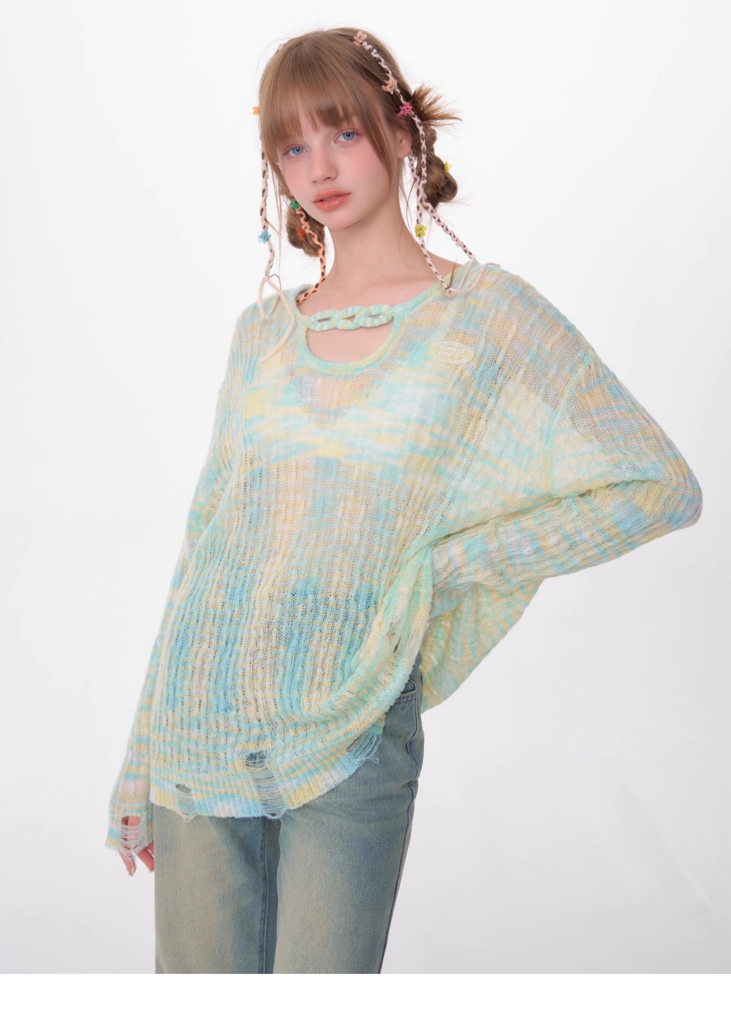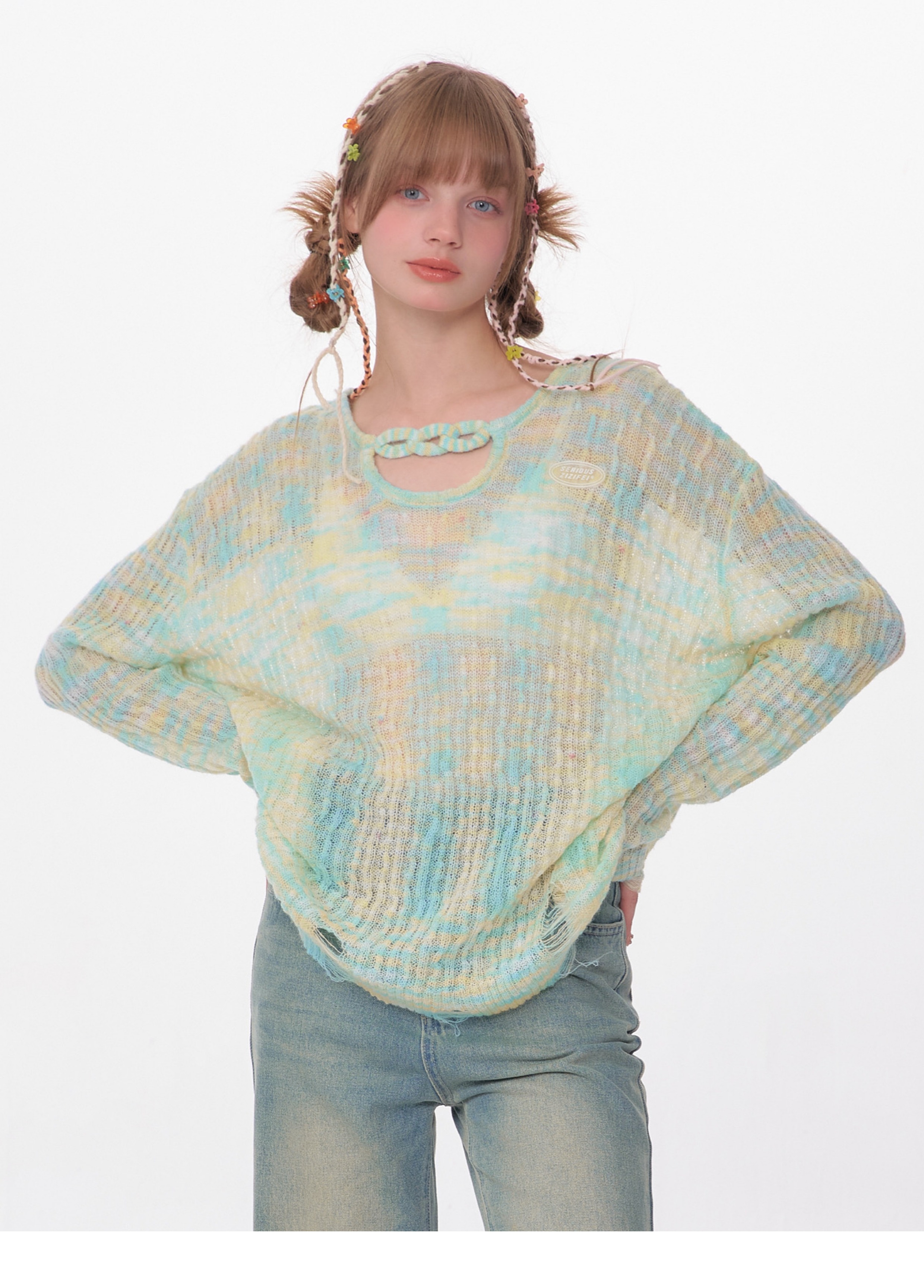 Translucent Hollow Sleeve Knit Top | Sunscreen Retro Design for Spring/Summer