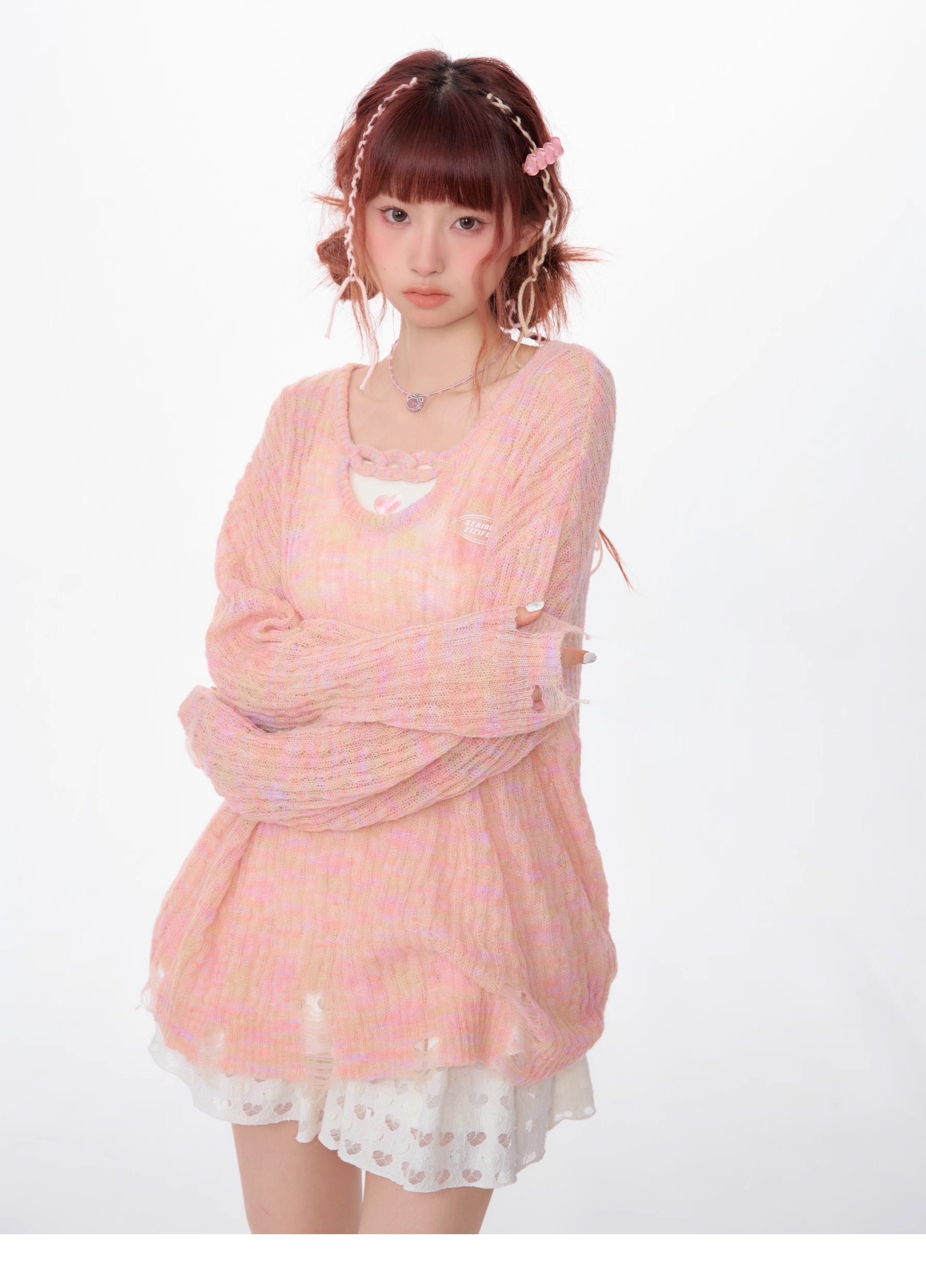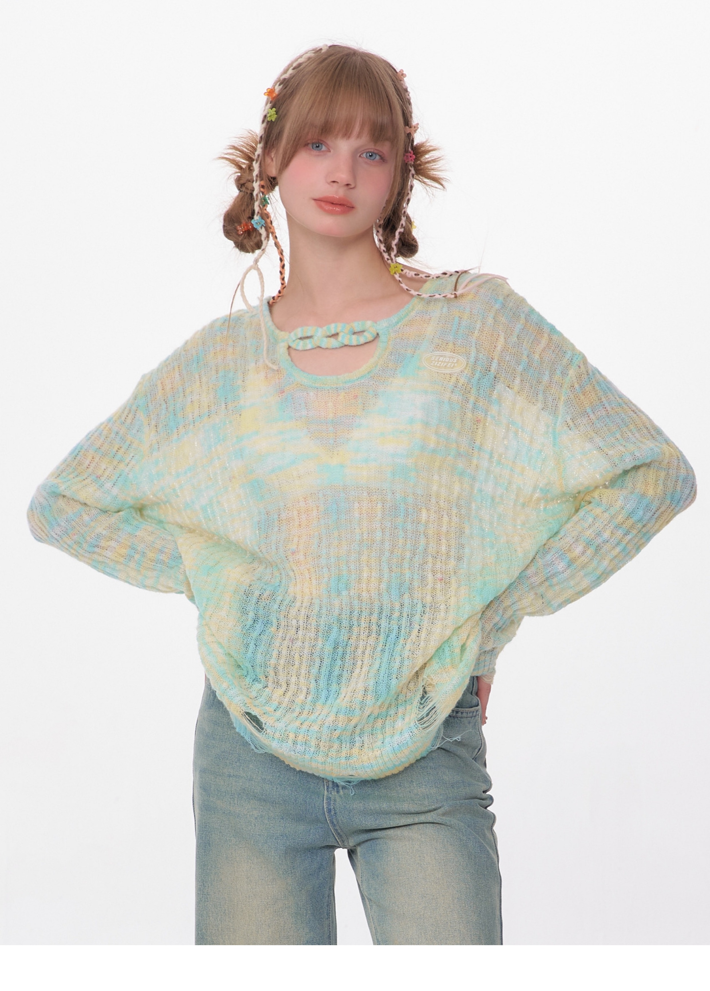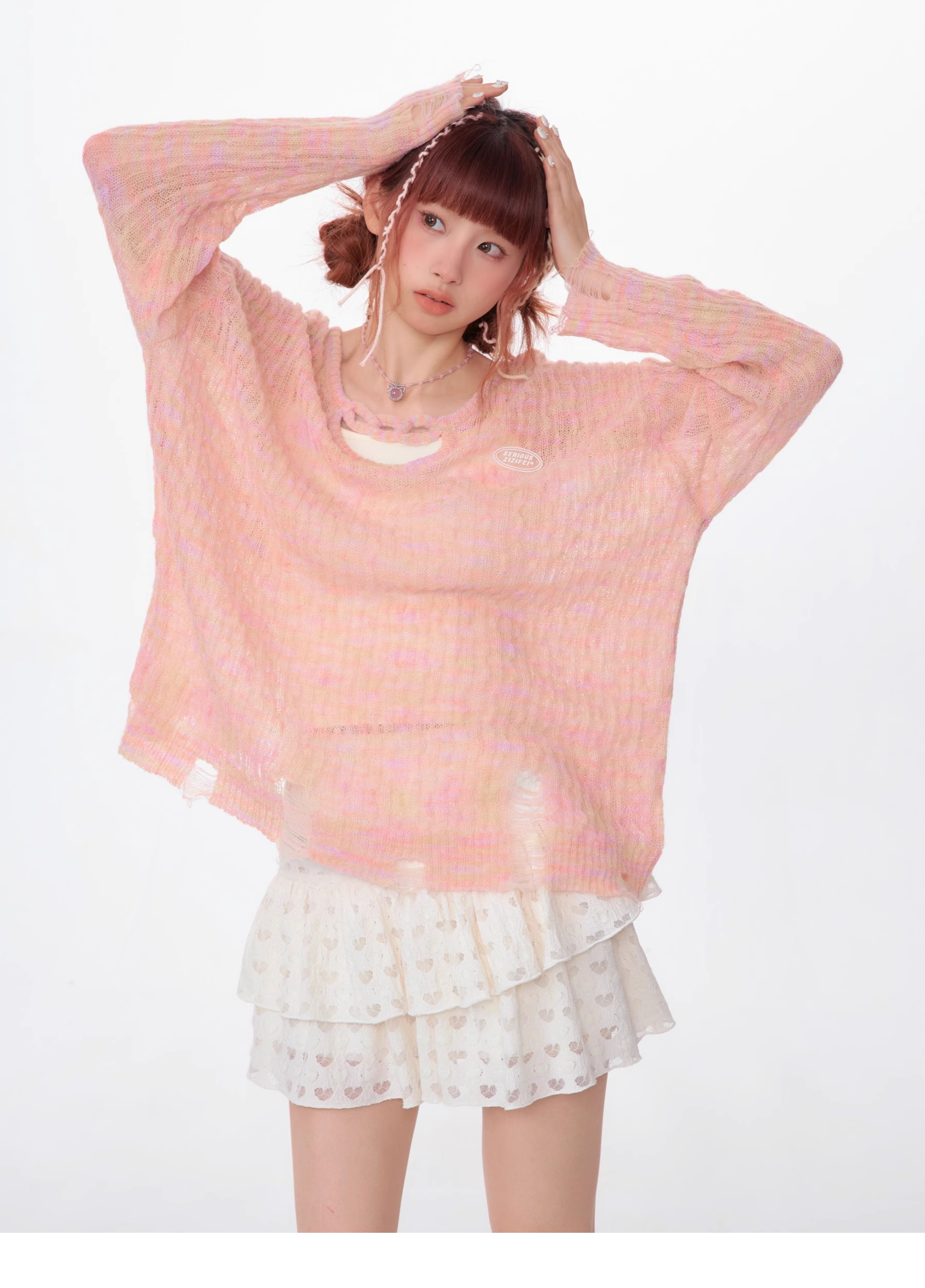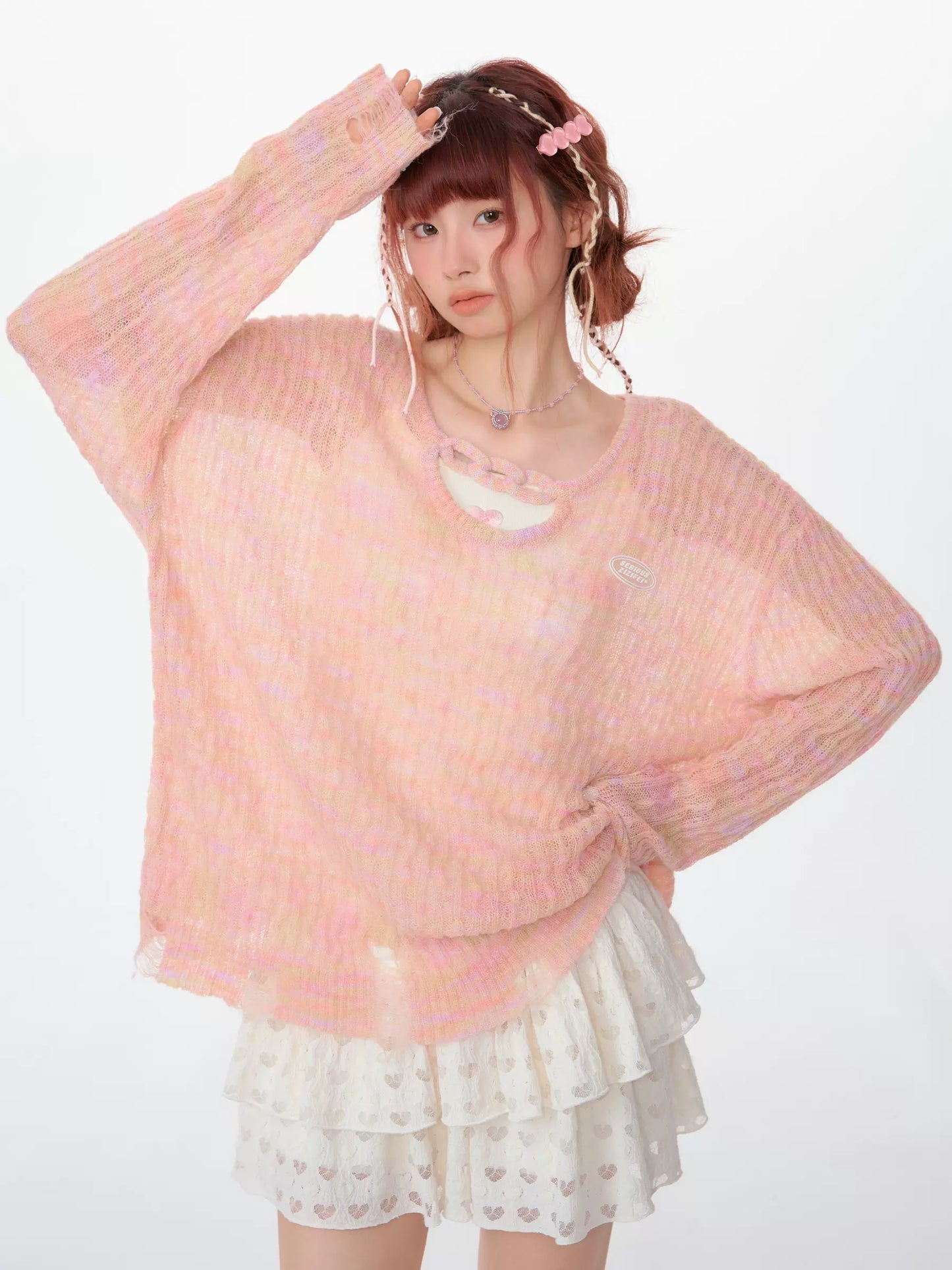 Translucent Hollow Sleeve Knit Top | Sunscreen Retro Design for Spring/Summer