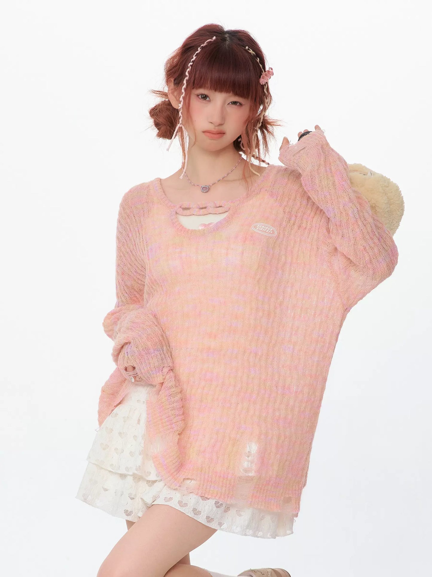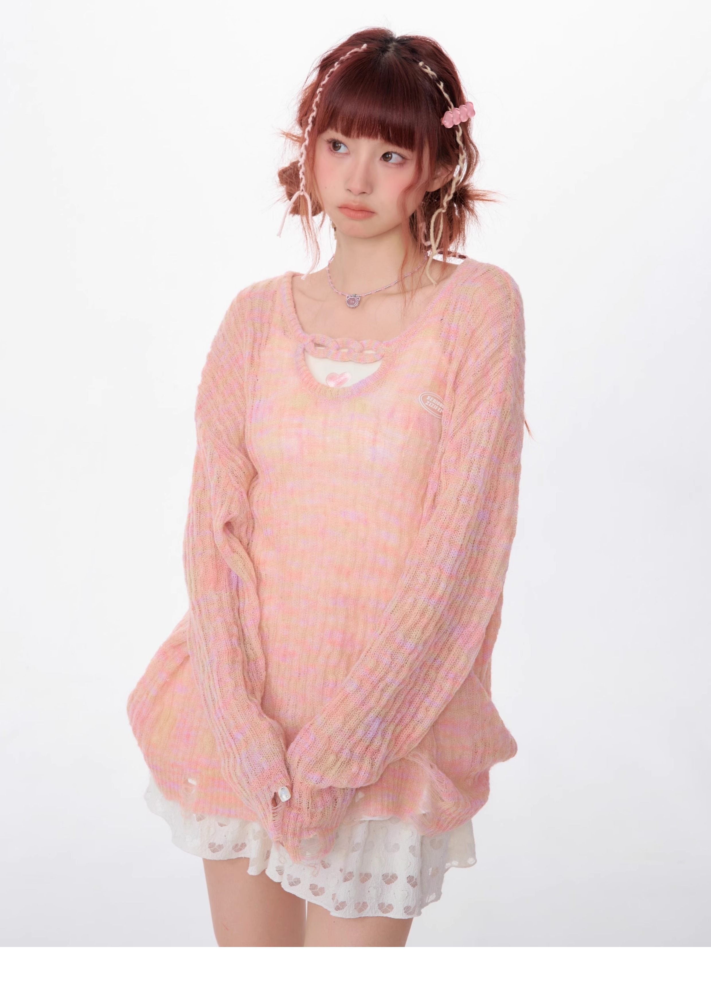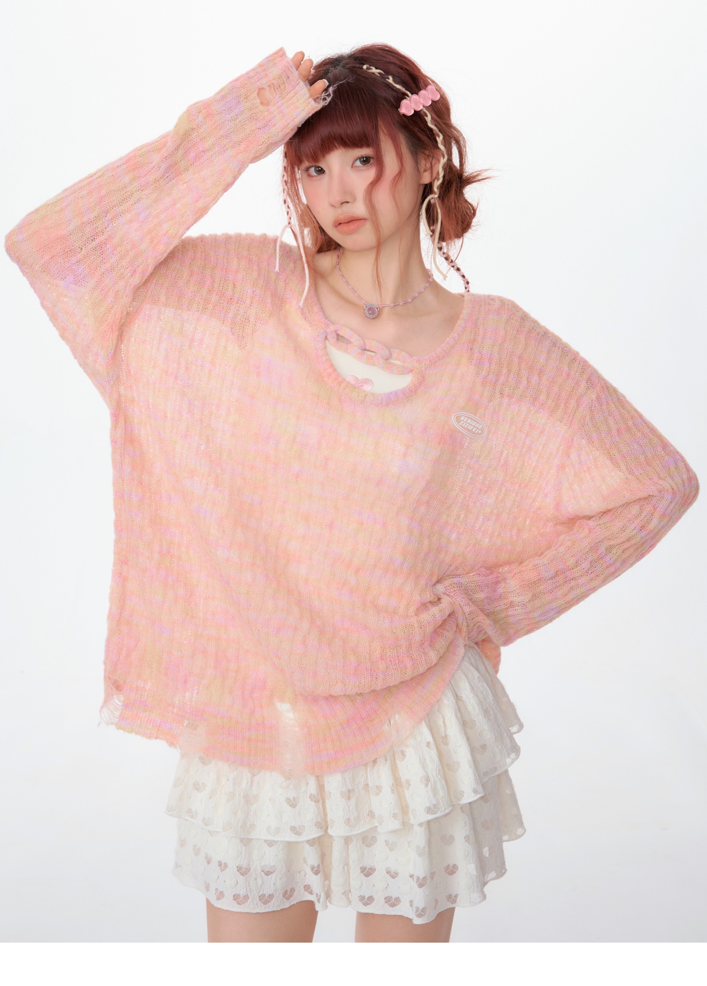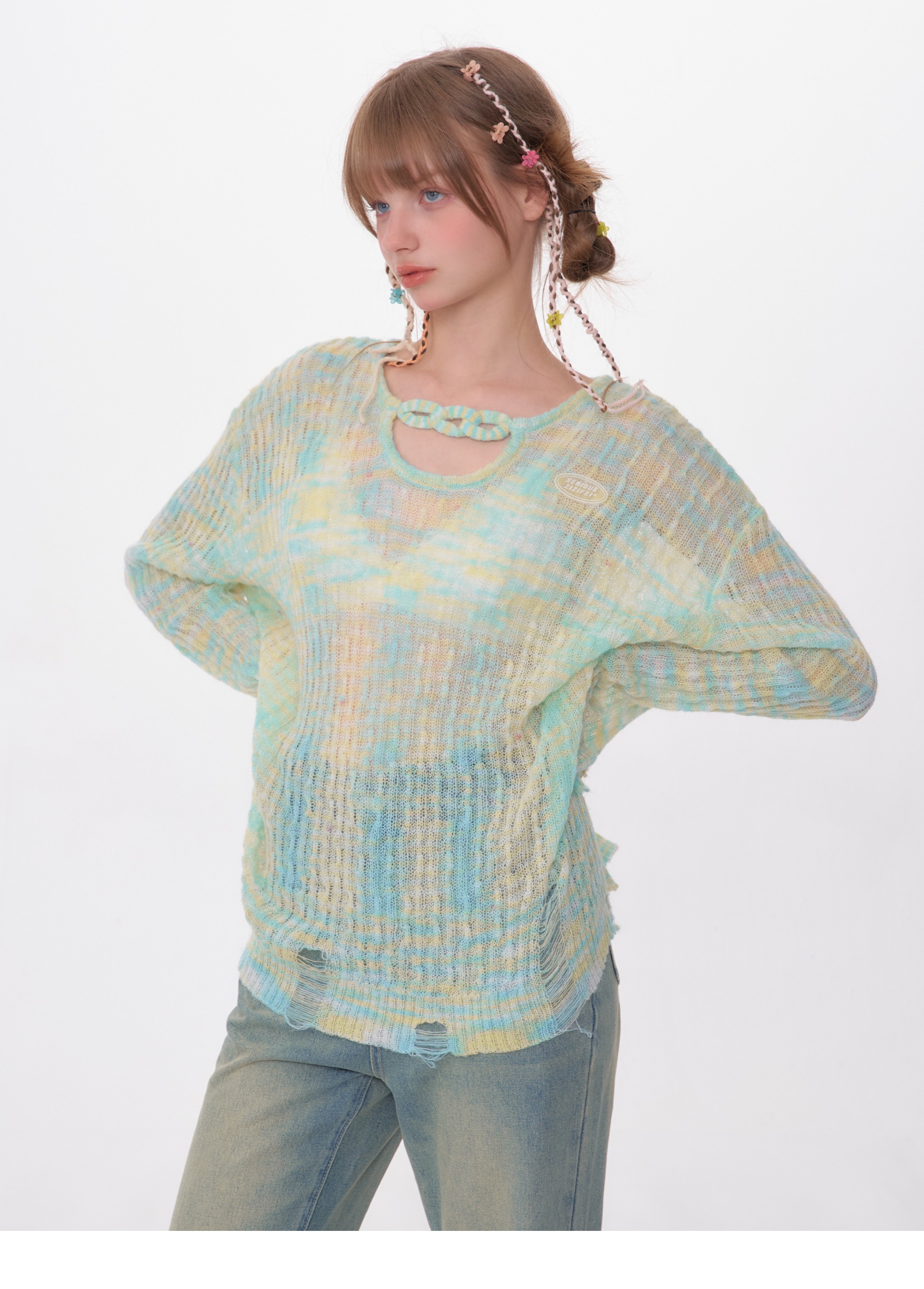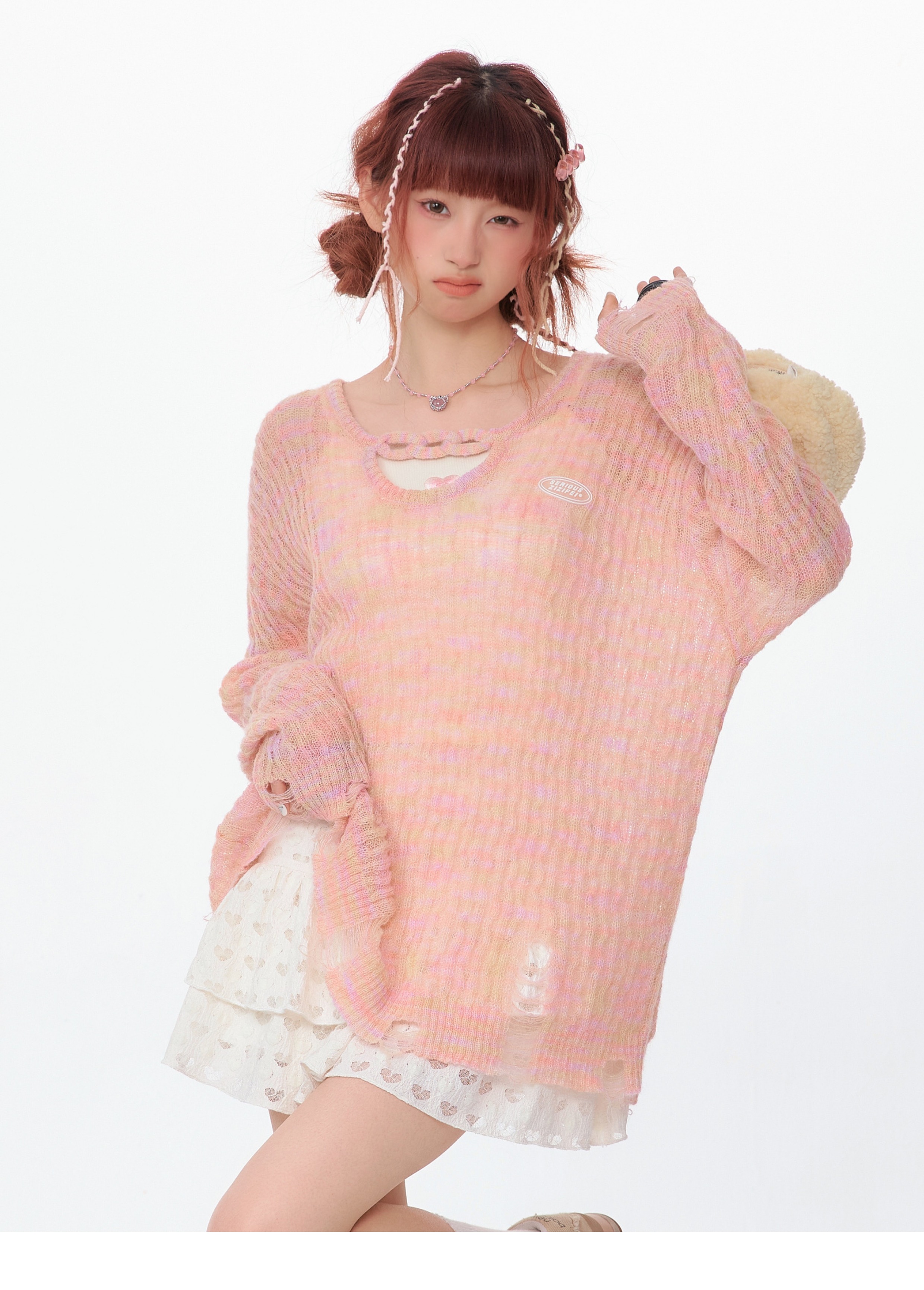 Translucent Hollow Sleeve Knit Top | Sunscreen Retro Design for Spring/Summer