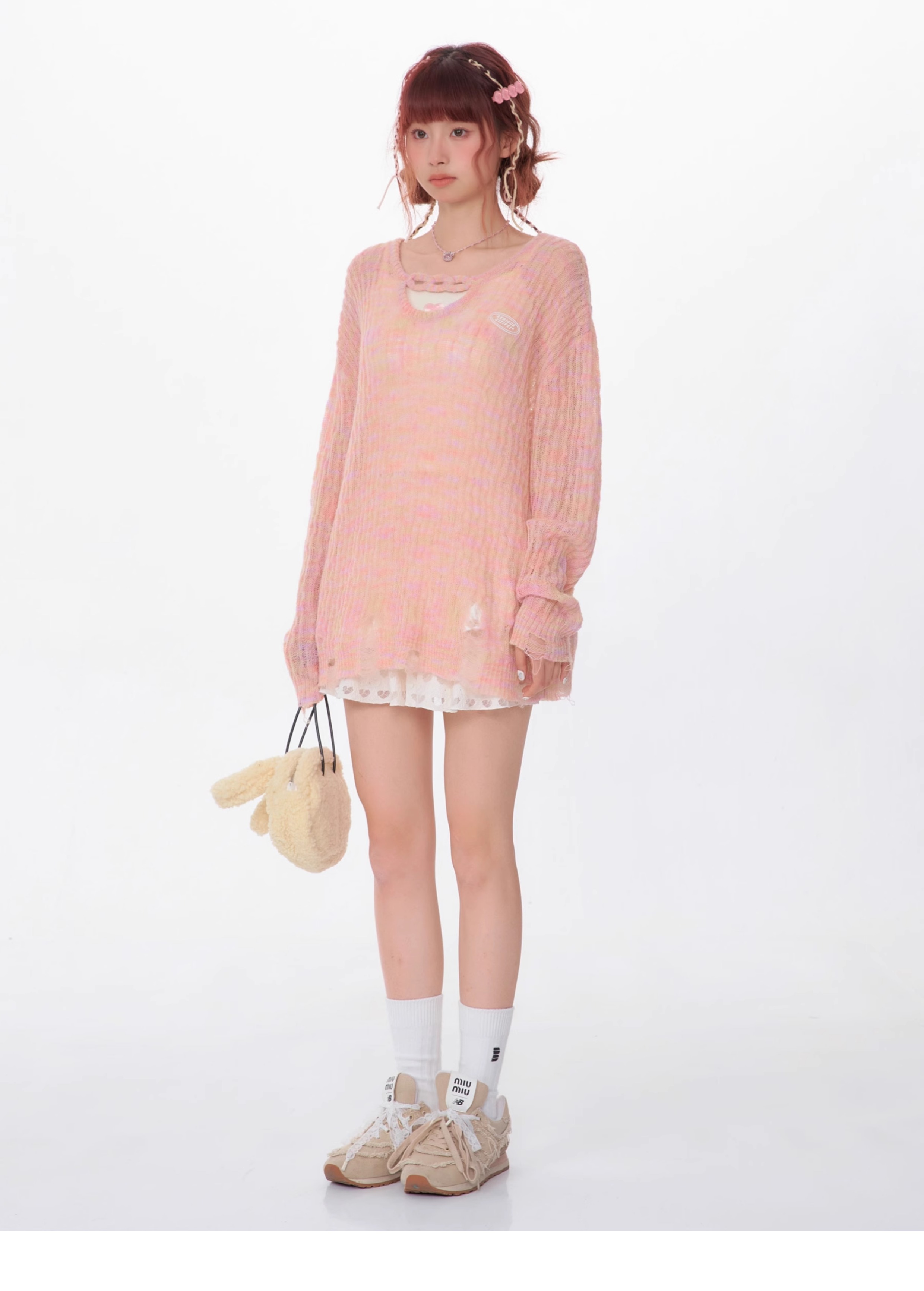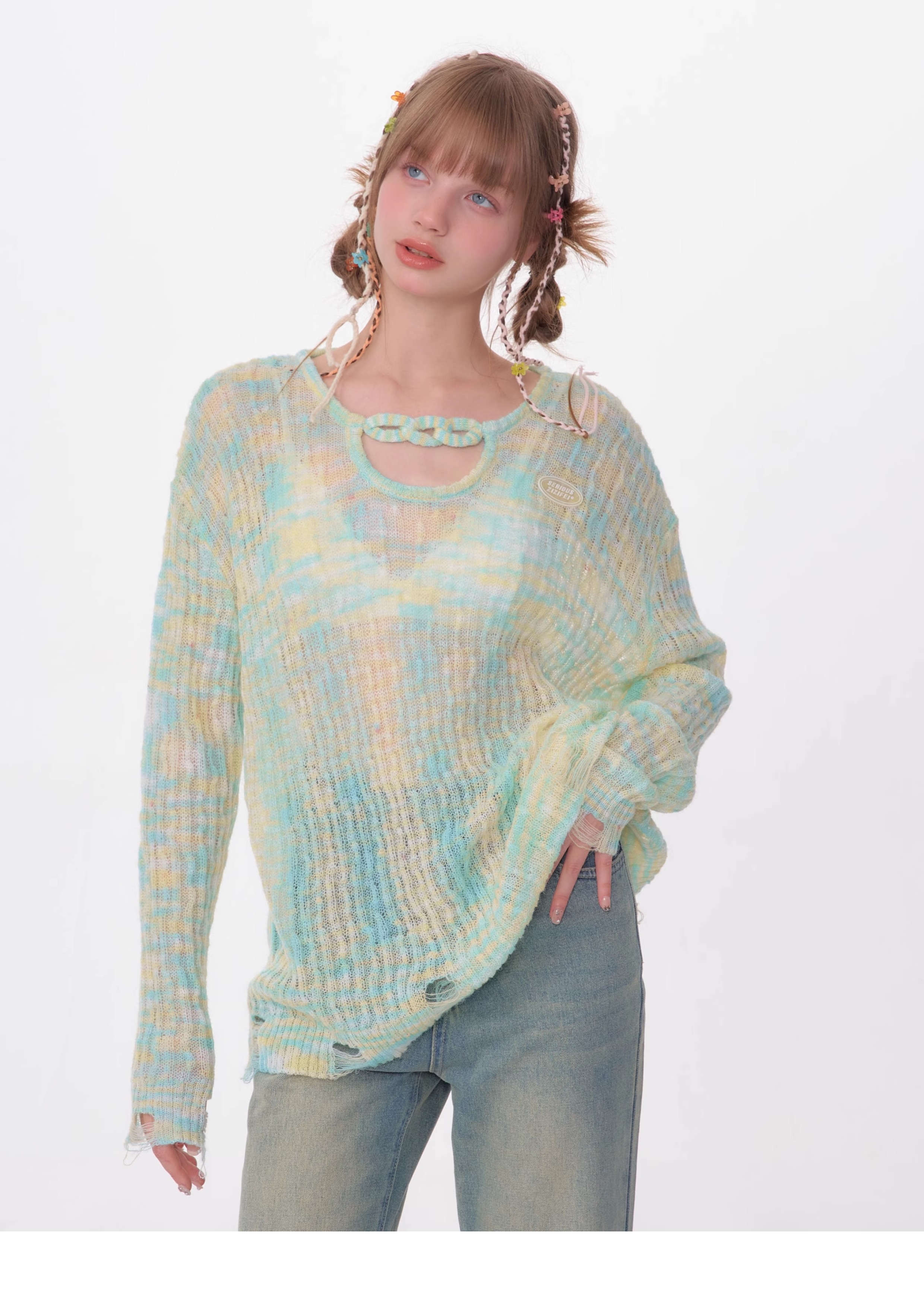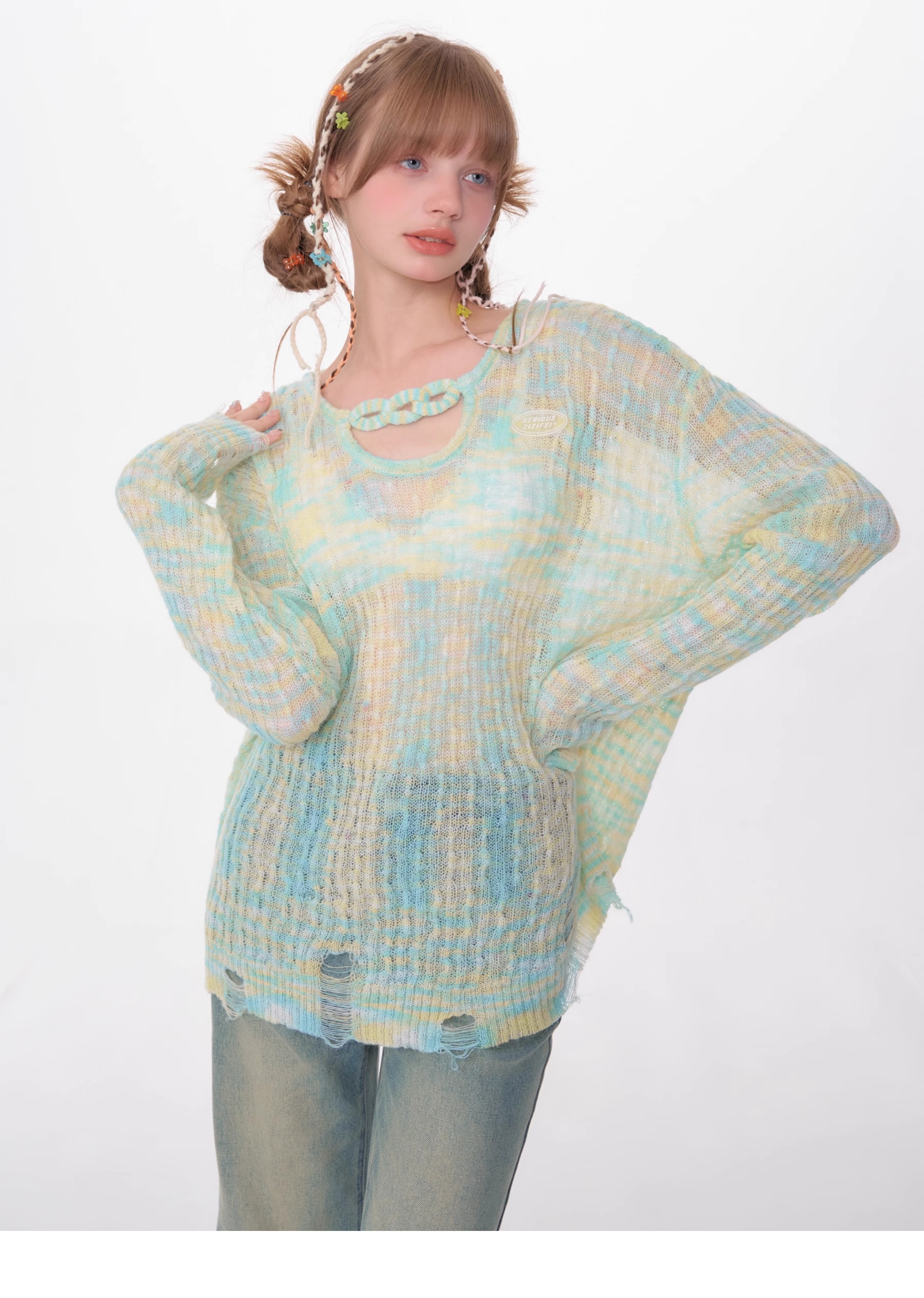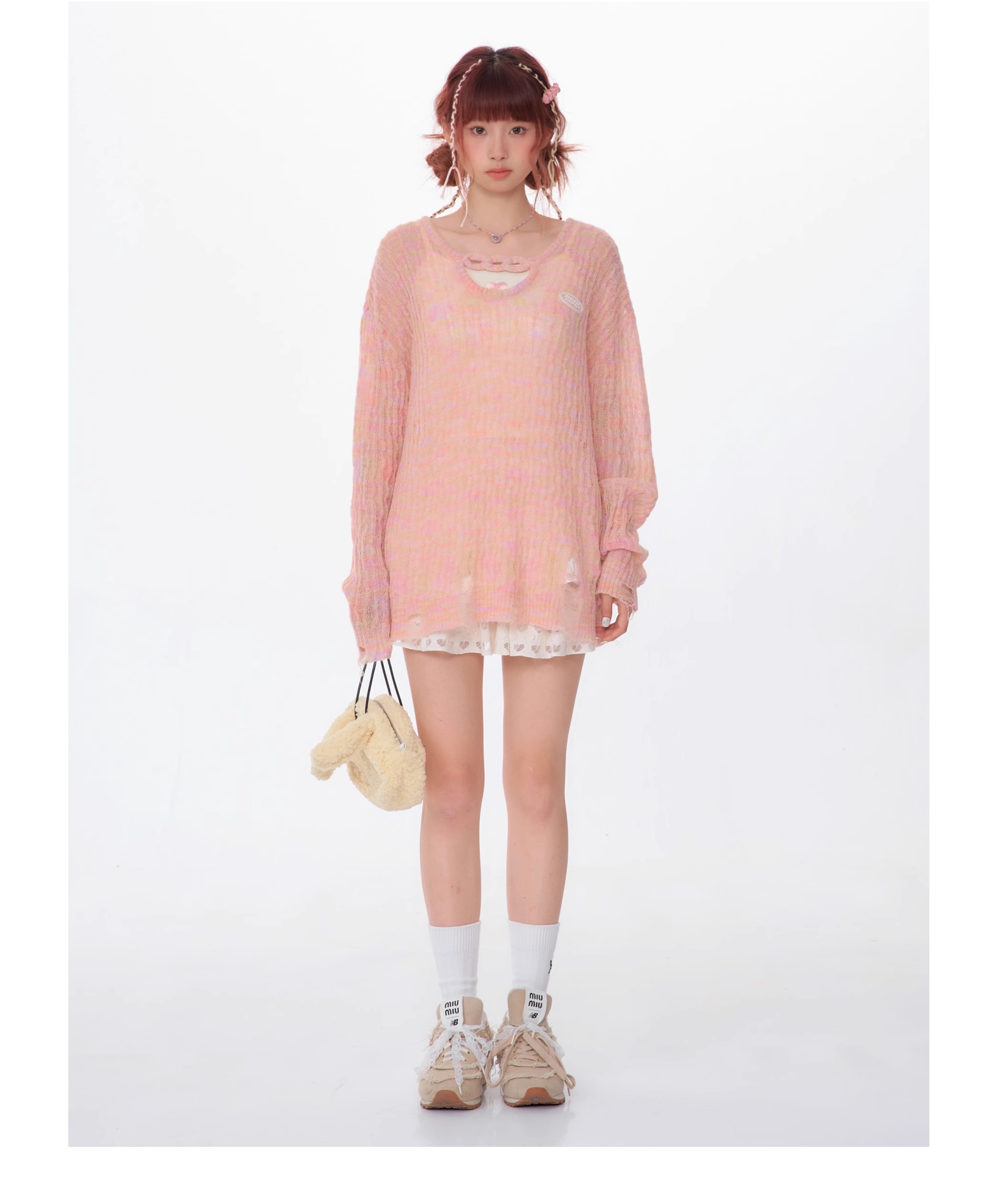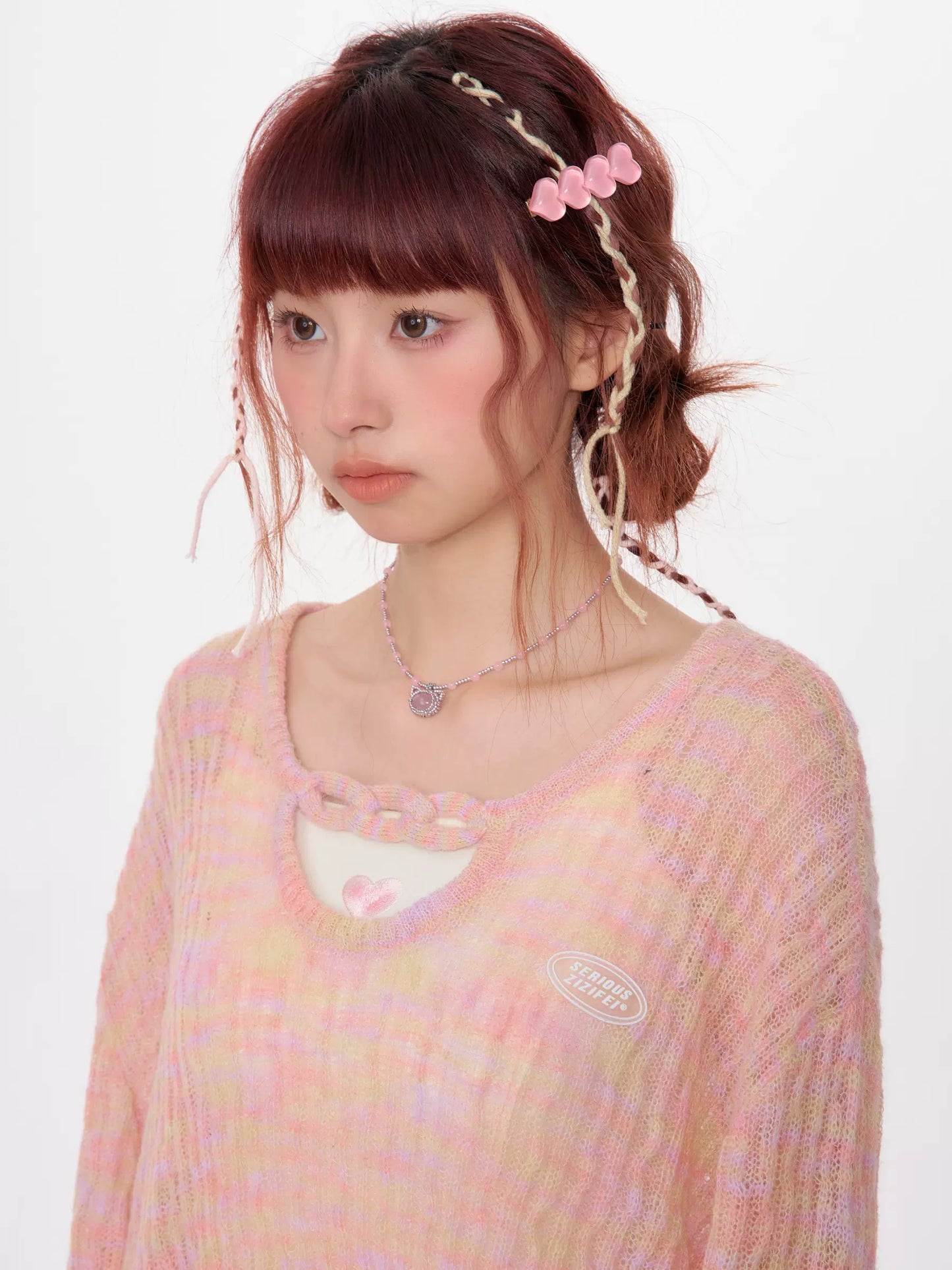 Translucent Hollow Sleeve Knit Top | Sunscreen Retro Design for Spring/Summer