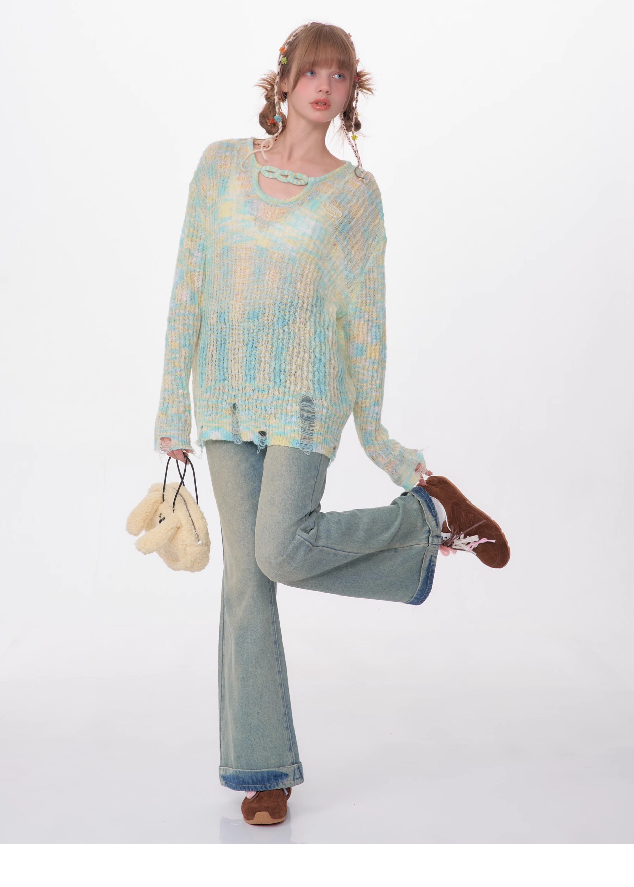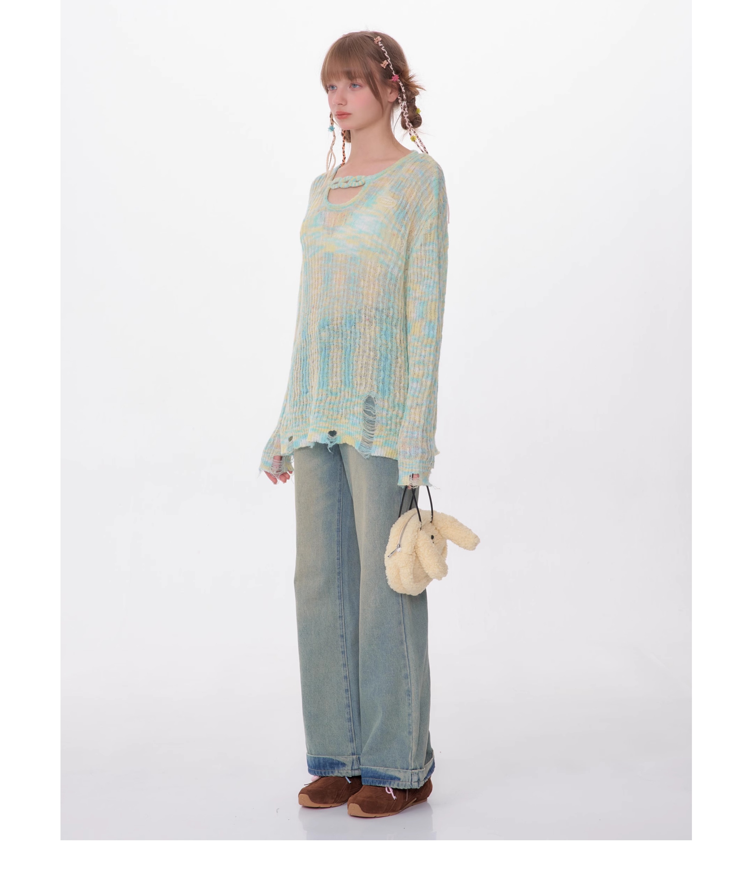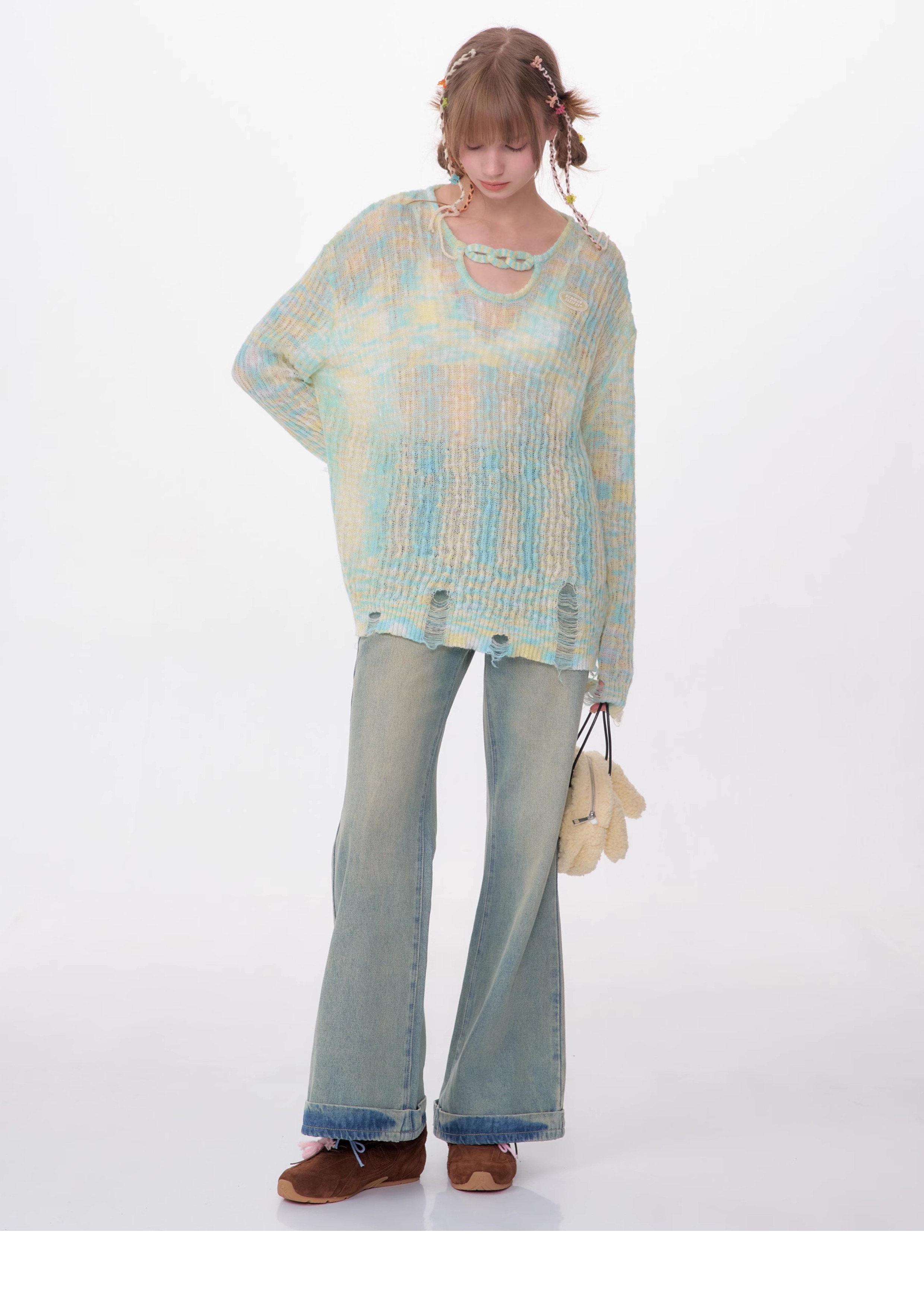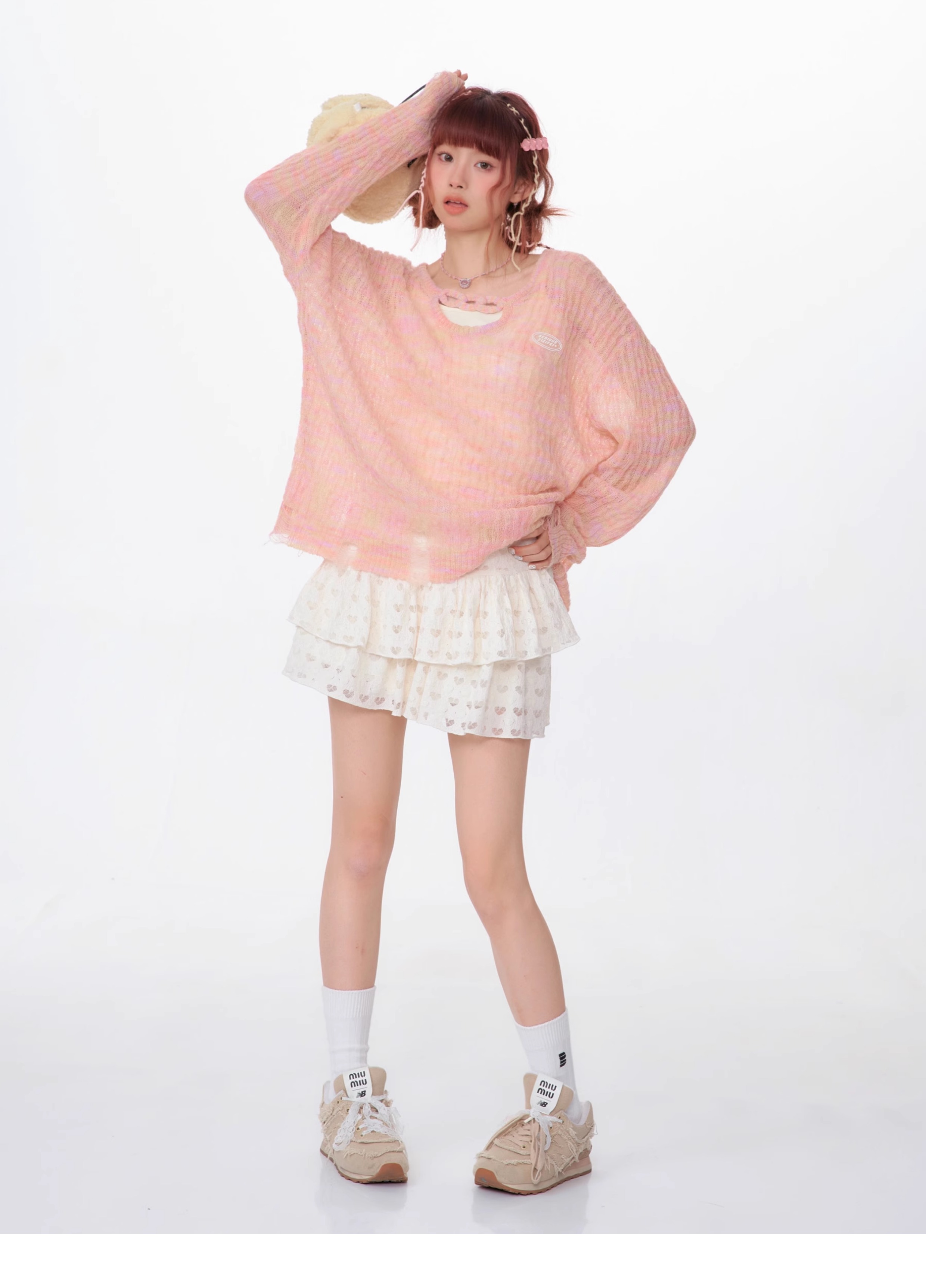 Translucent Hollow Sleeve Knit Top | Sunscreen Retro Design for Spring/Summer