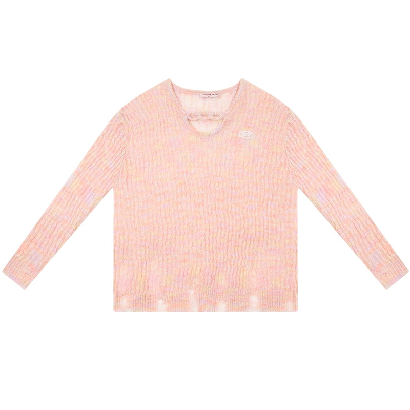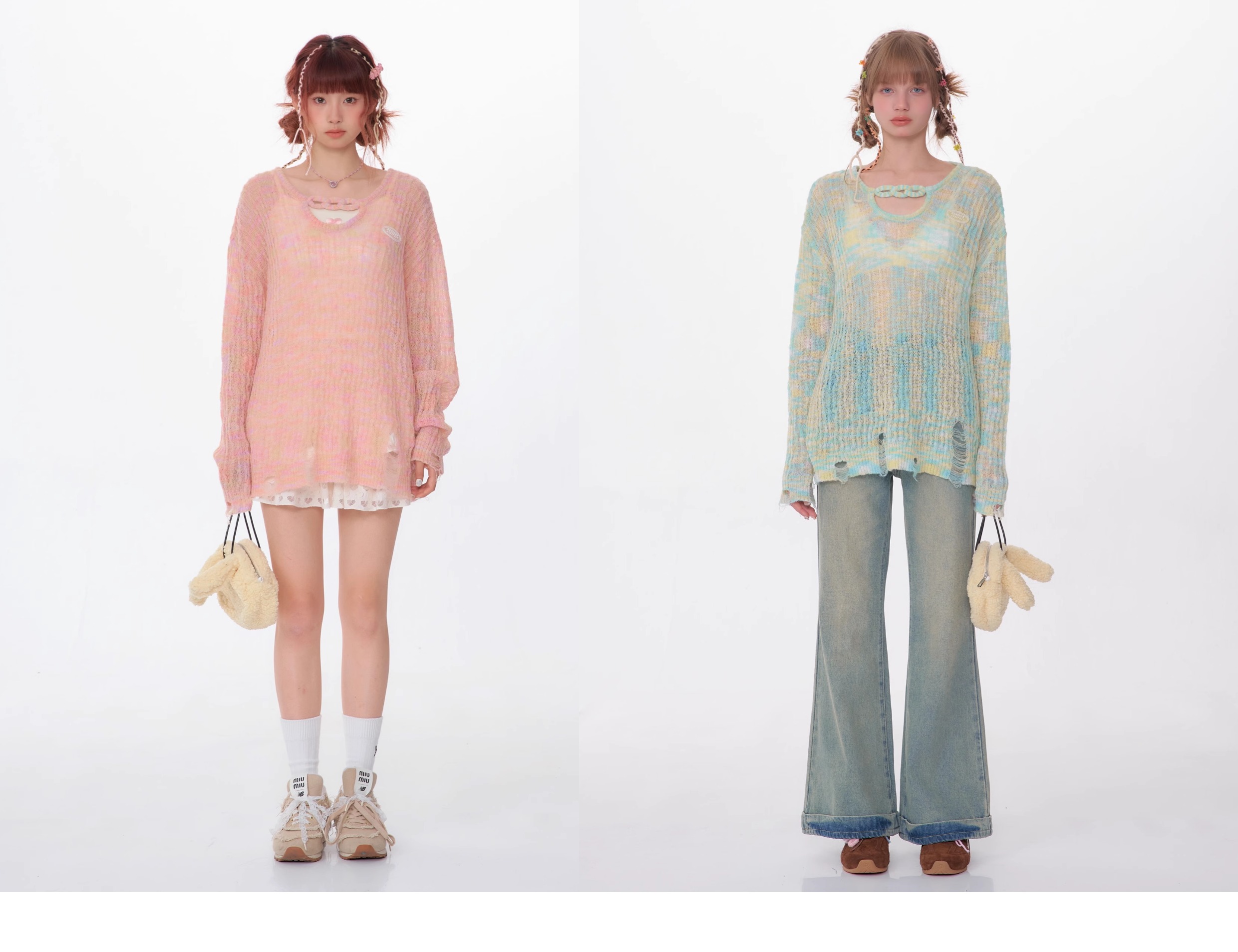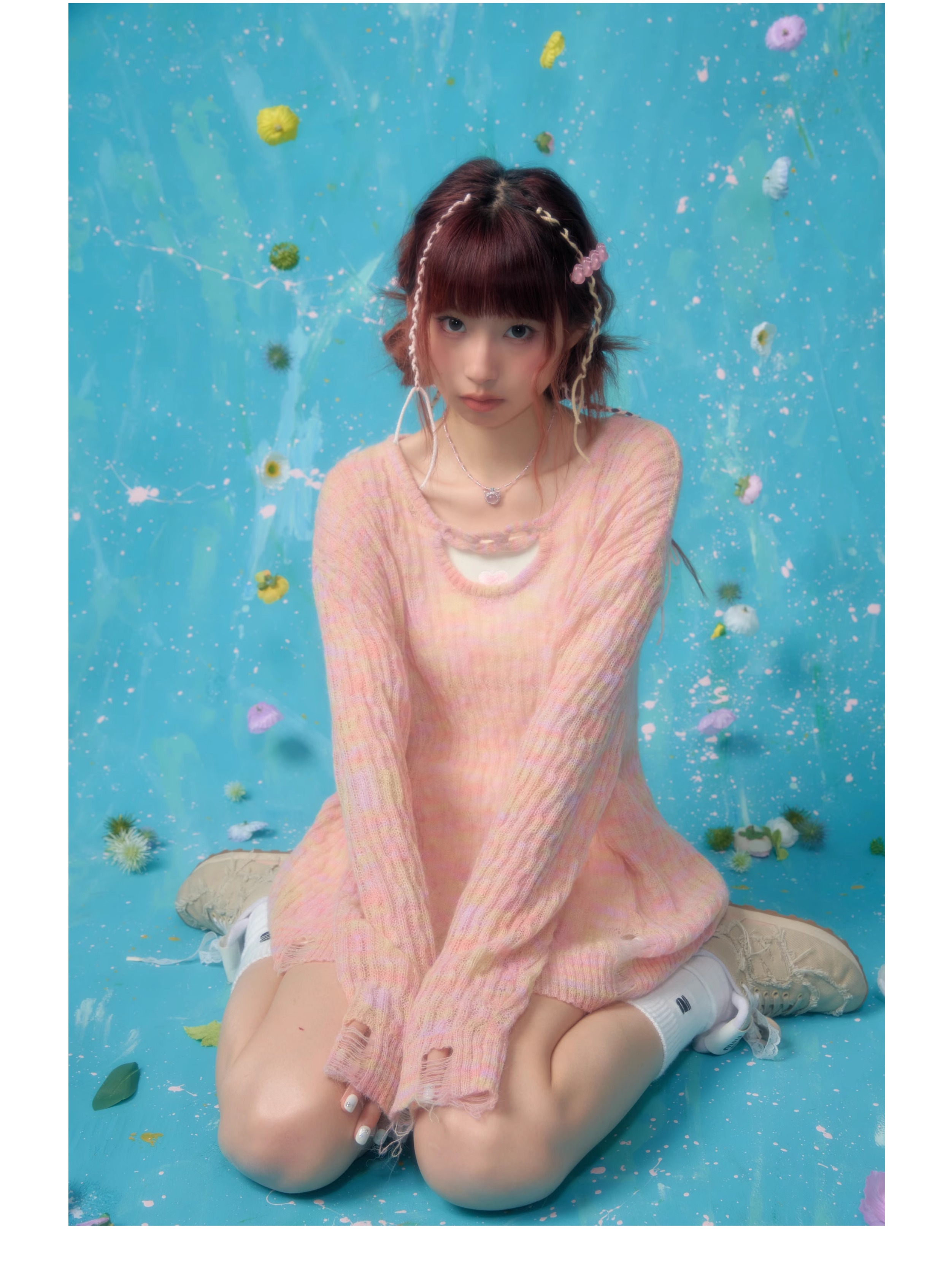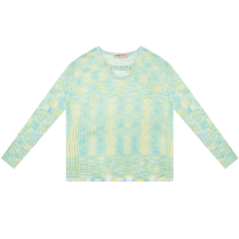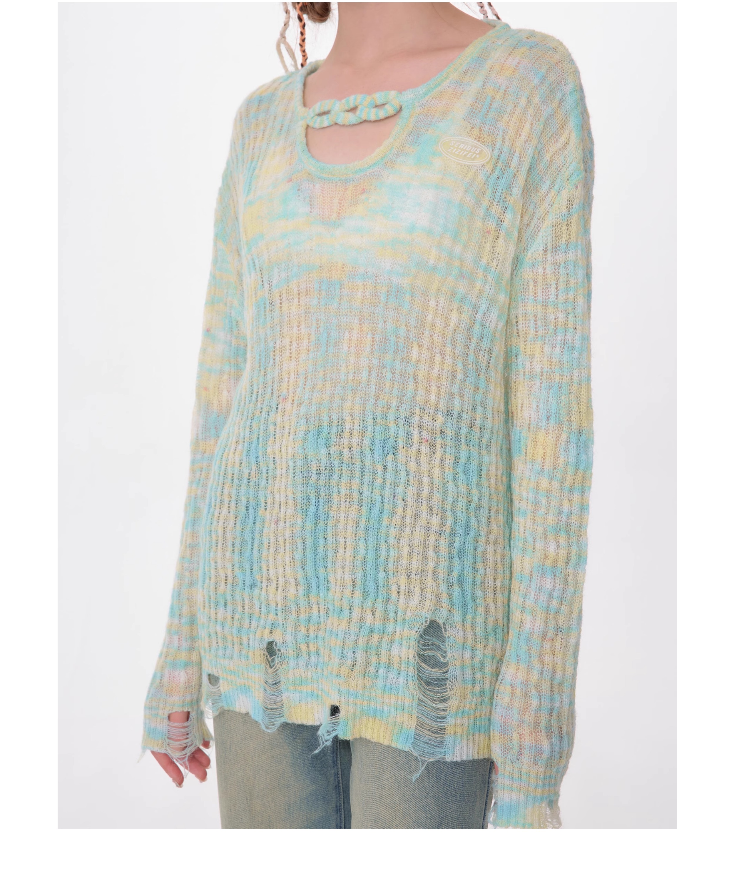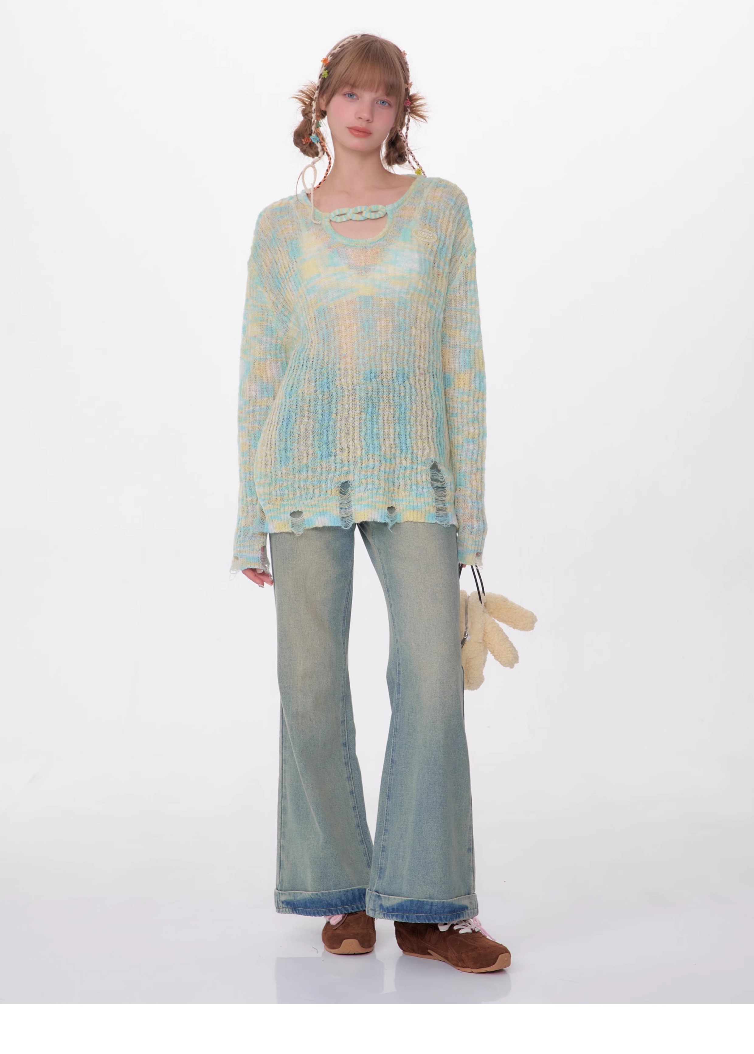 Translucent Hollow Sleeve Knit Top | Sunscreen Retro Design for Spring/Summer