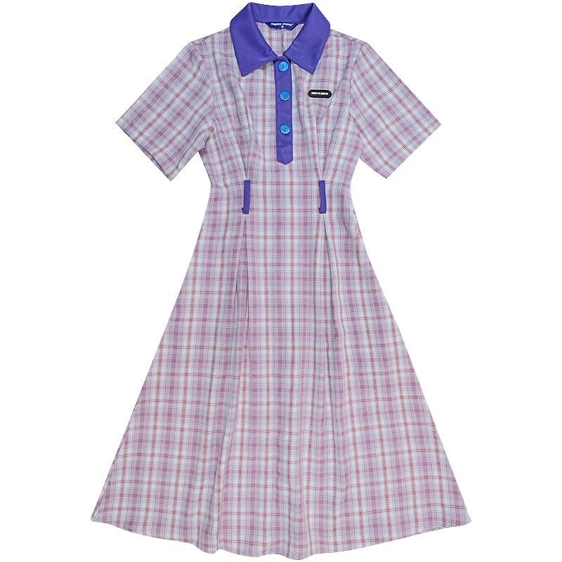 Cow Oil Green Plaid Polo Collar Dress - Retro Style