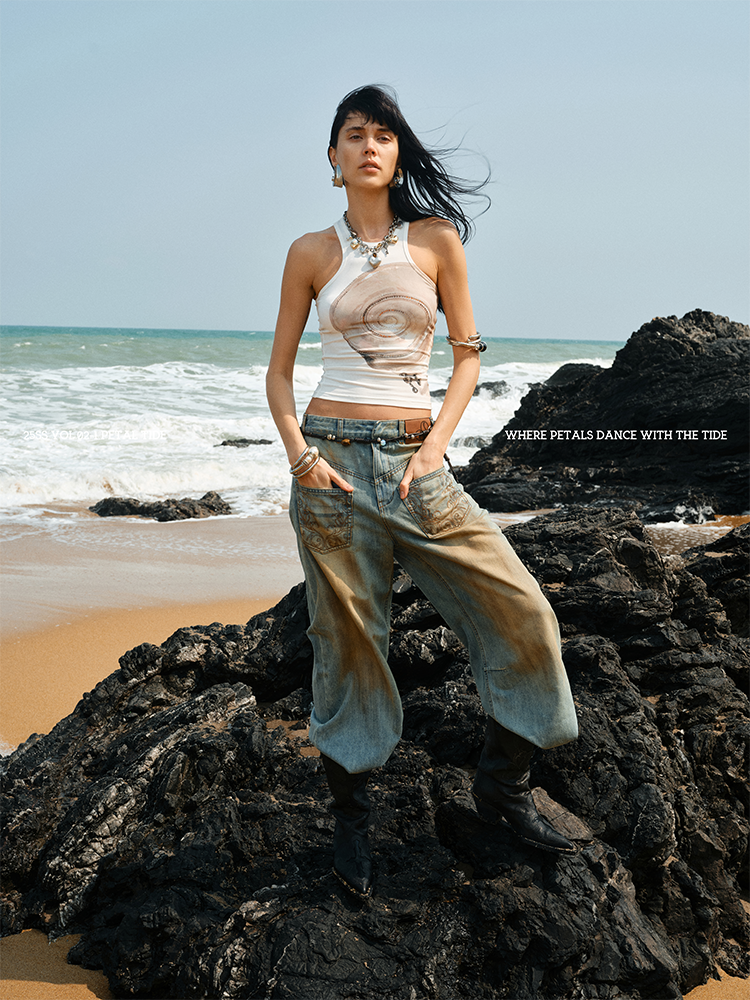 Summer Floral Rhinestone Racer Vest – Slim Fit Sleeveless Top
