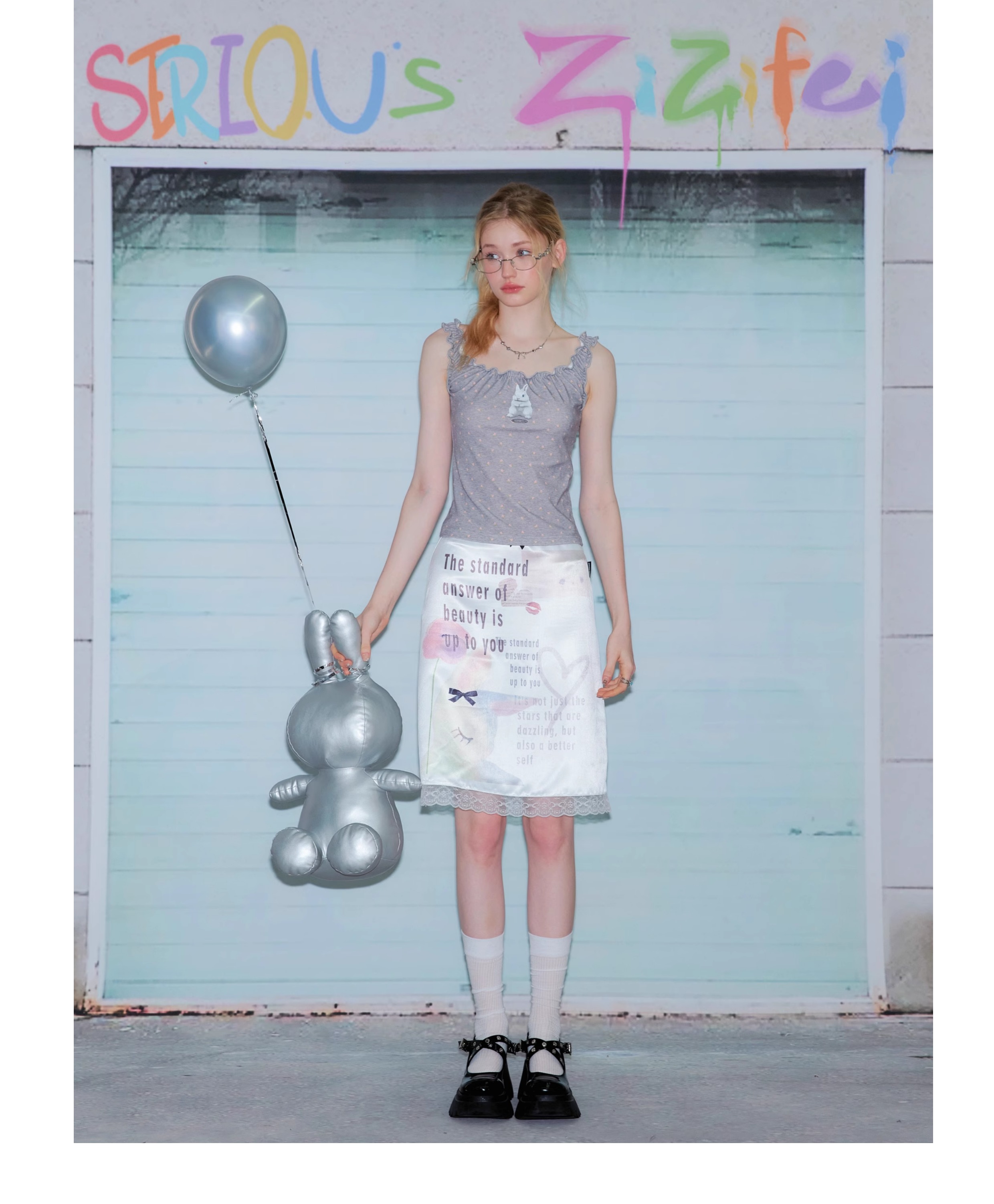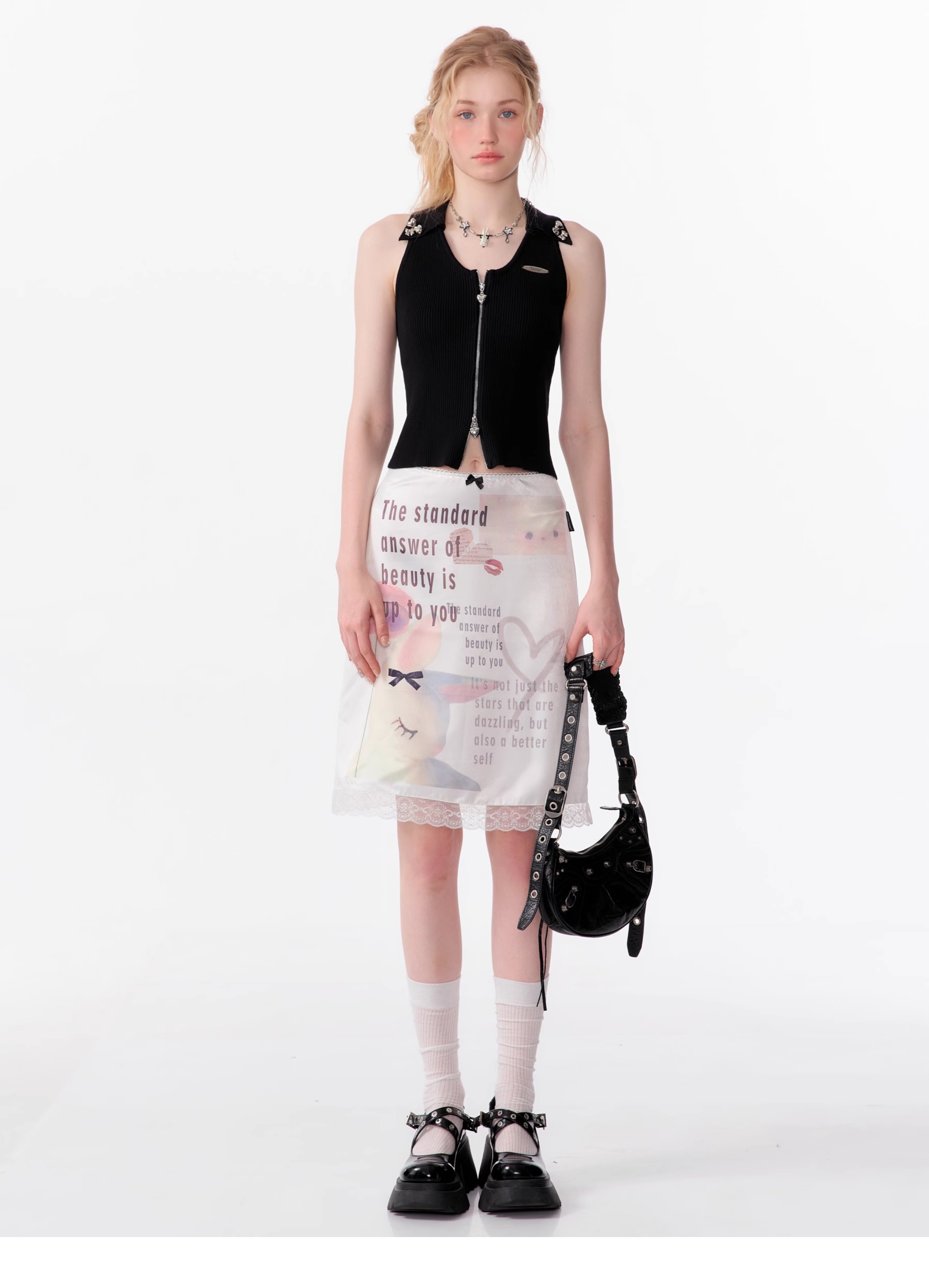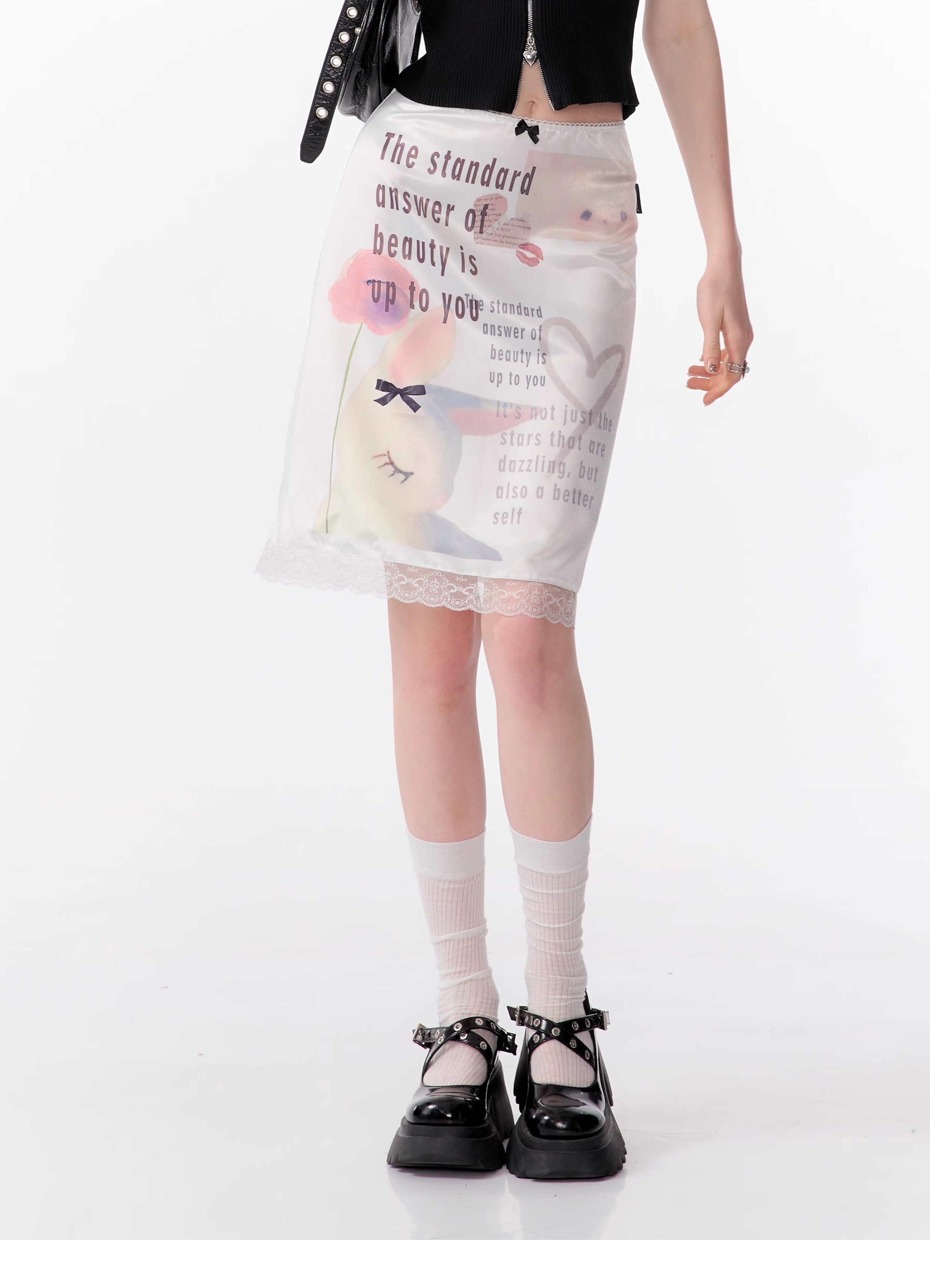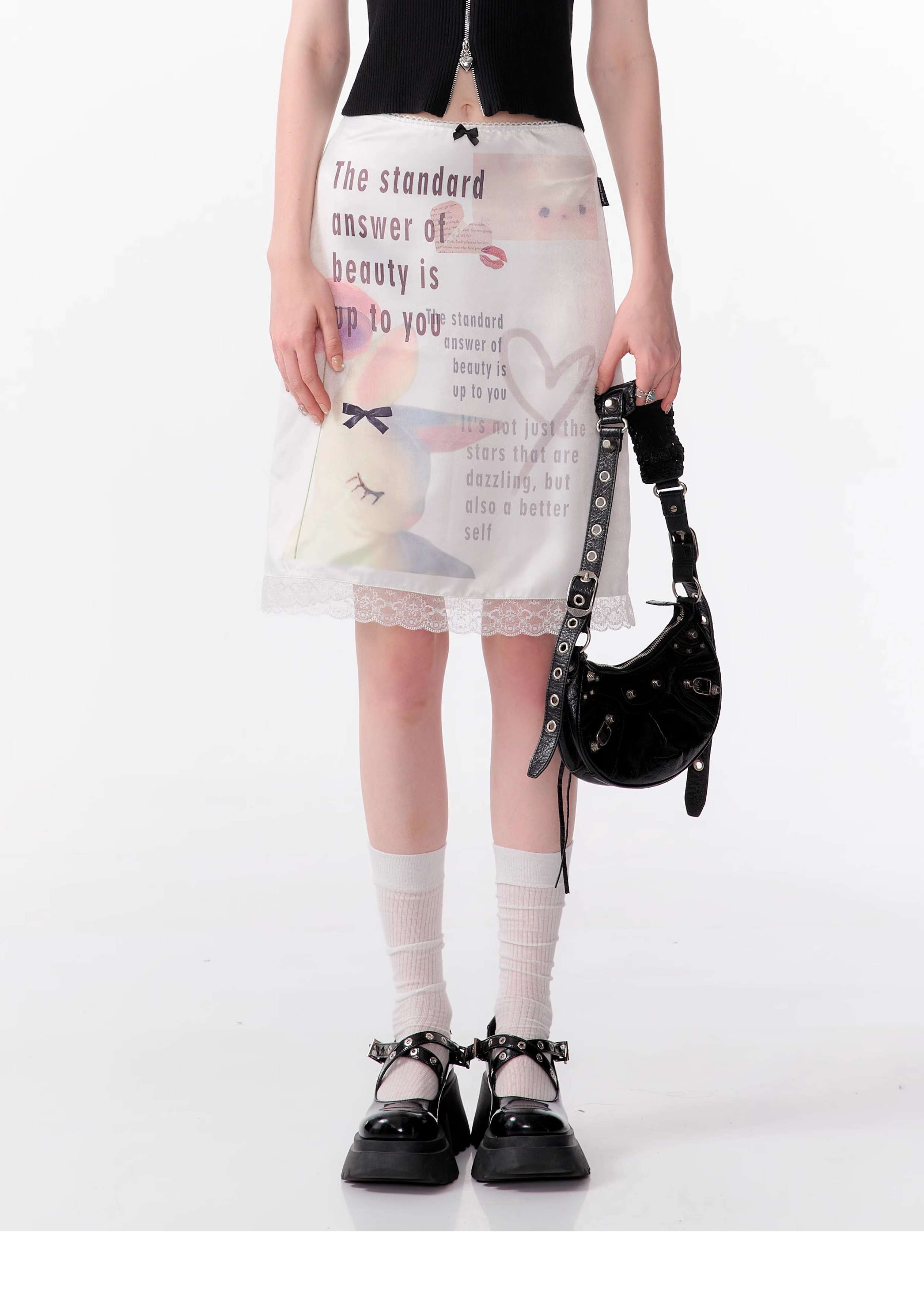 High Waist Rabbit Print Bow Skirt | Mid-Length Summer Slimming Design