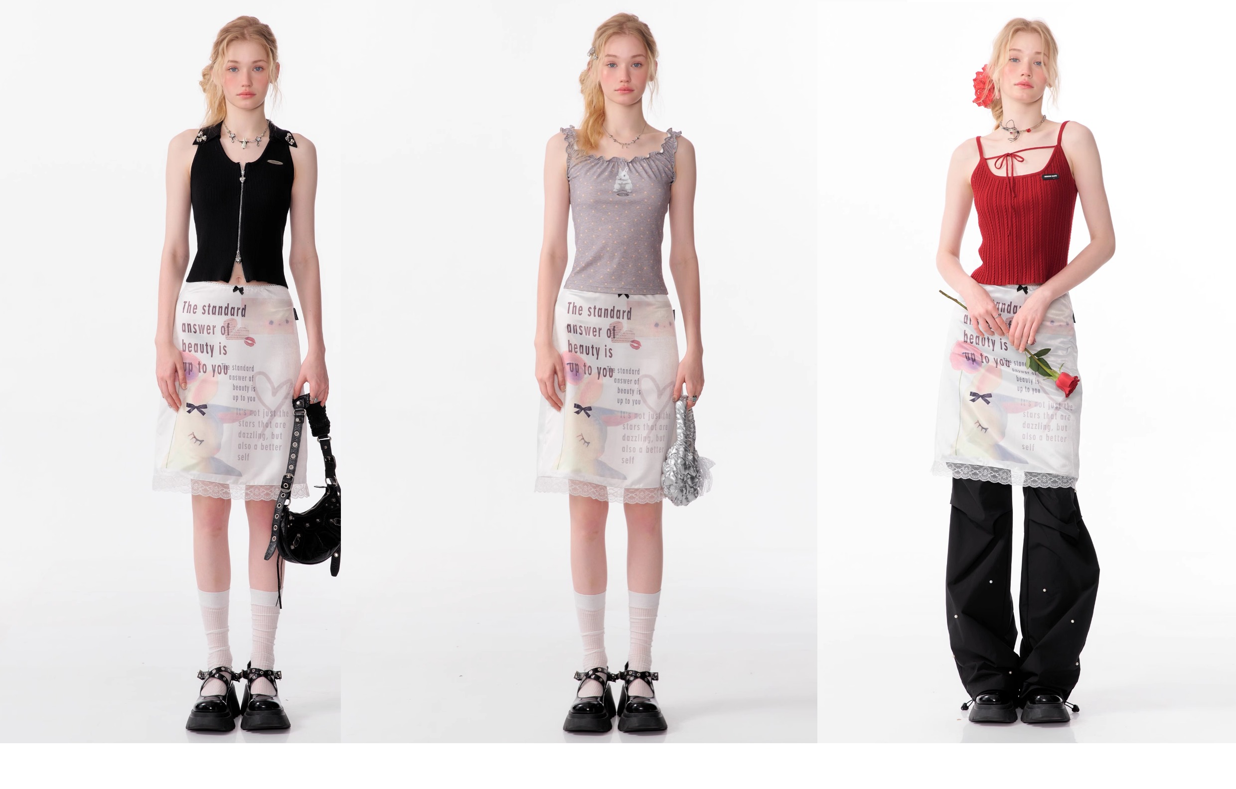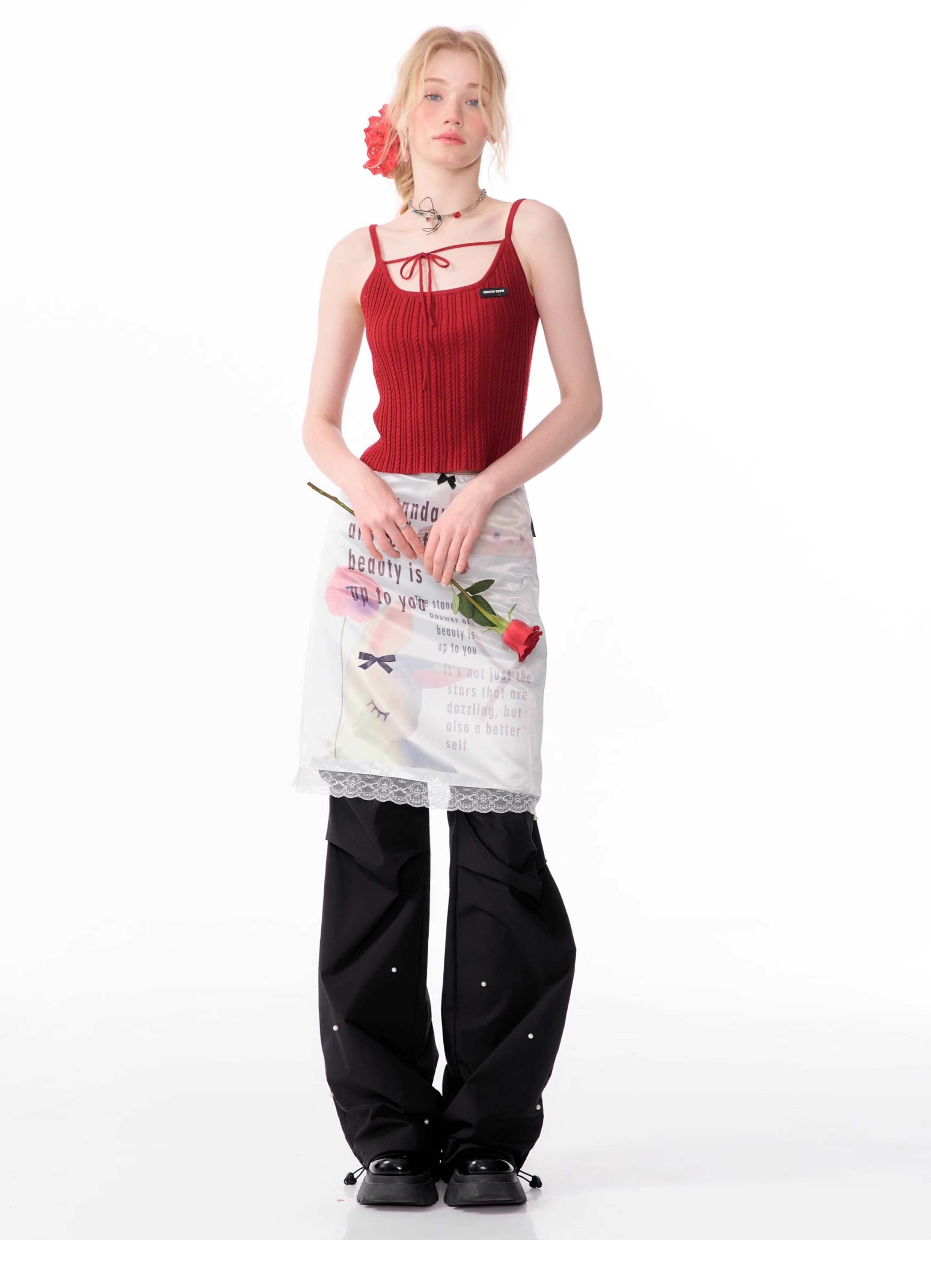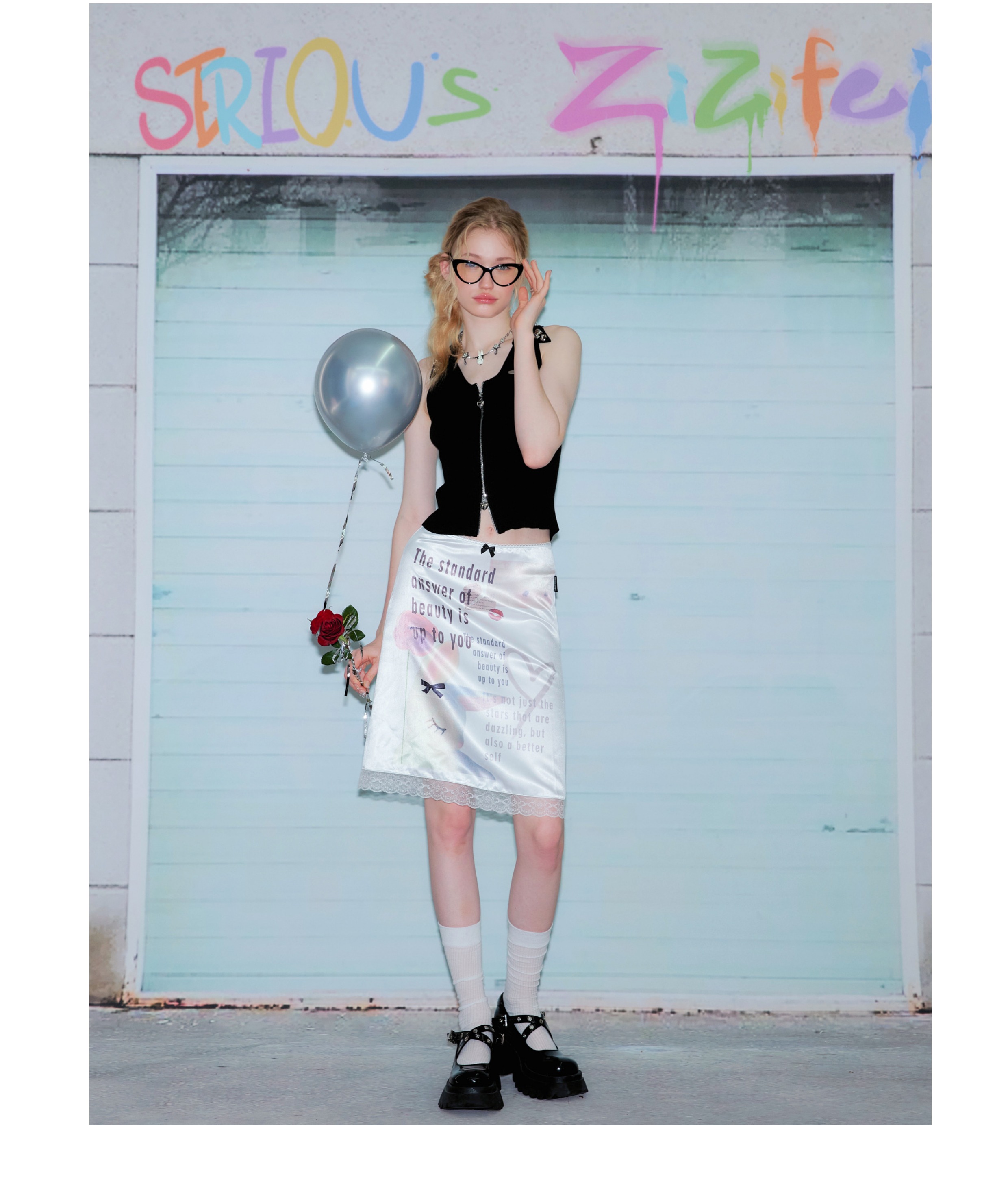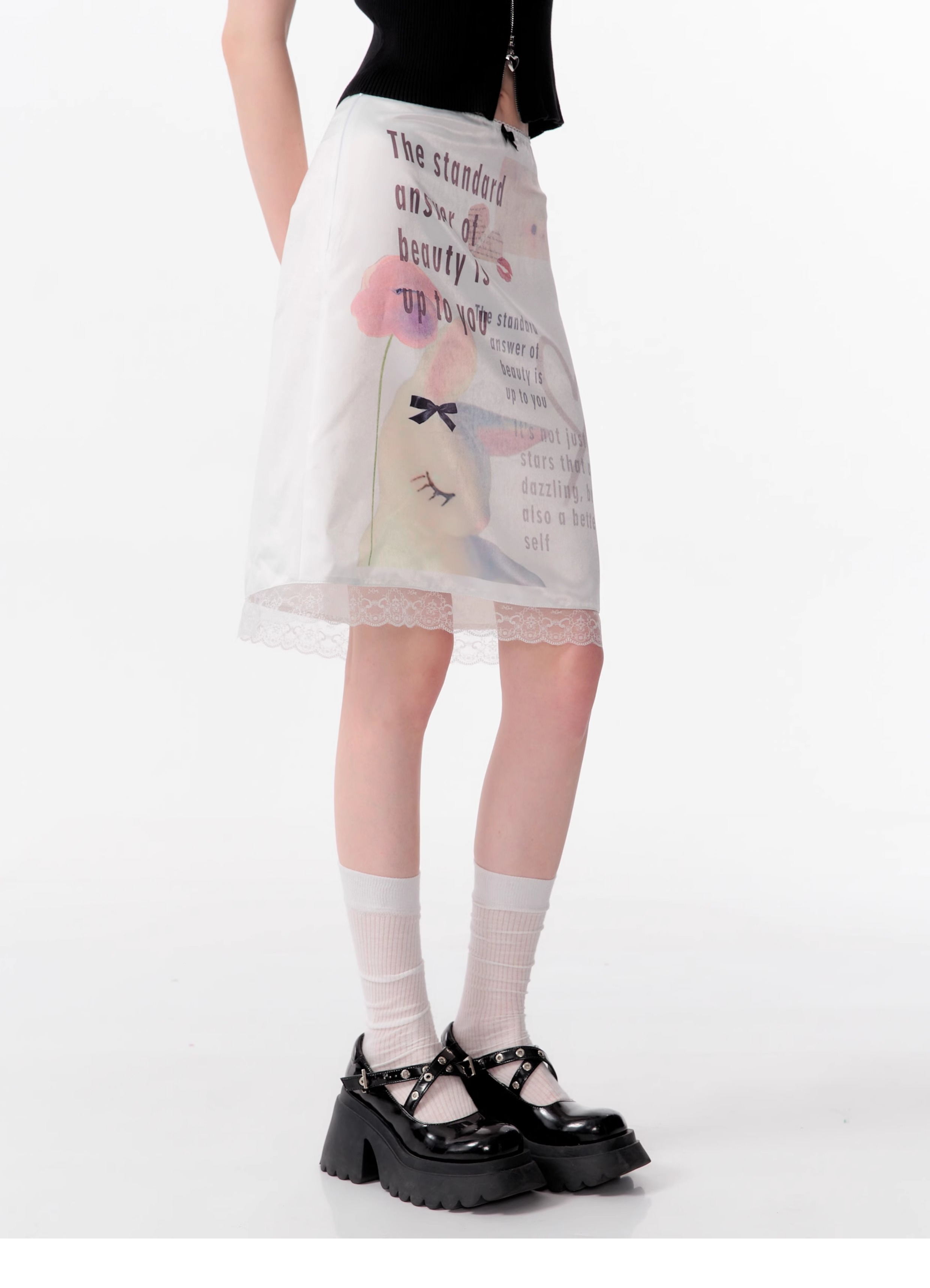 High Waist Rabbit Print Bow Skirt | Mid-Length Summer Slimming Design