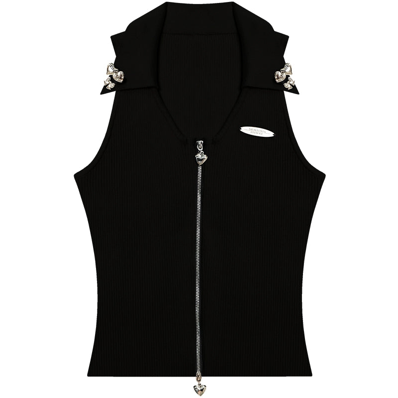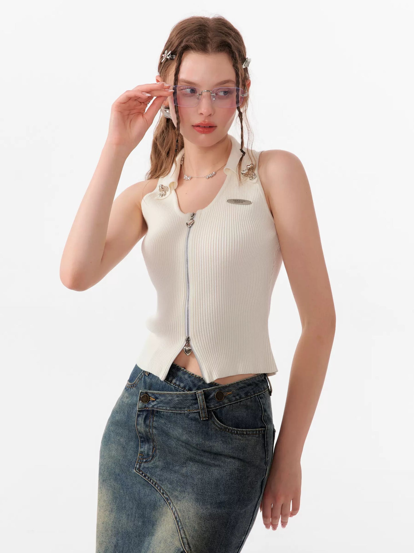 Polo Neck Zipper Tank Top | Sleeveless Knitted Summer Retro Design