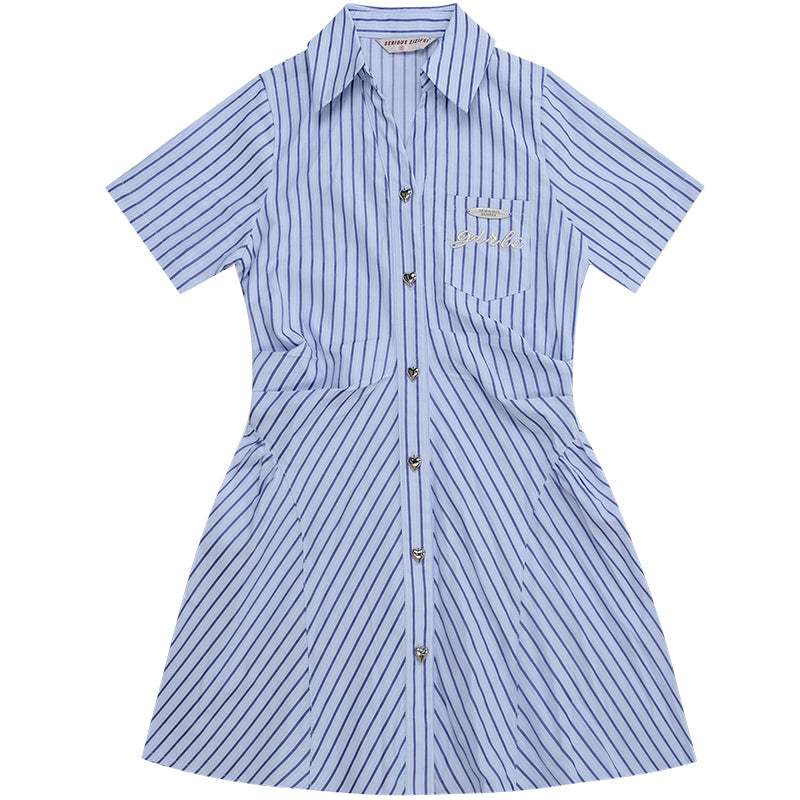 Slim Fit Blue Stripe Shirt Dress - Polo Collar