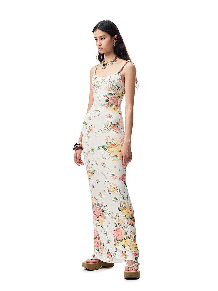 Resort Floral Slip Maxi Dress – Backless Cinched Waist Vacation Style