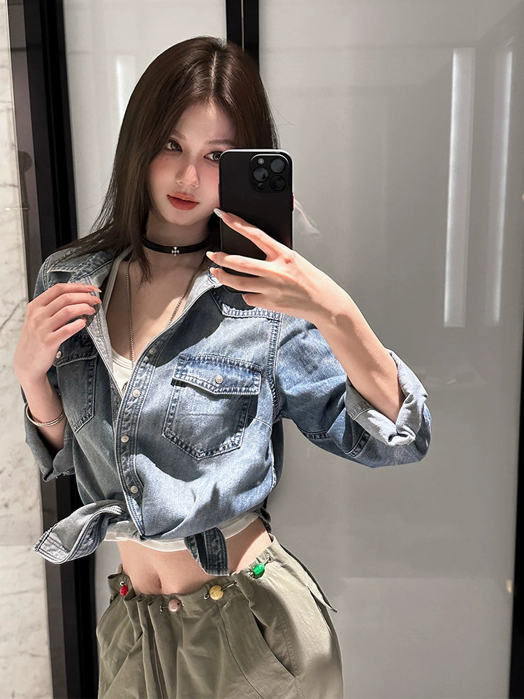 Tencel Denim Shirt for Women - Summer & Autumn French Style