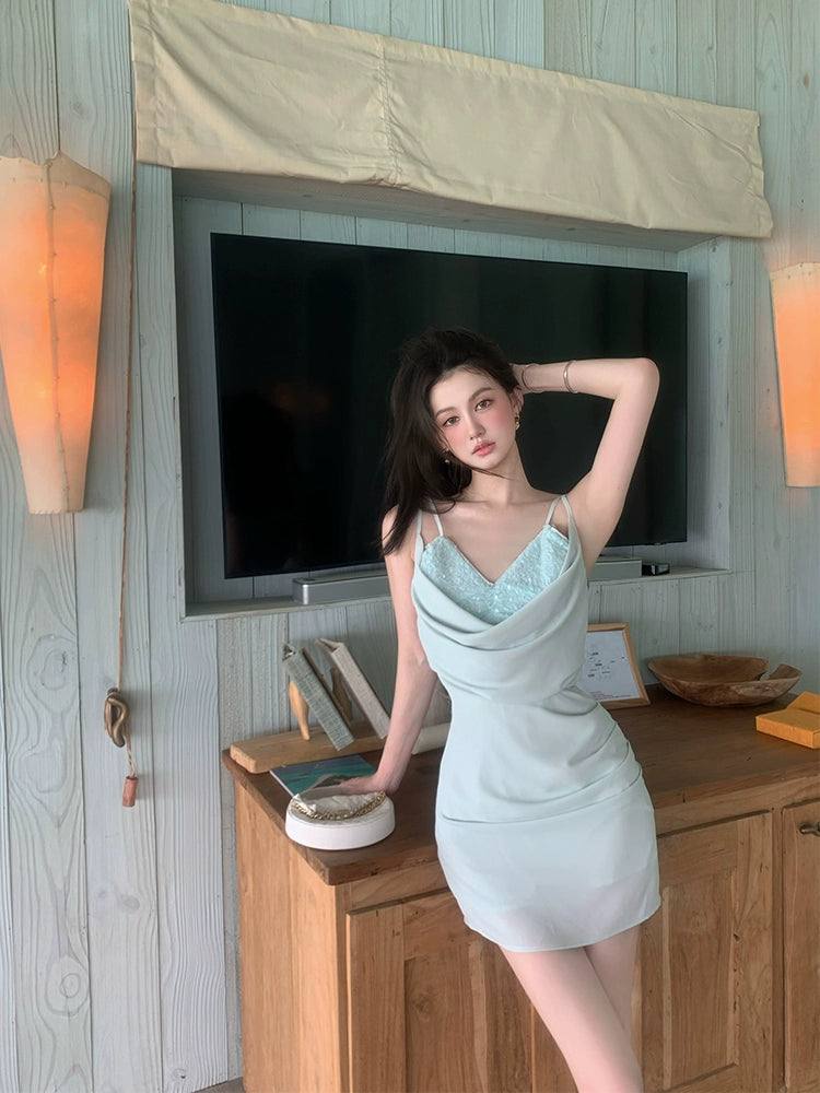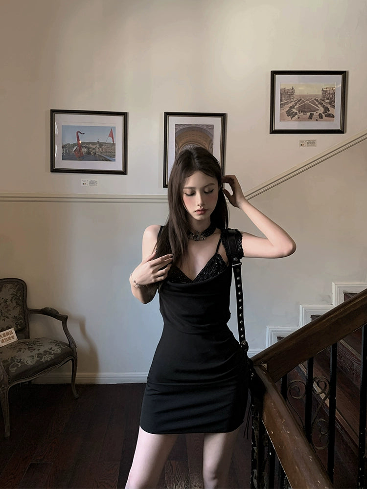 Sequin Swing Collar Camisole Dress - Niche Design Spicy Girl Style