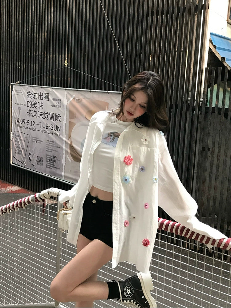 [Vacation Mode] White Sunscreen Cotton Shirt - Summer Long-Sleeve Cover-Up