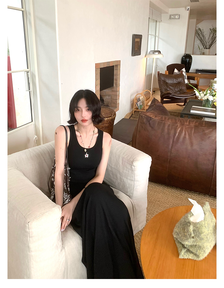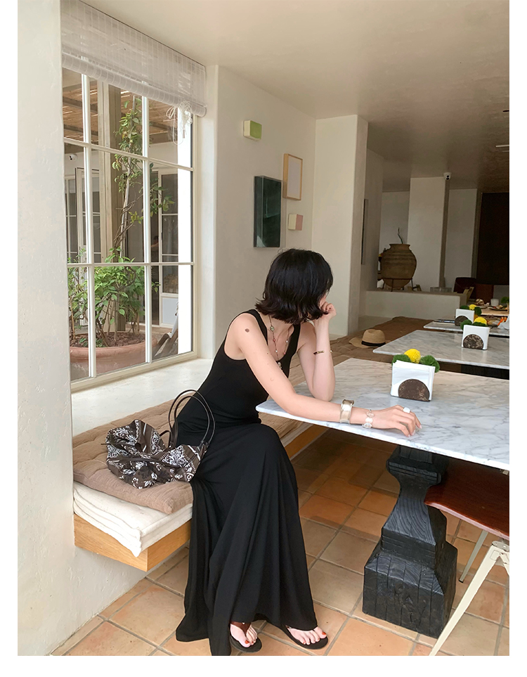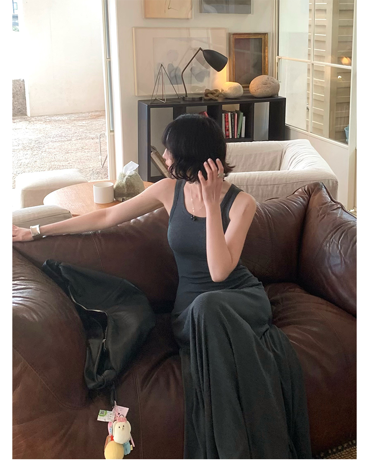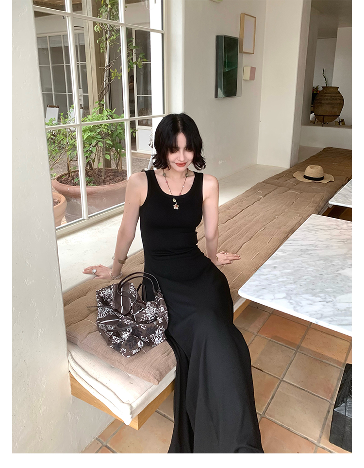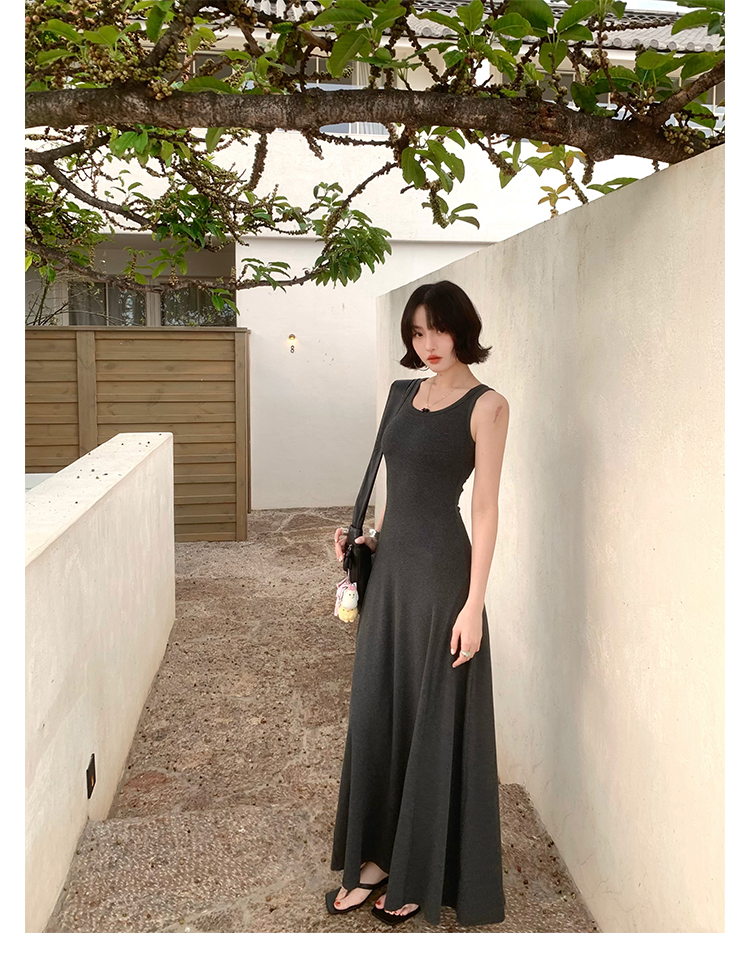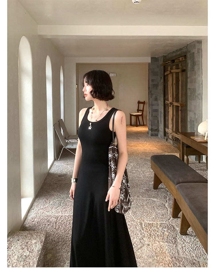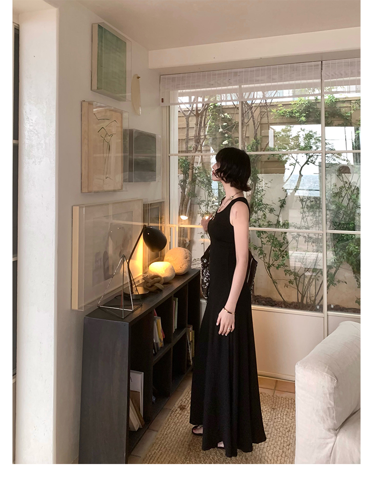 French Vintage Sleeveless Sundress – Belted Slim Fit Maxi
