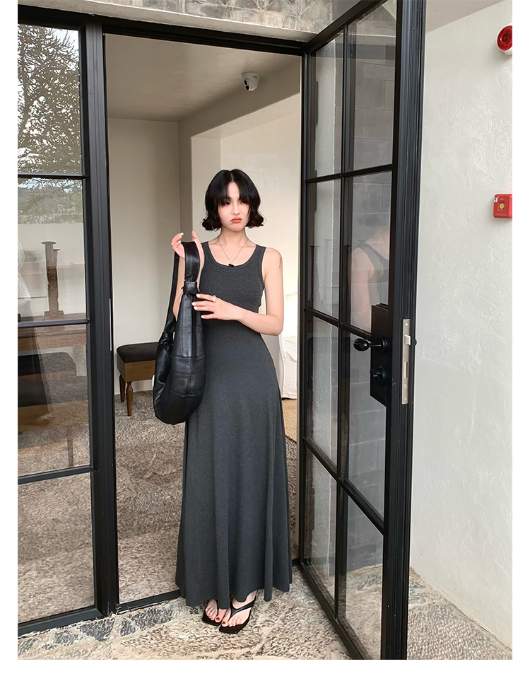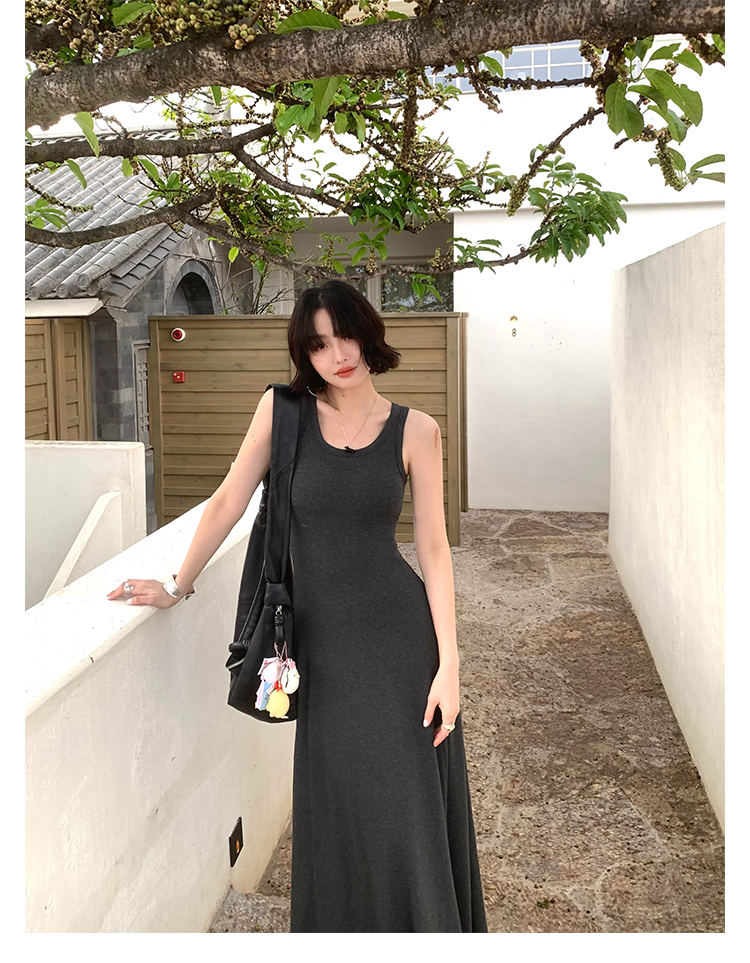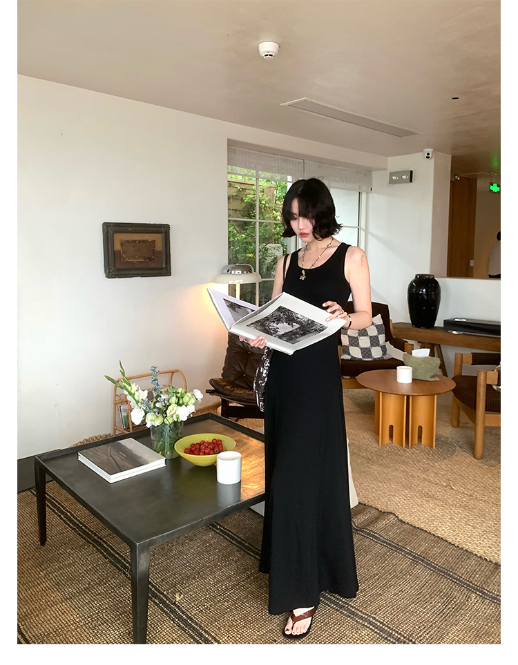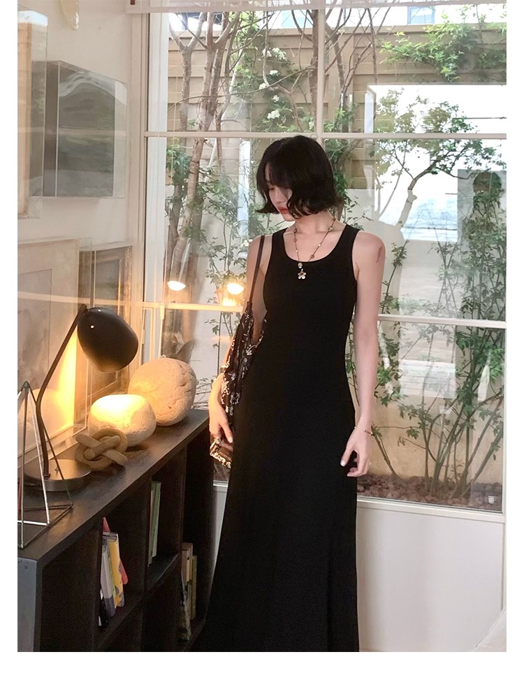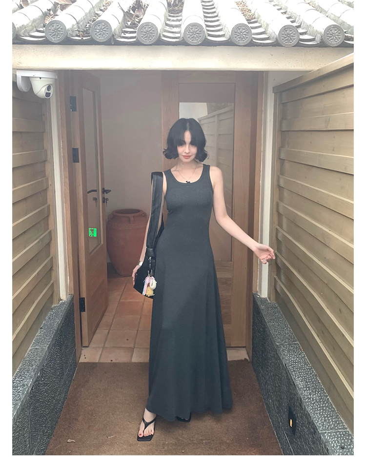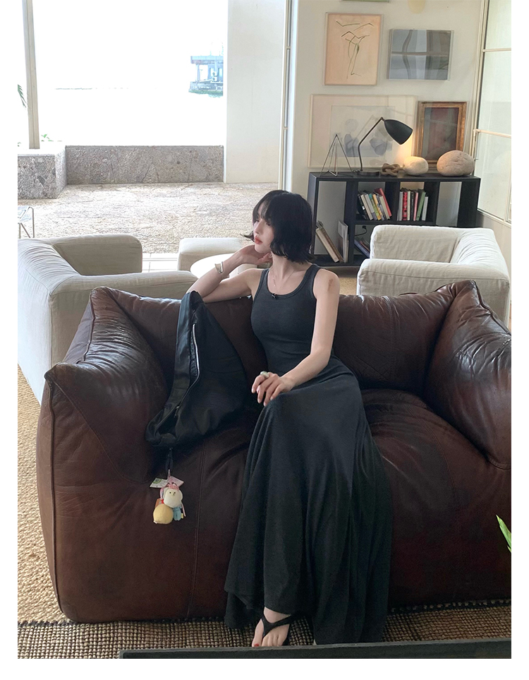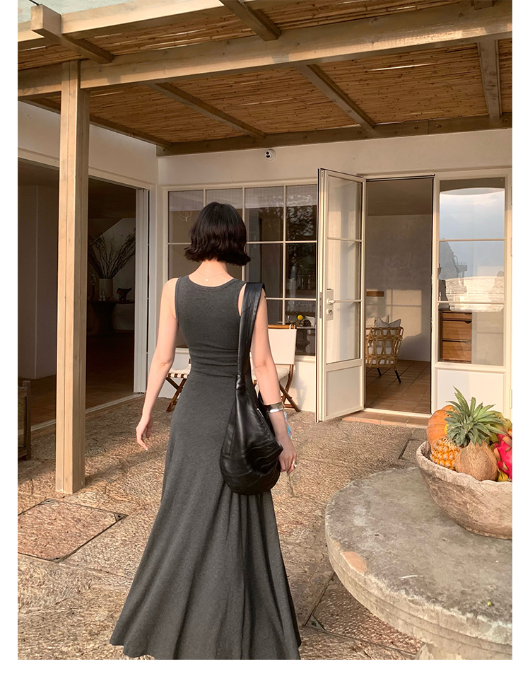 French Vintage Sleeveless Sundress – Belted Slim Fit Maxi