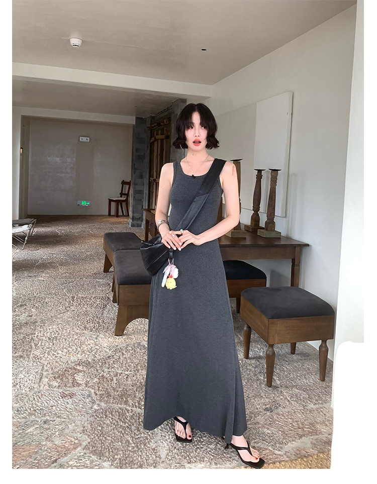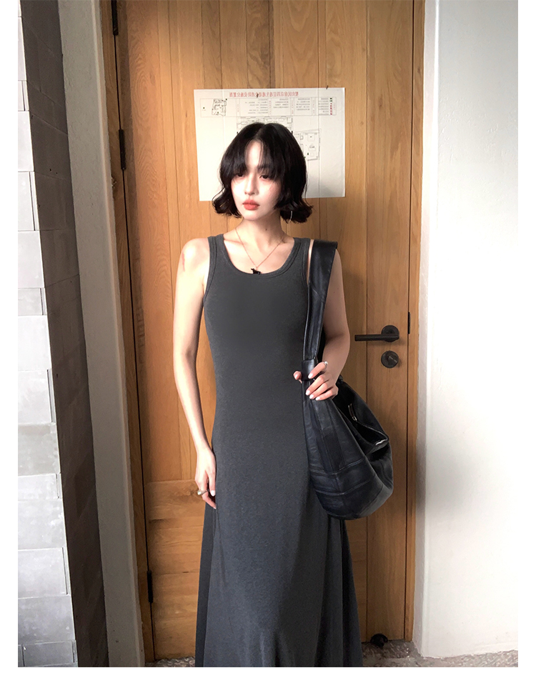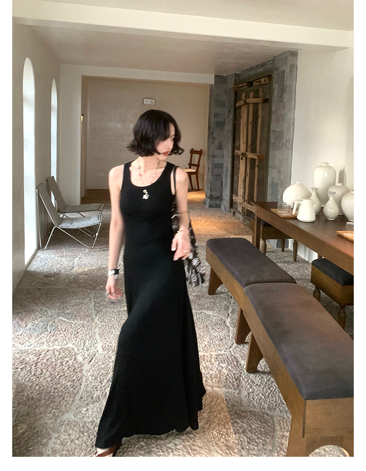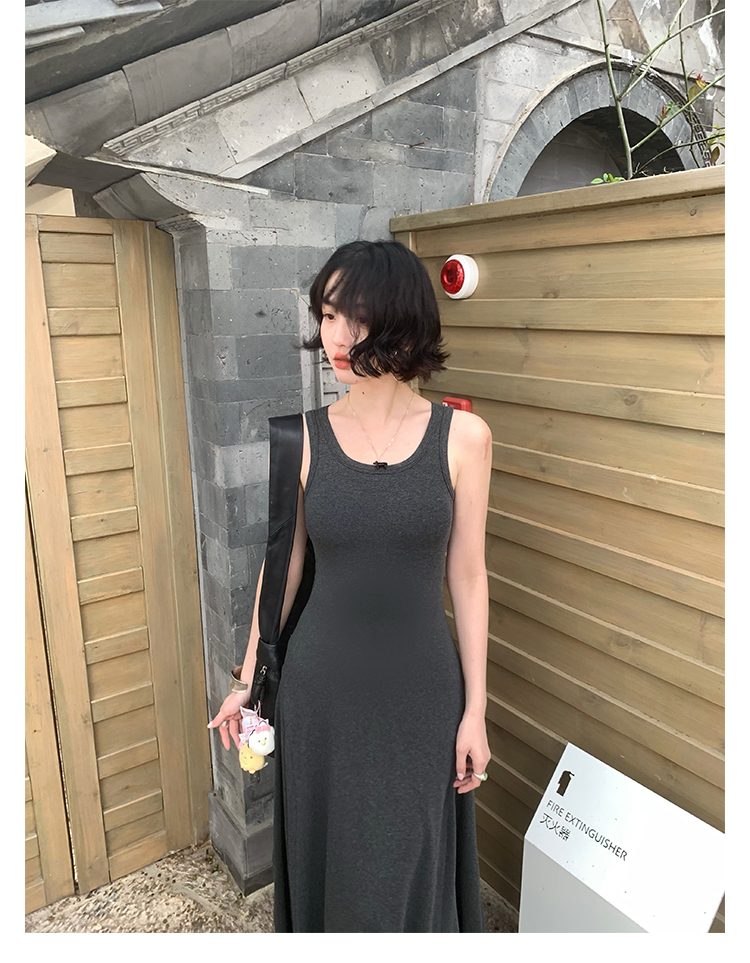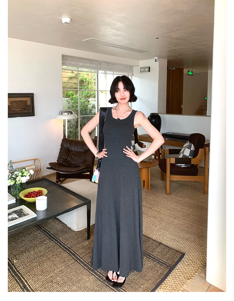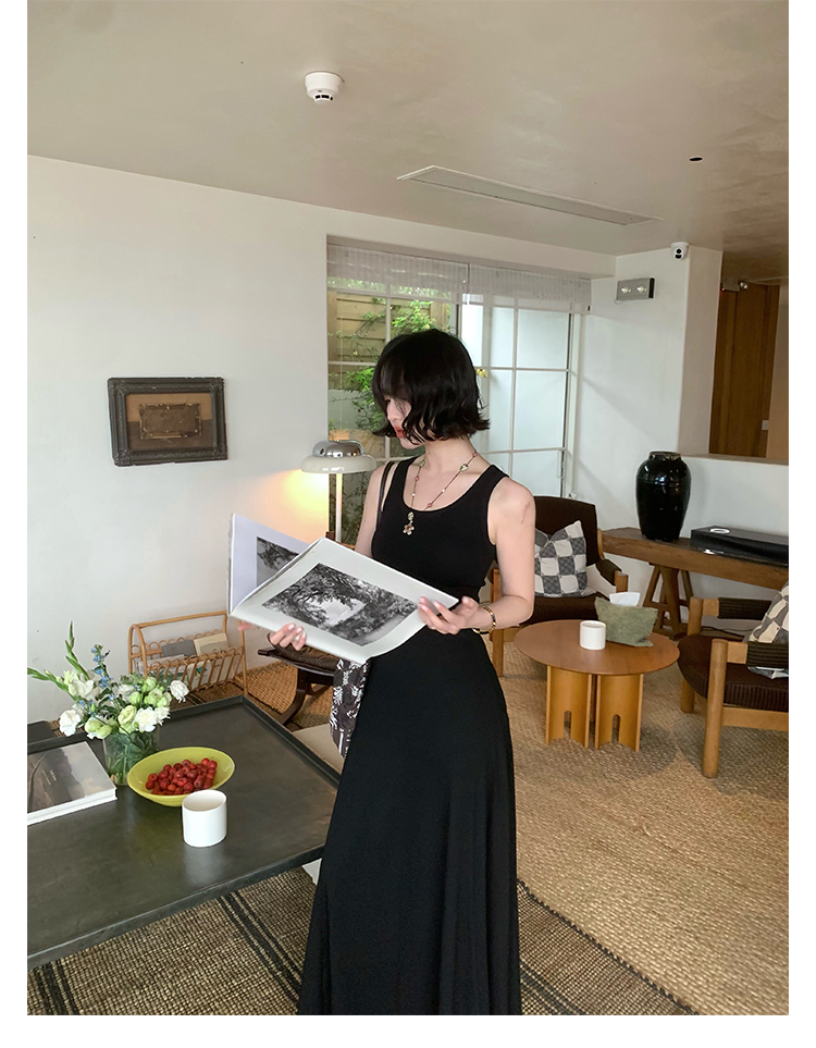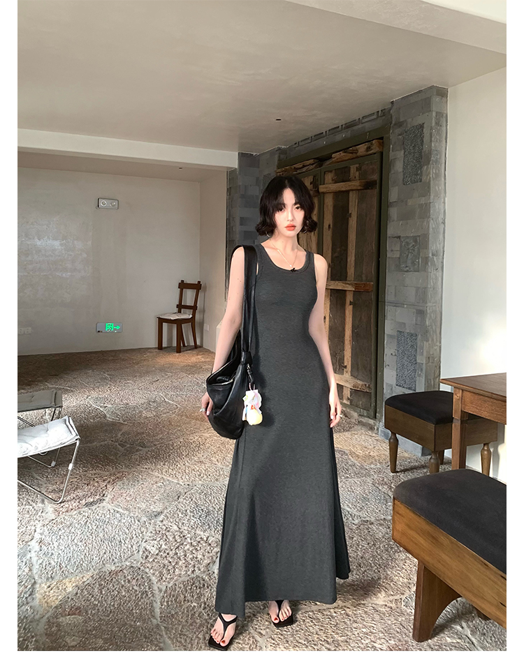 French Vintage Sleeveless Sundress – Belted Slim Fit Maxi