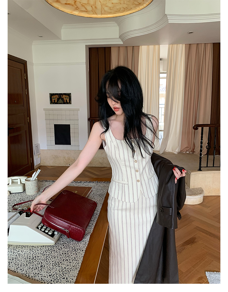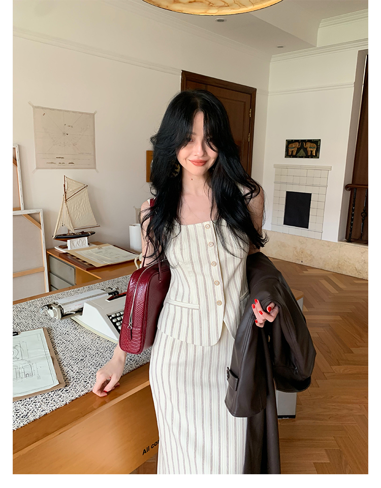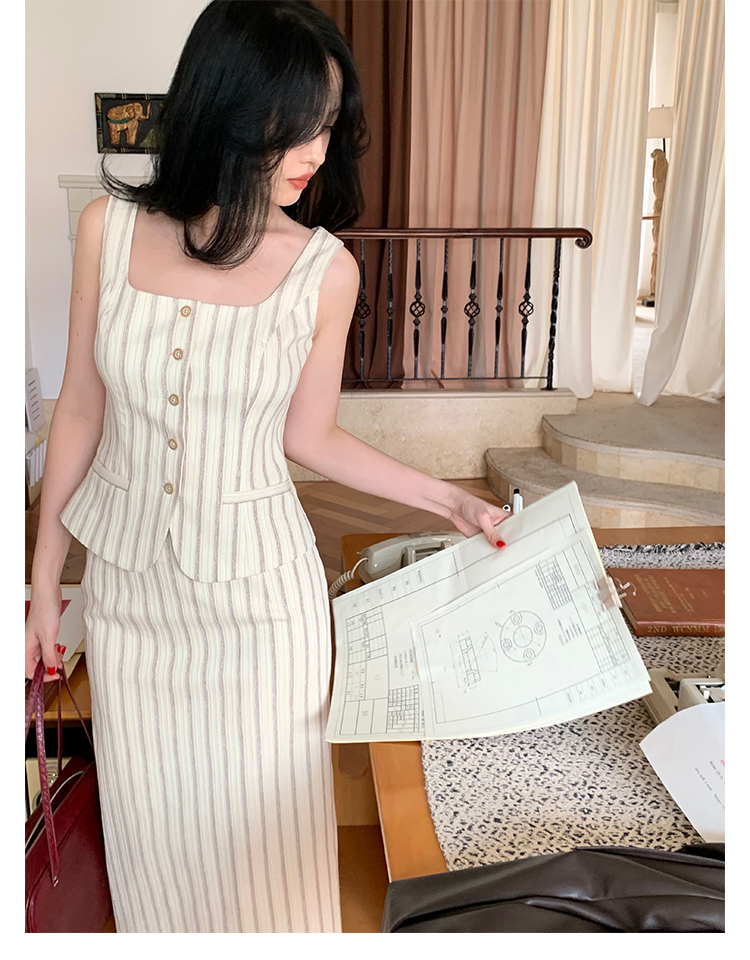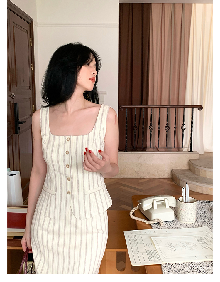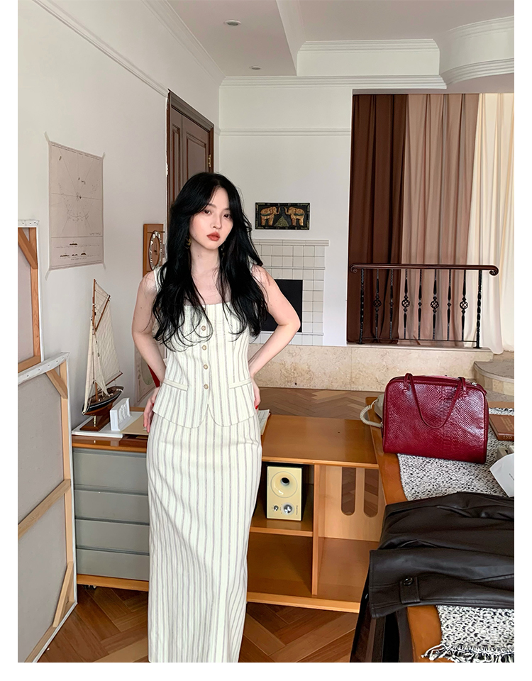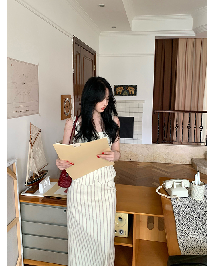 Retro Vertical Stripe Top & Skirt Suit