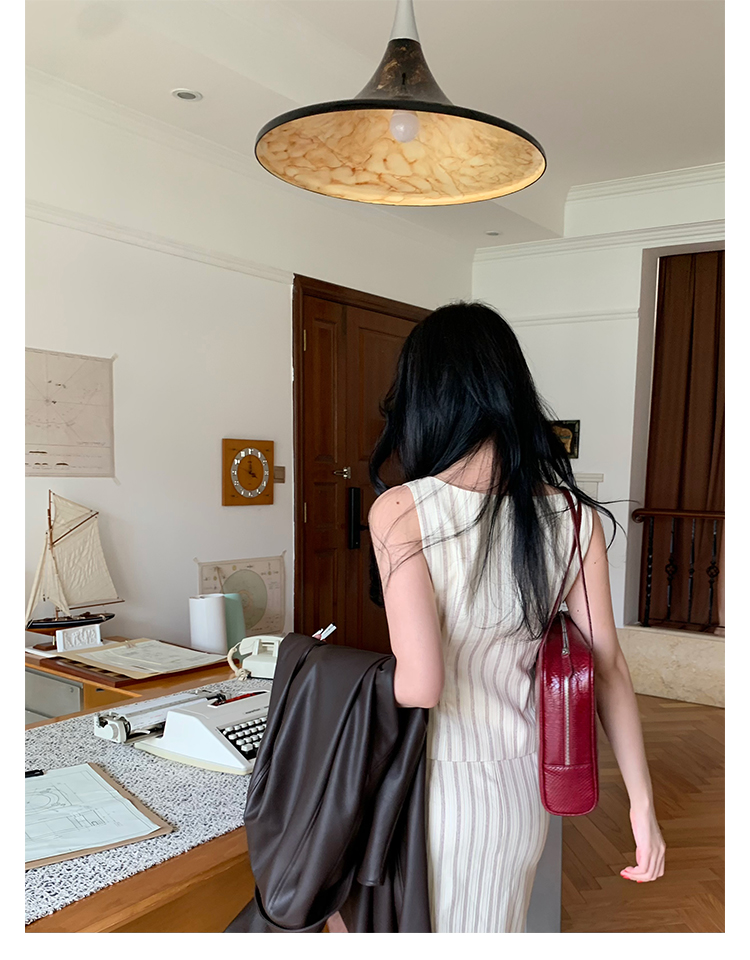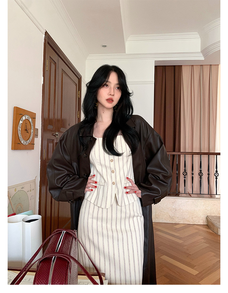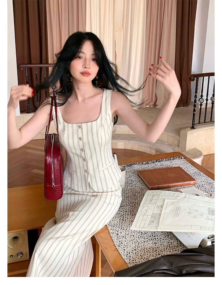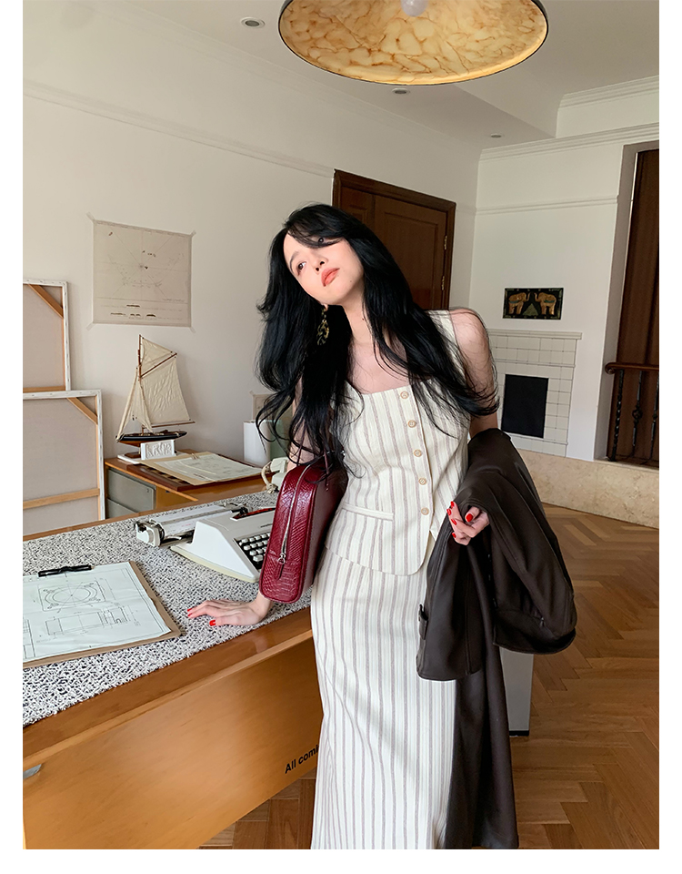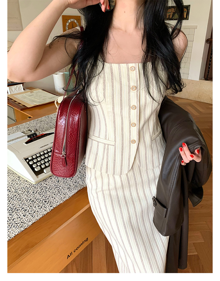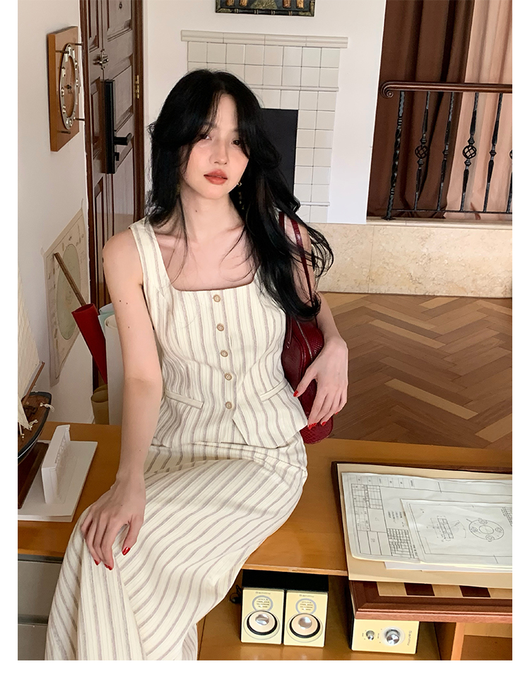 Retro Vertical Stripe Top & Skirt Suit