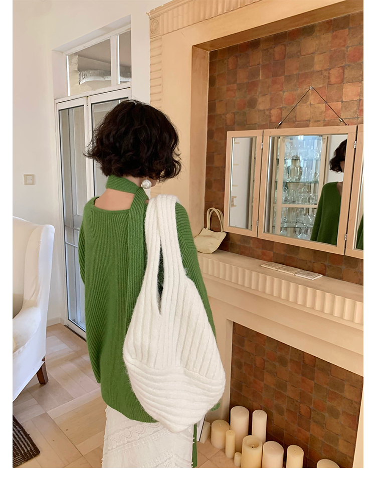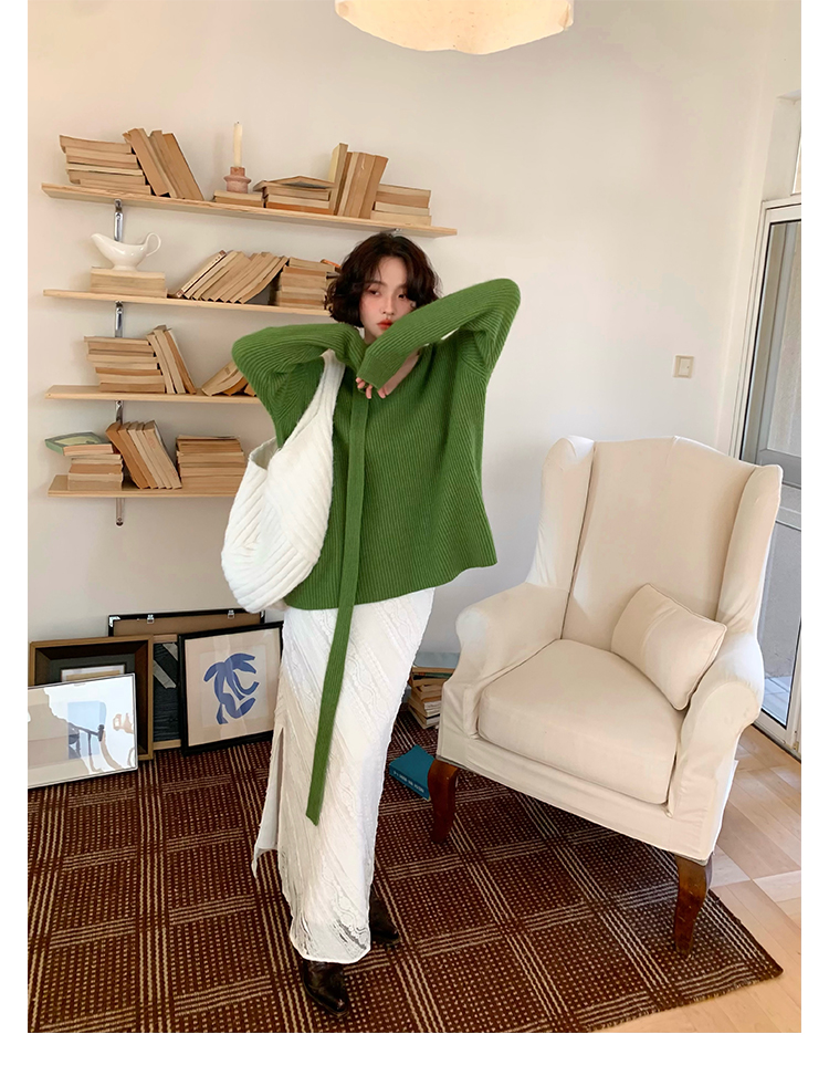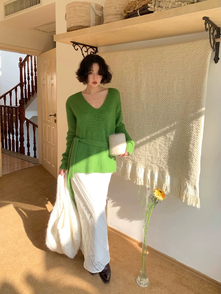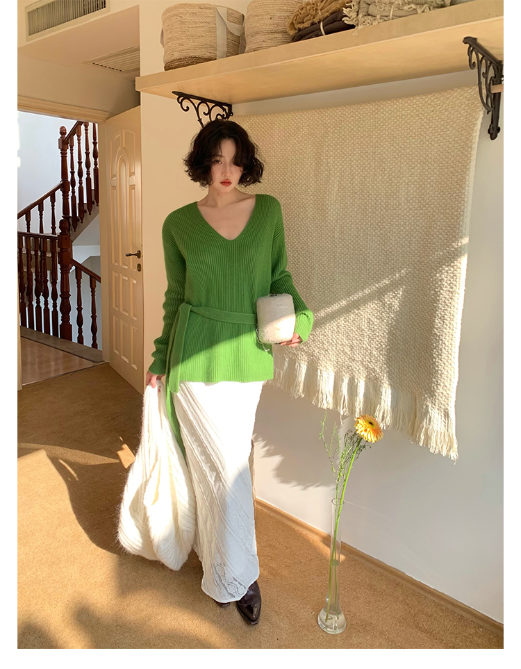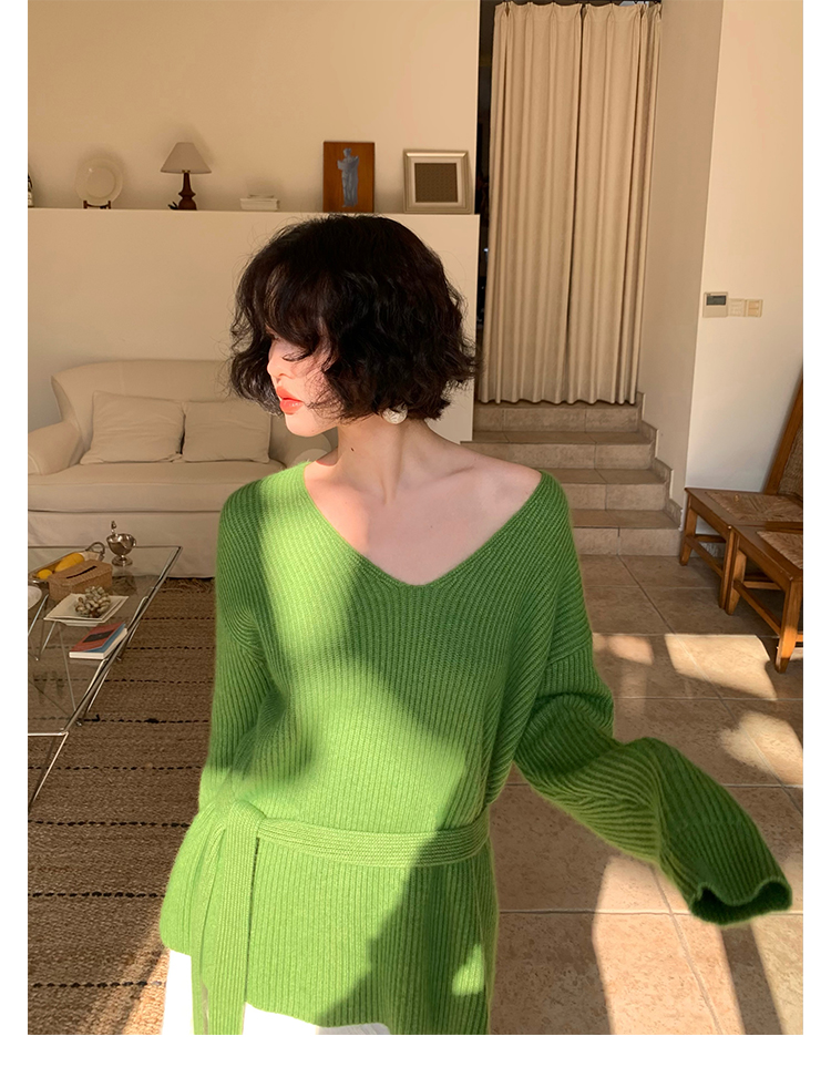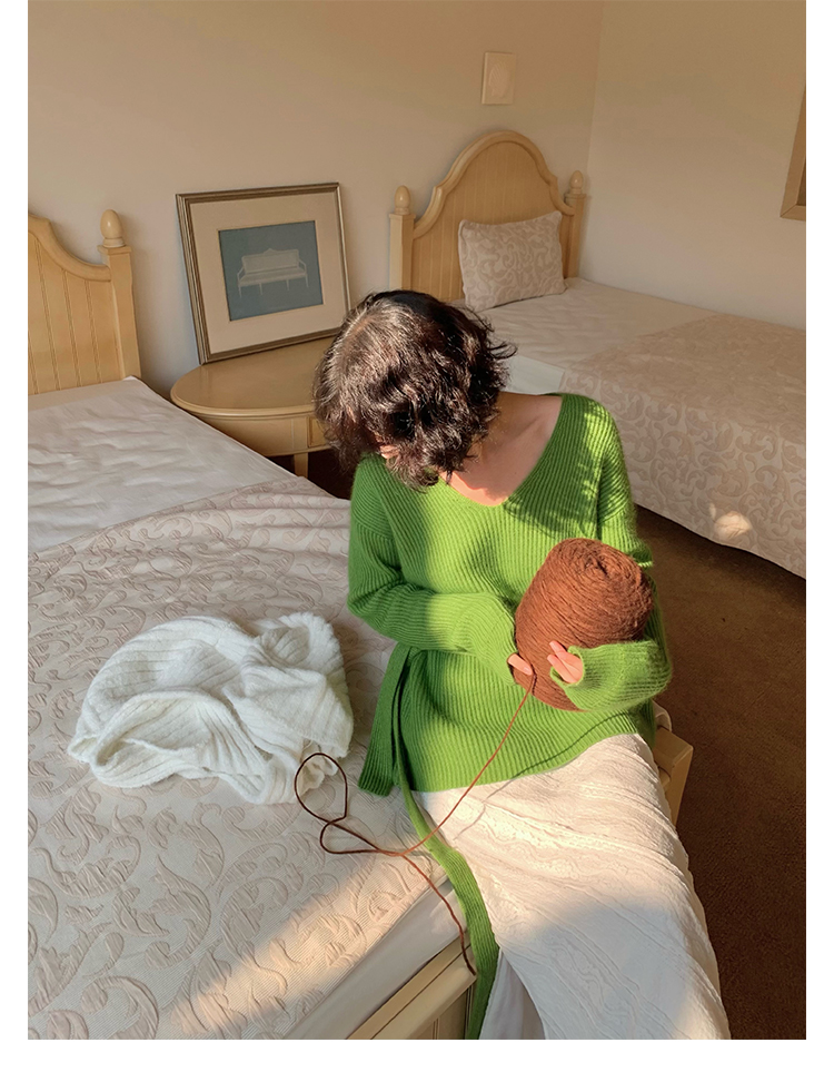V-Neck Raccoon Velvet Base Sweater with Scarf (Strawberry Jam)