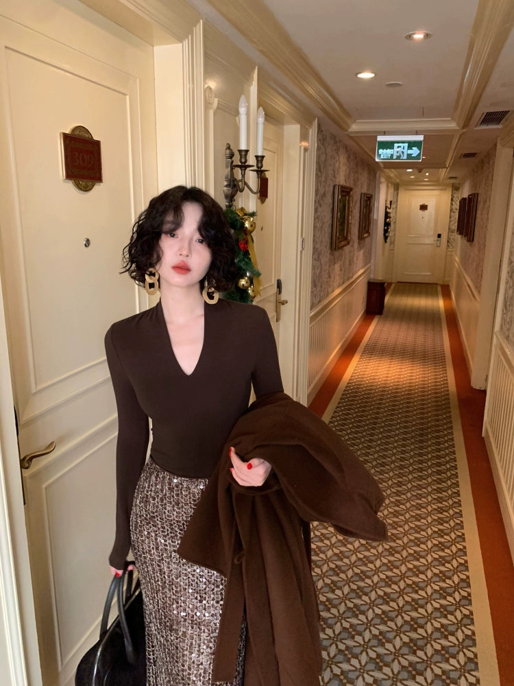 Deep V-Neck Long-Sleeve Knit Sweater (Between the Lines Edition)