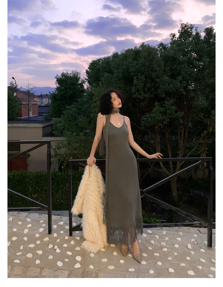 Brownie Tassel Suspender Halterneck Dress – Retro Party Elegance