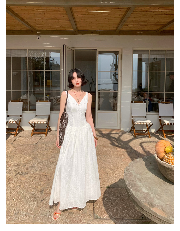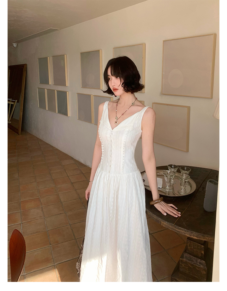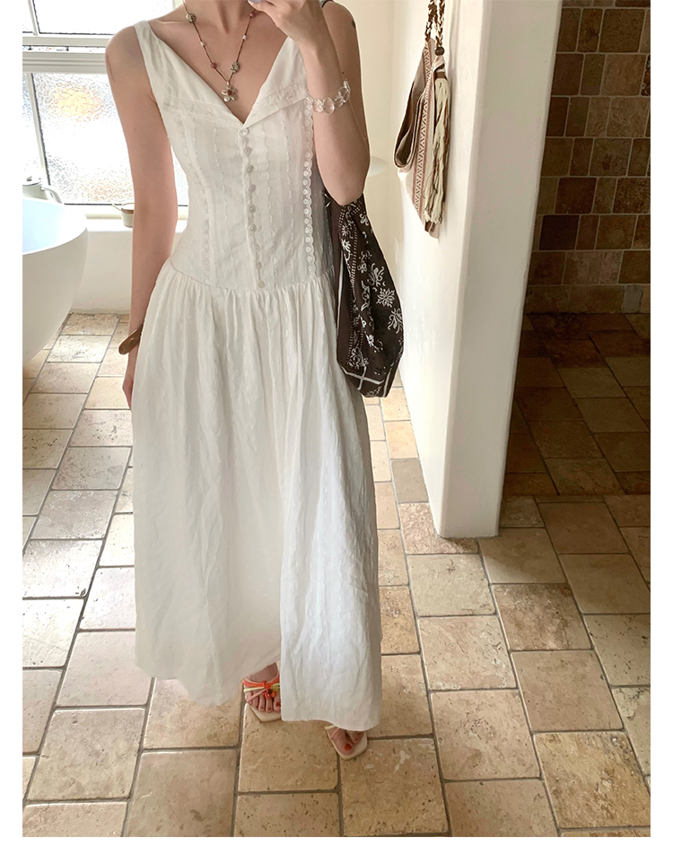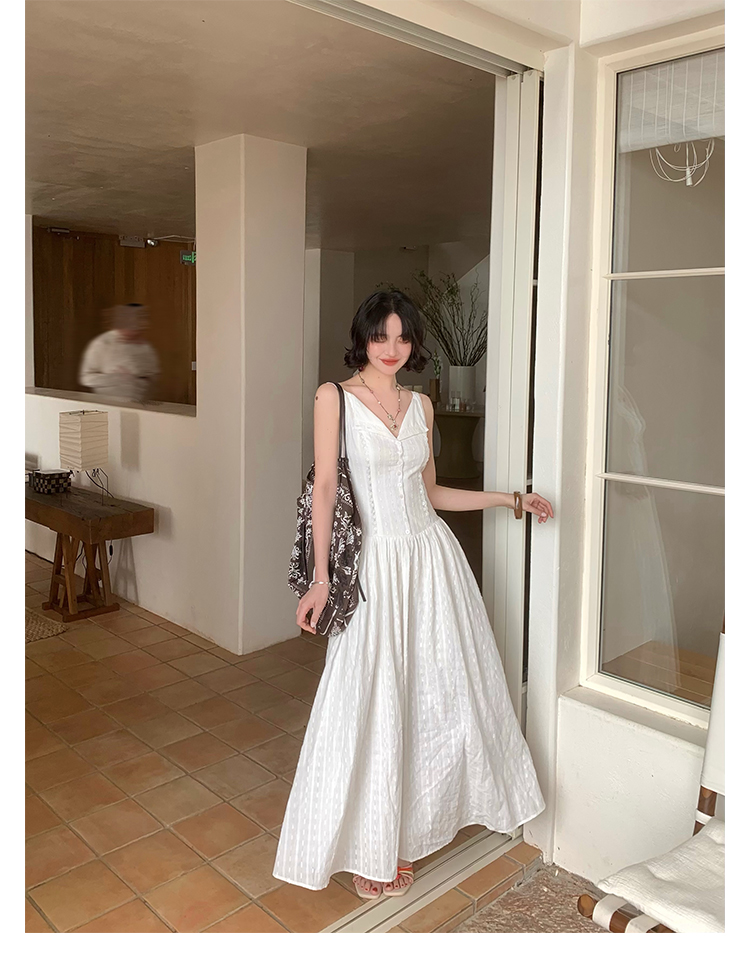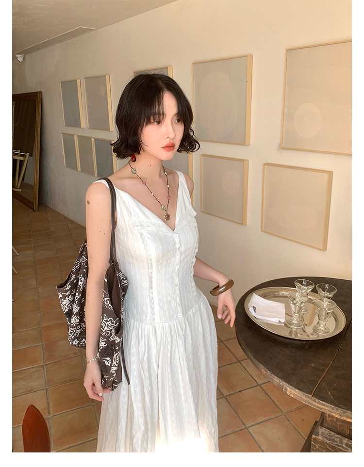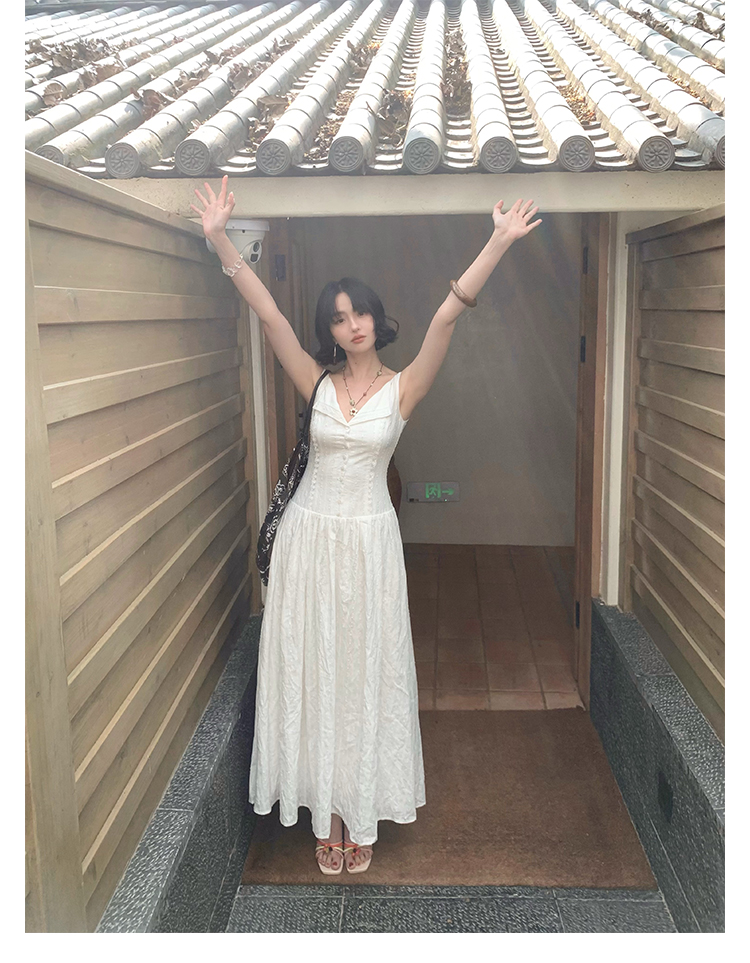[Cloud Dream Dance] French Suspender Lapel Maxi Dress