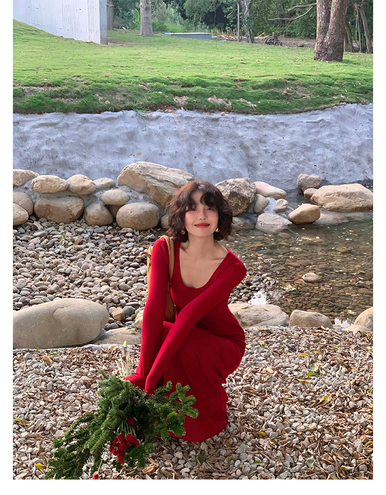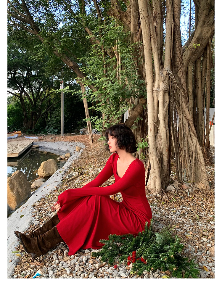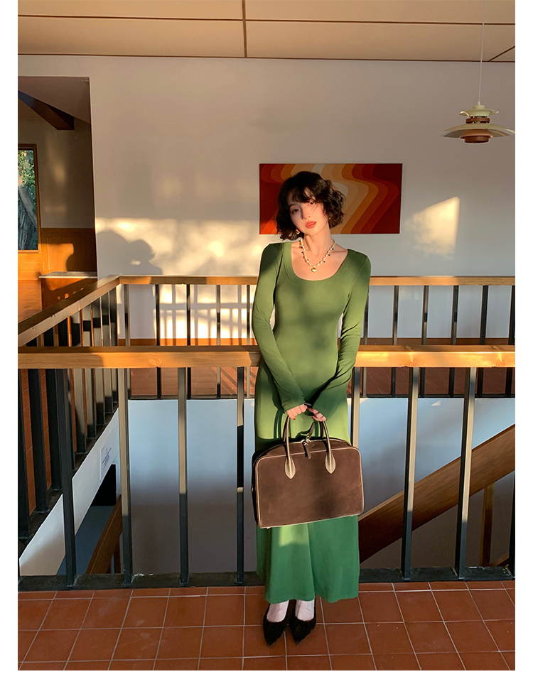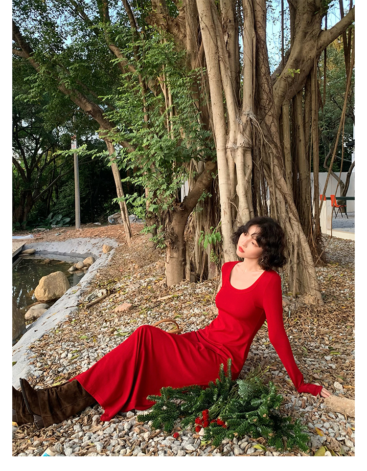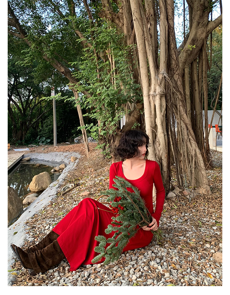 Confession Song U-Neck Long Dress – Romantic Retro Style