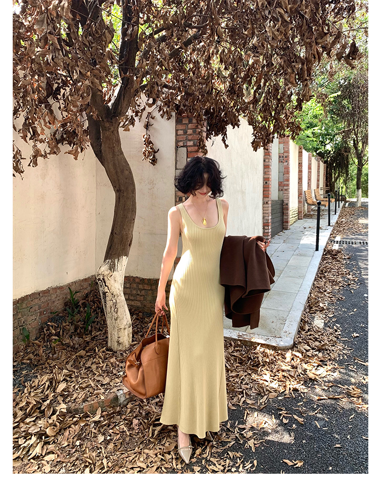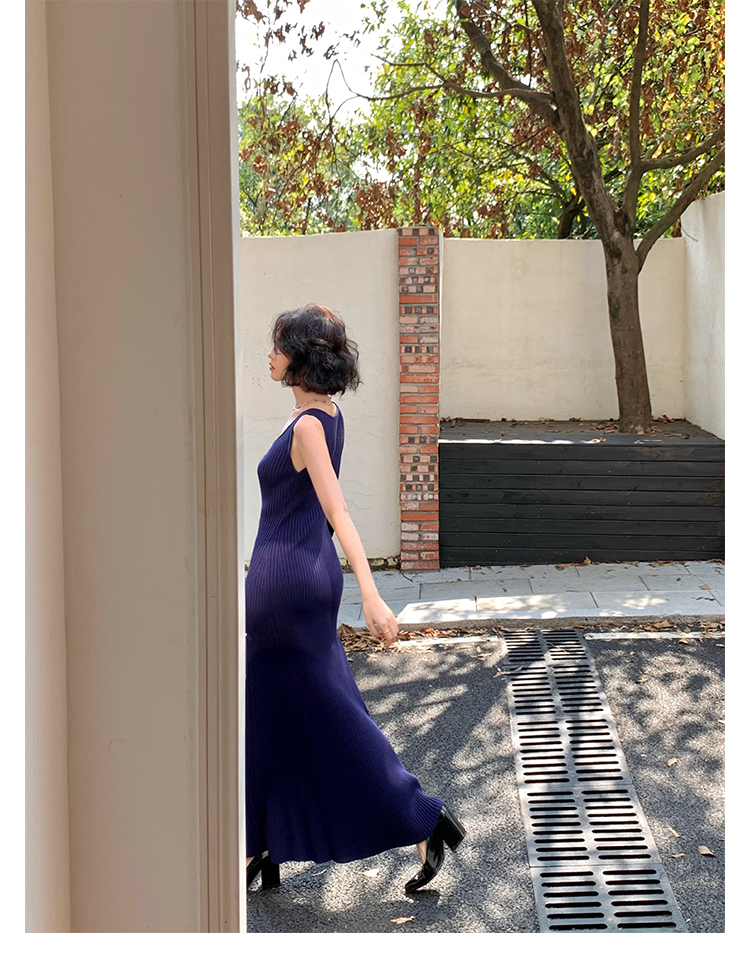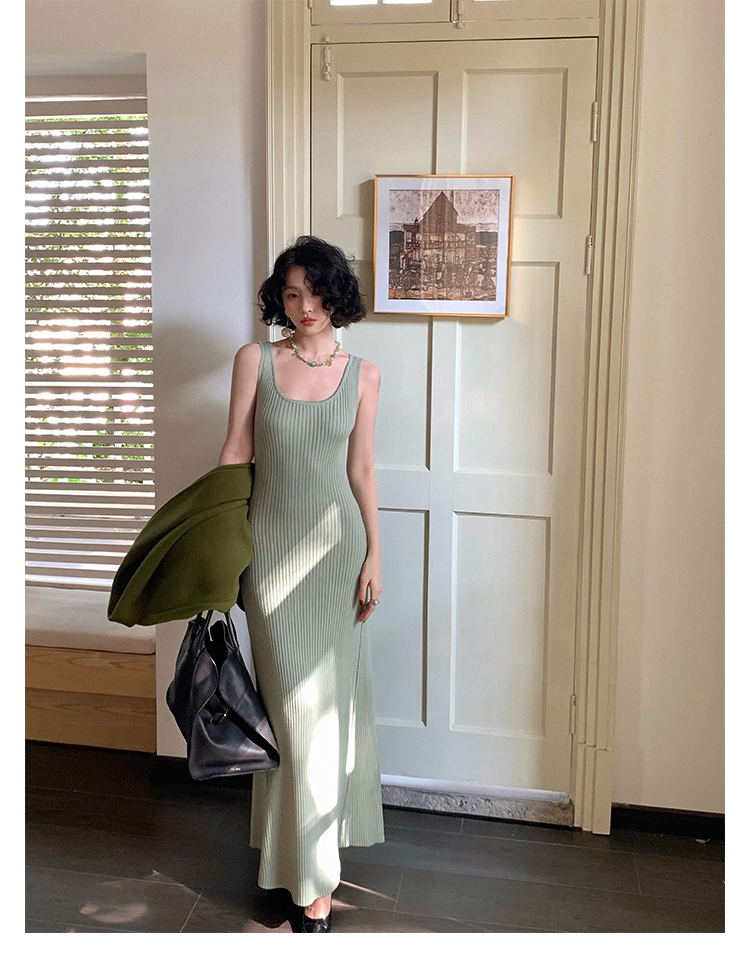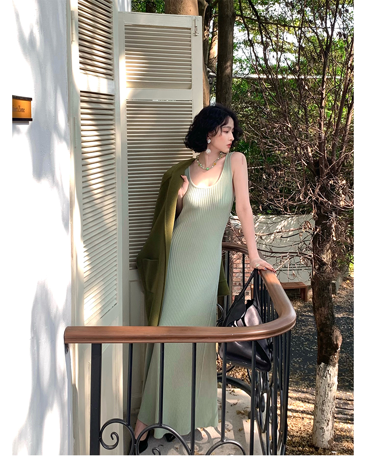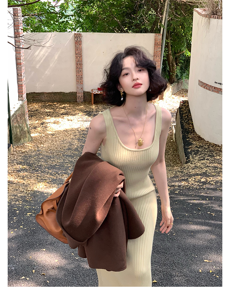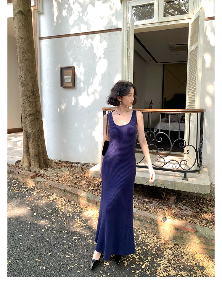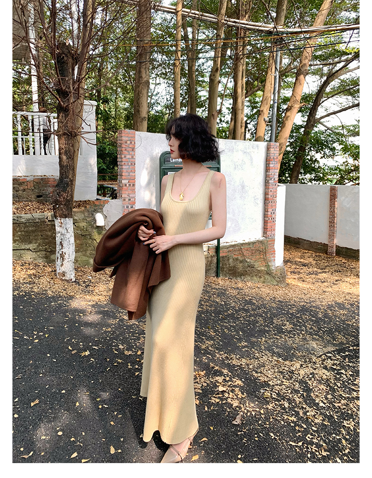 Sleeveless Knitted Vest Dress – Long Retro Layering Style