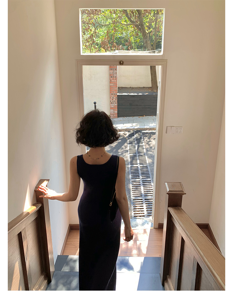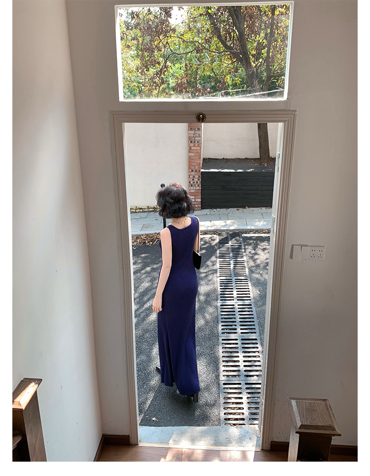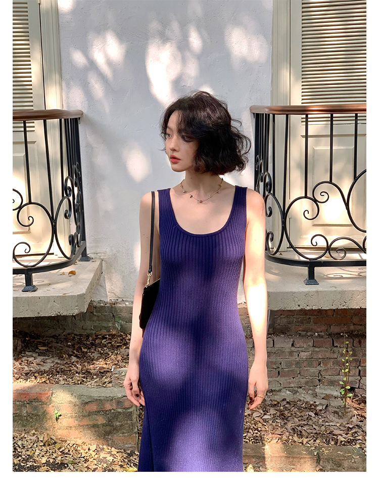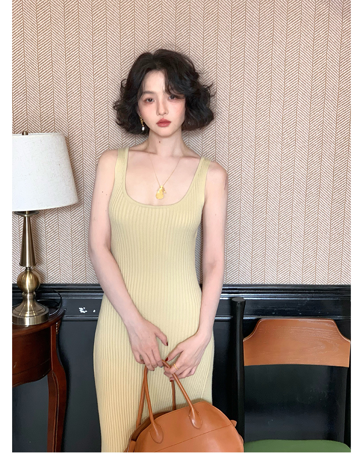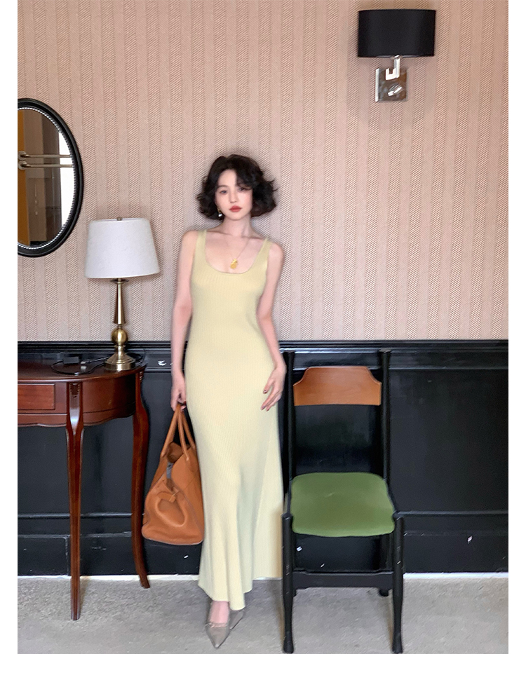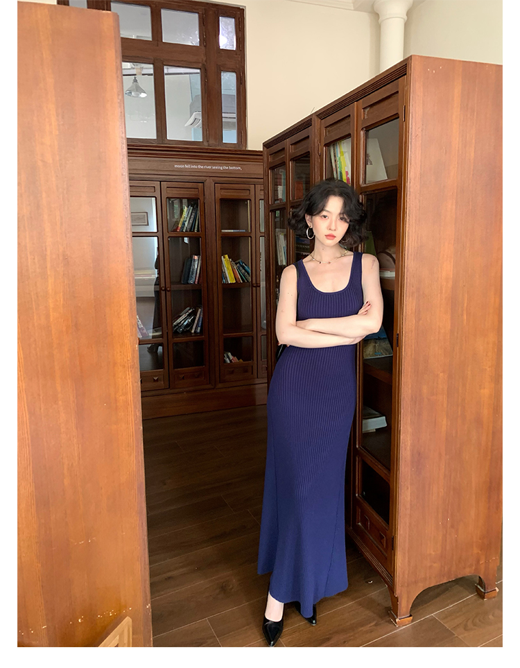 Sleeveless Knitted Vest Dress – Long Retro Layering Style