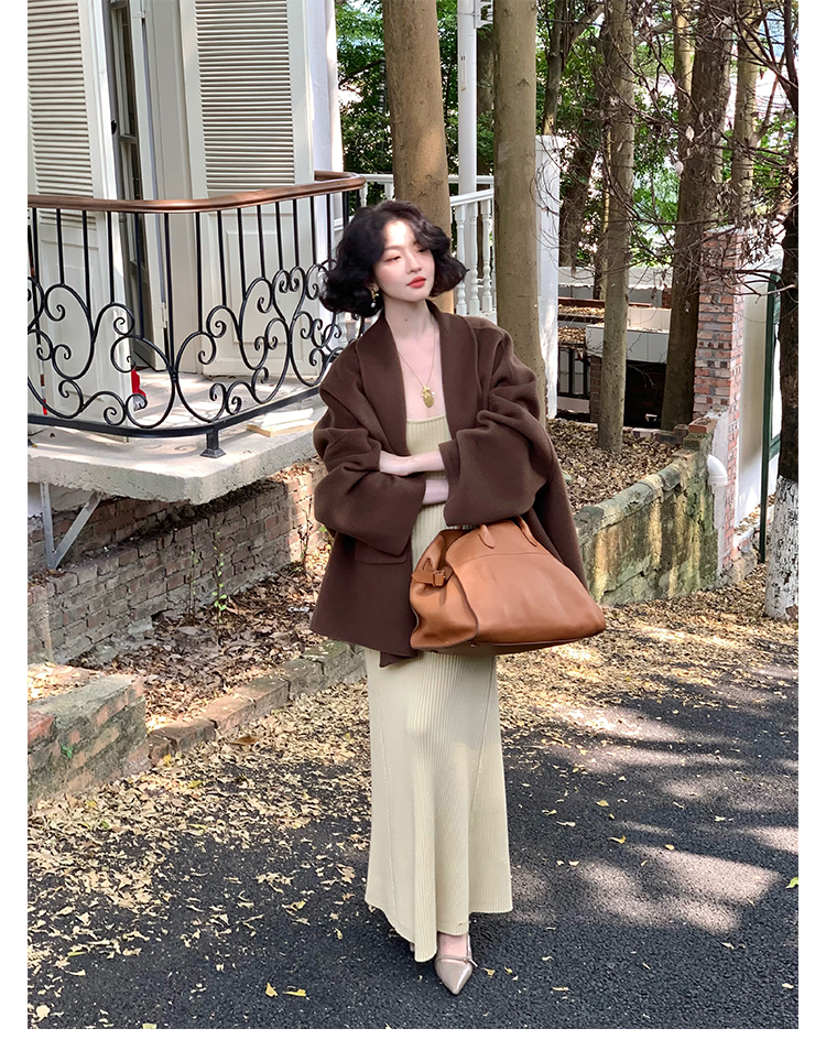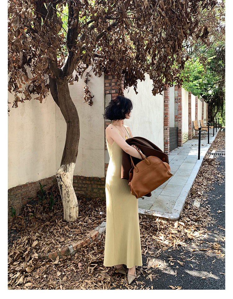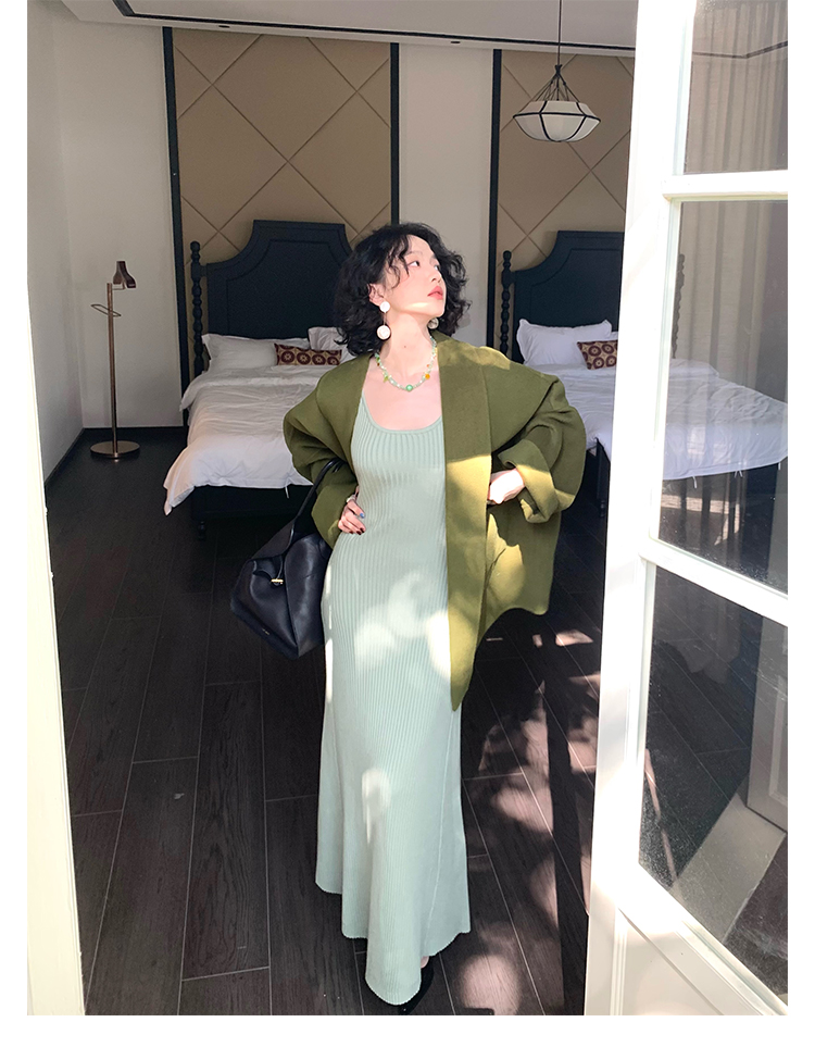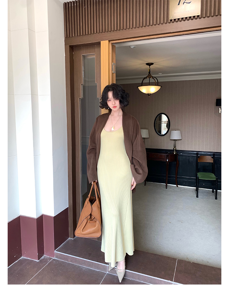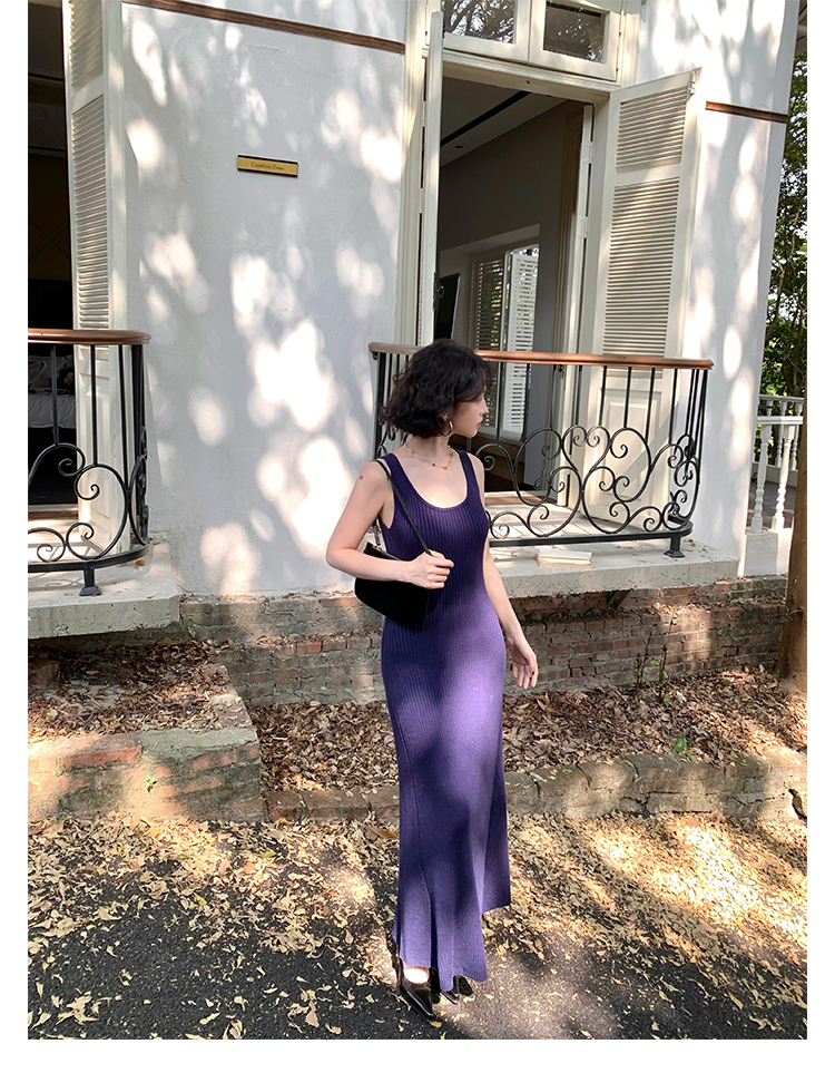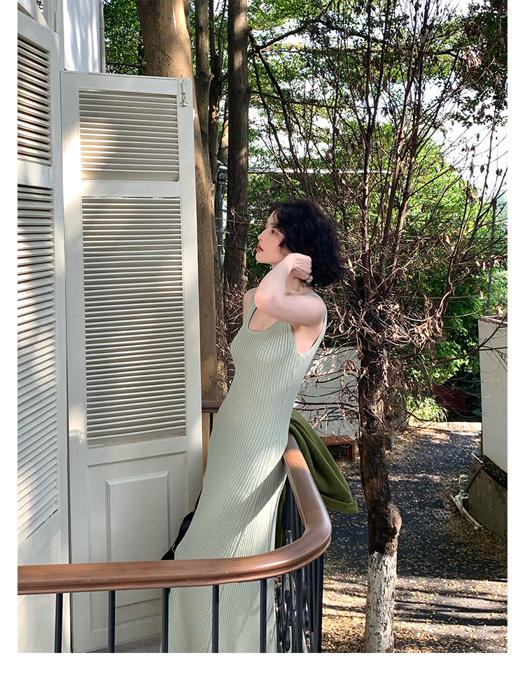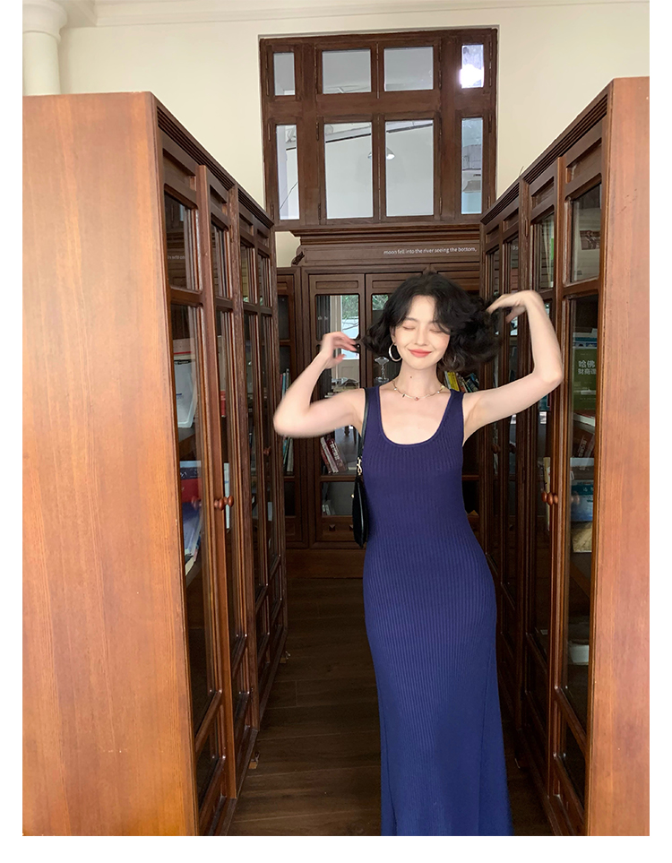 Sleeveless Knitted Vest Dress – Long Retro Layering Style