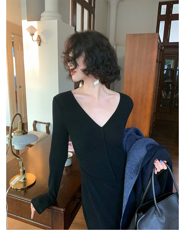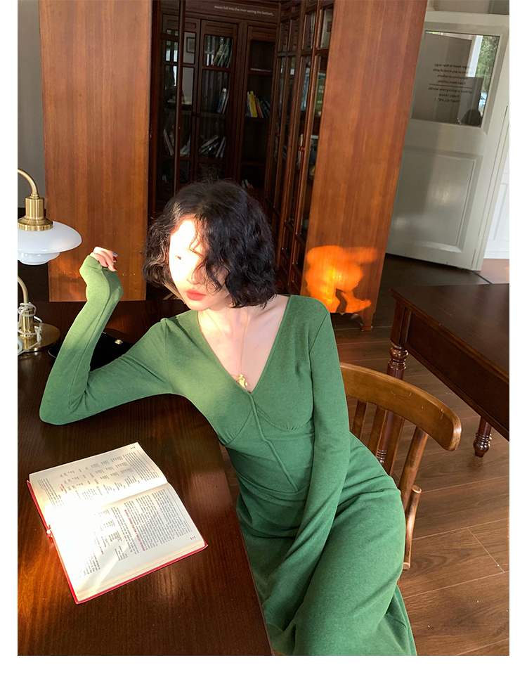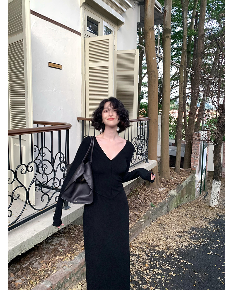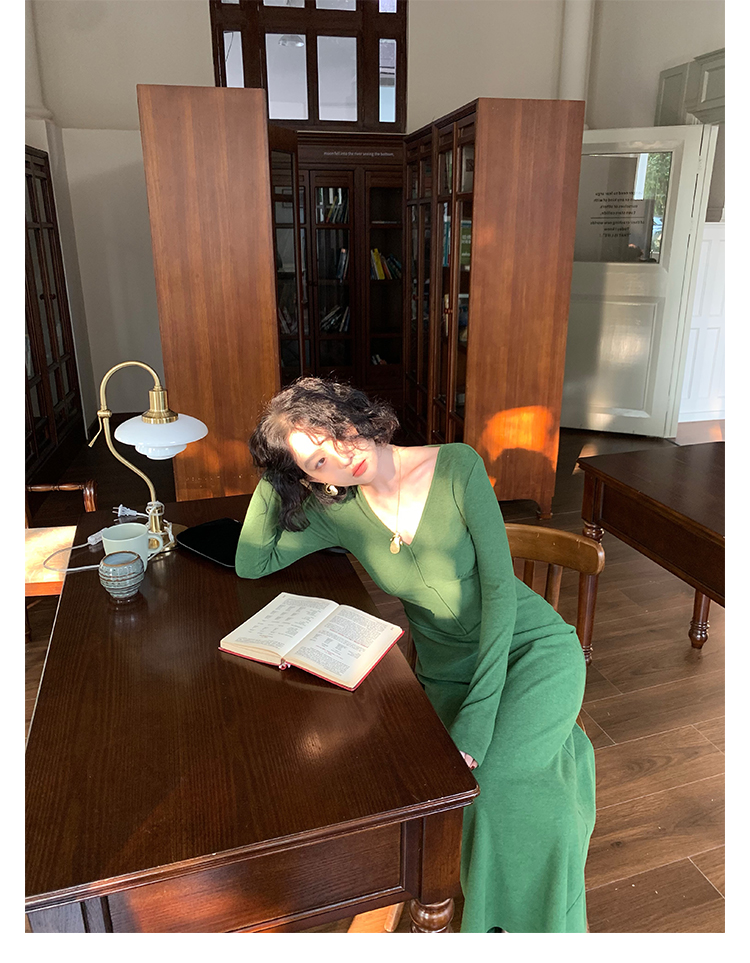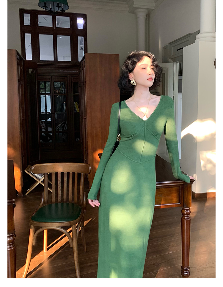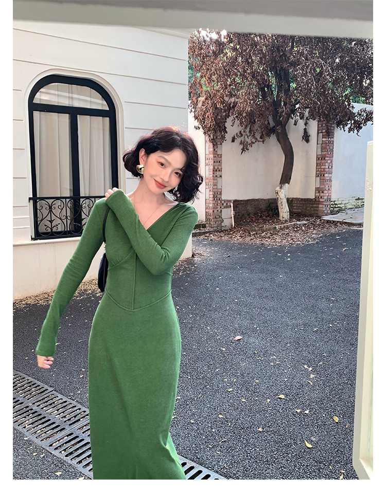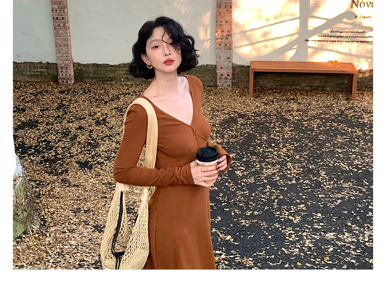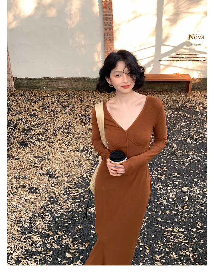 Shirred V-Neck Long Knitted Dress – Double 11 Chic Style