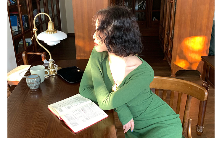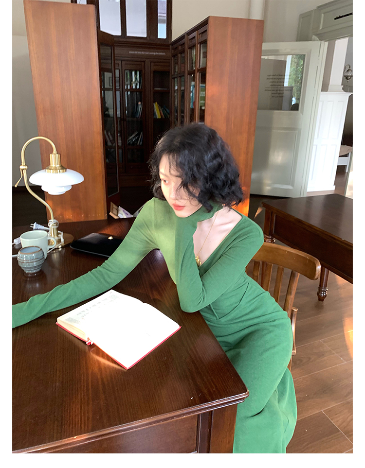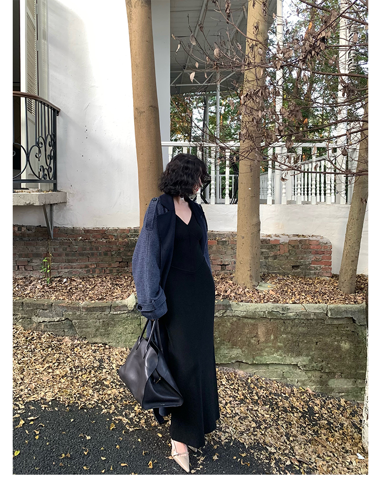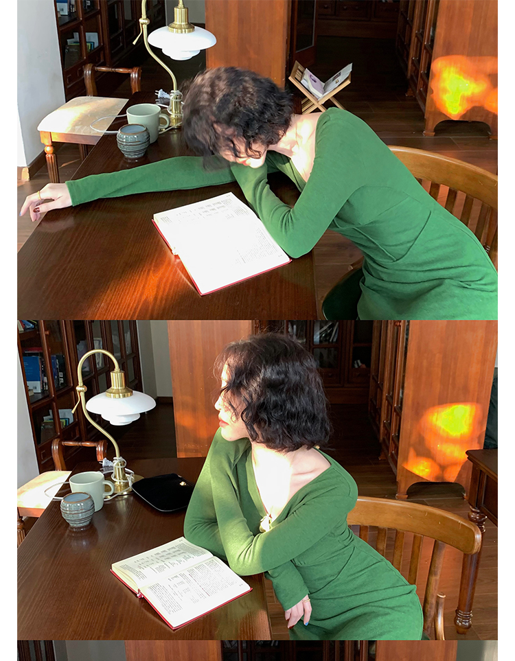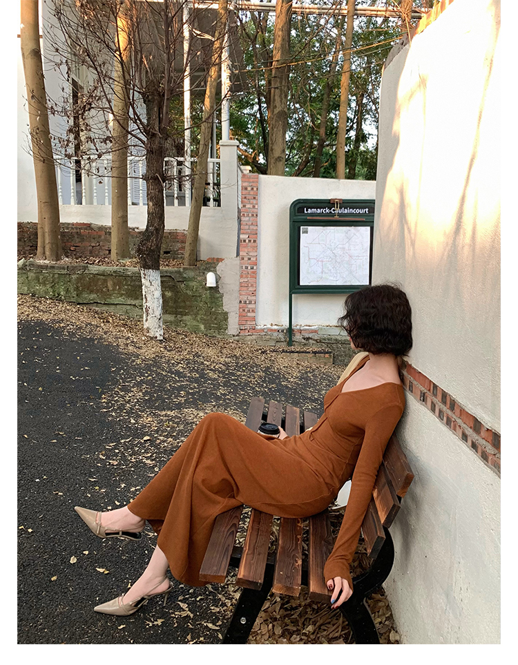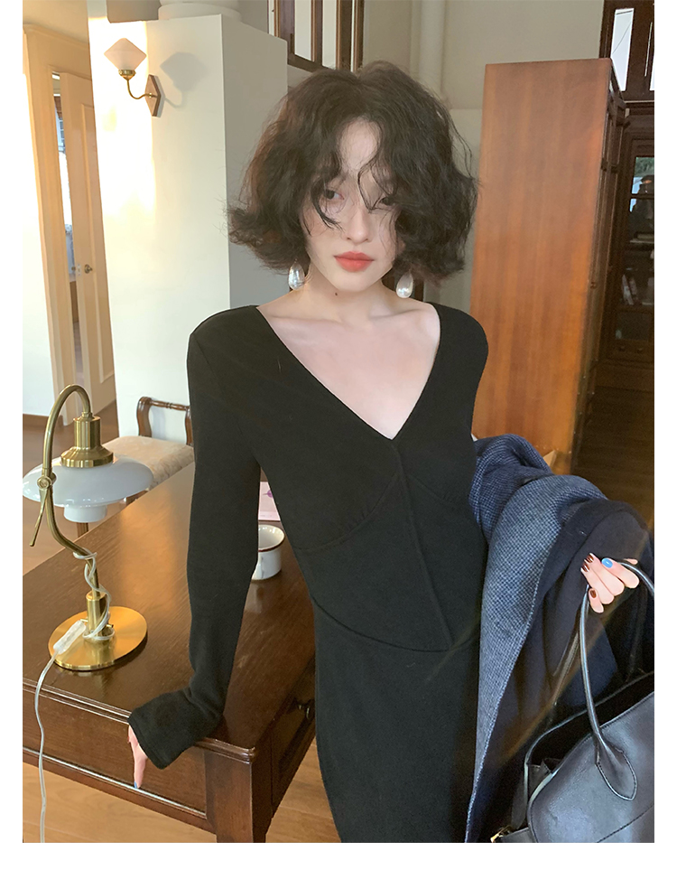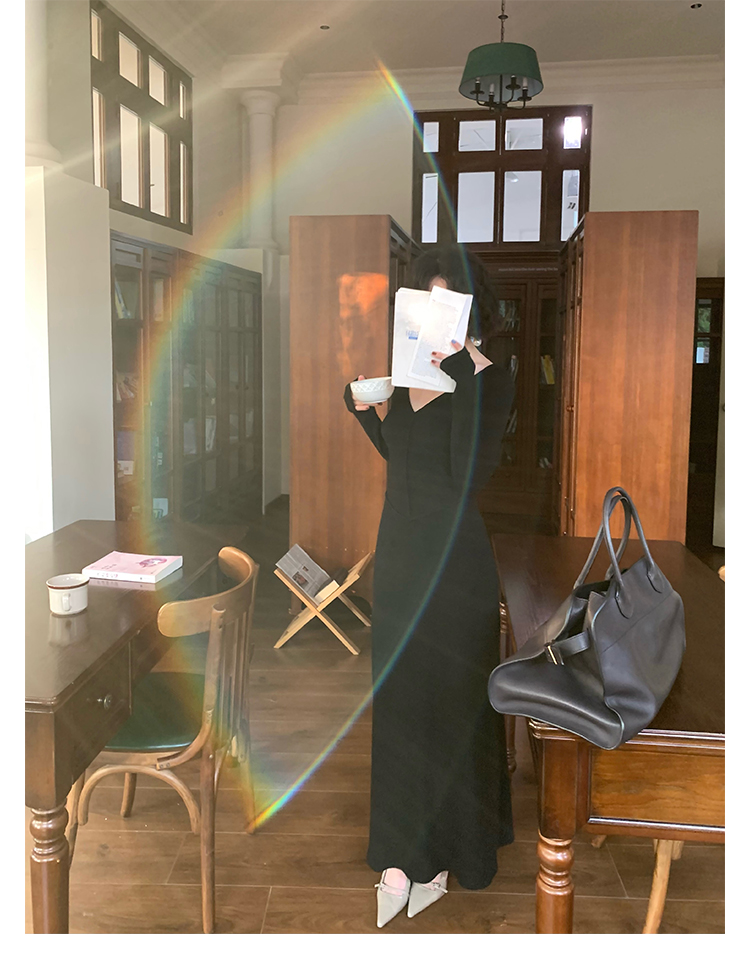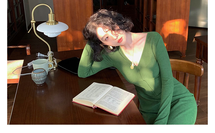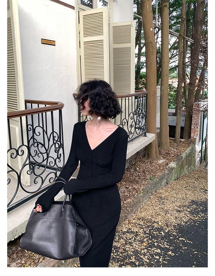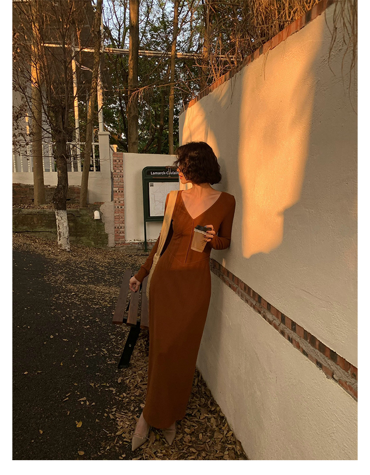Shirred V-Neck Long Knitted Dress – Double 11 Chic Style