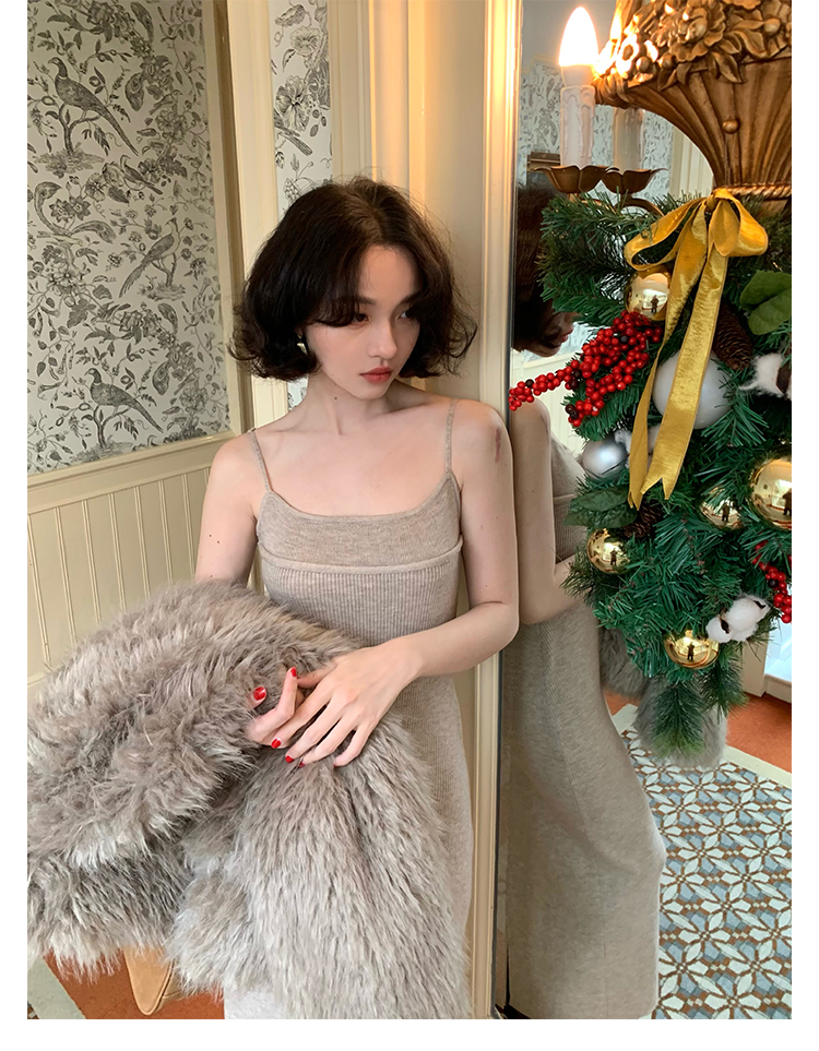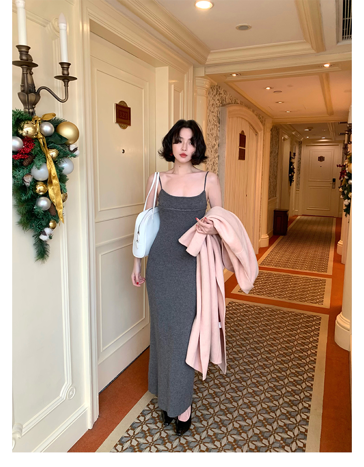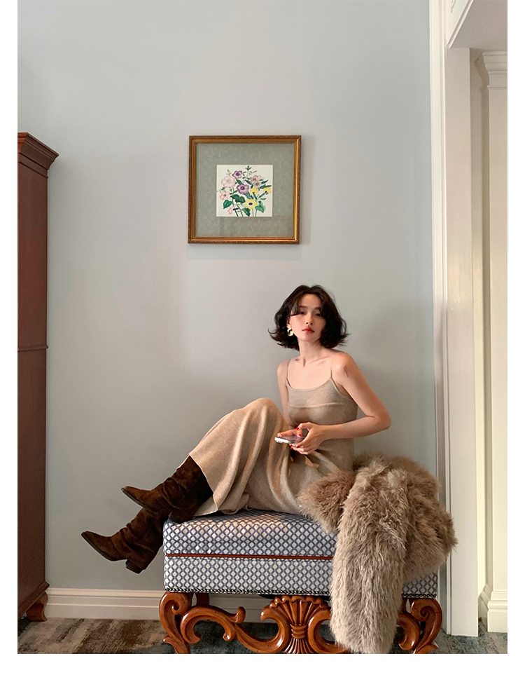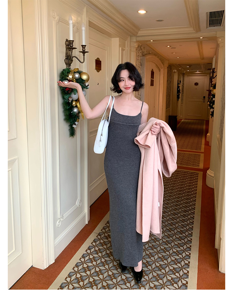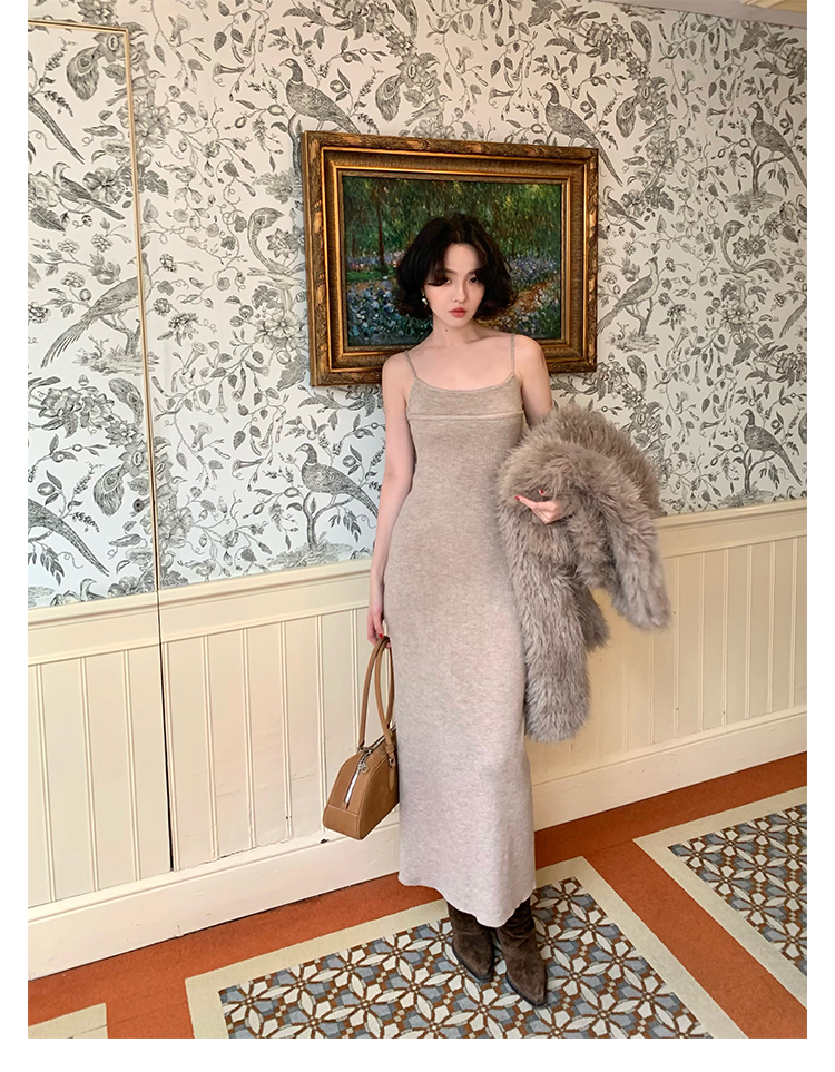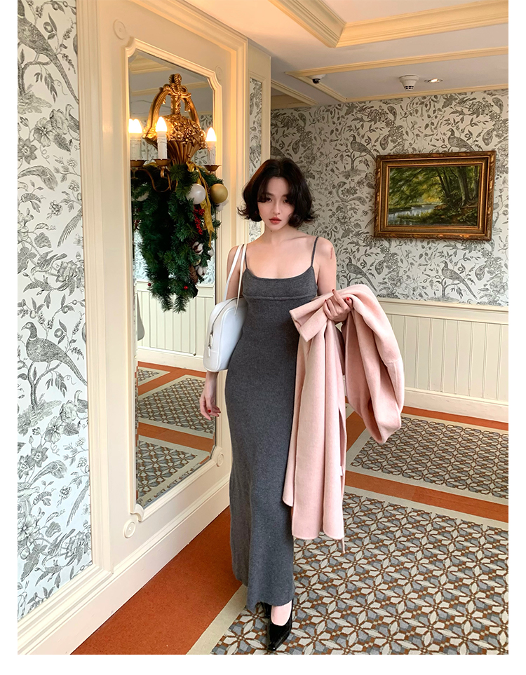 French Sleeveless Wrap Maxi Knit Dress (Evening Harvest)