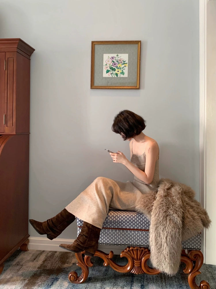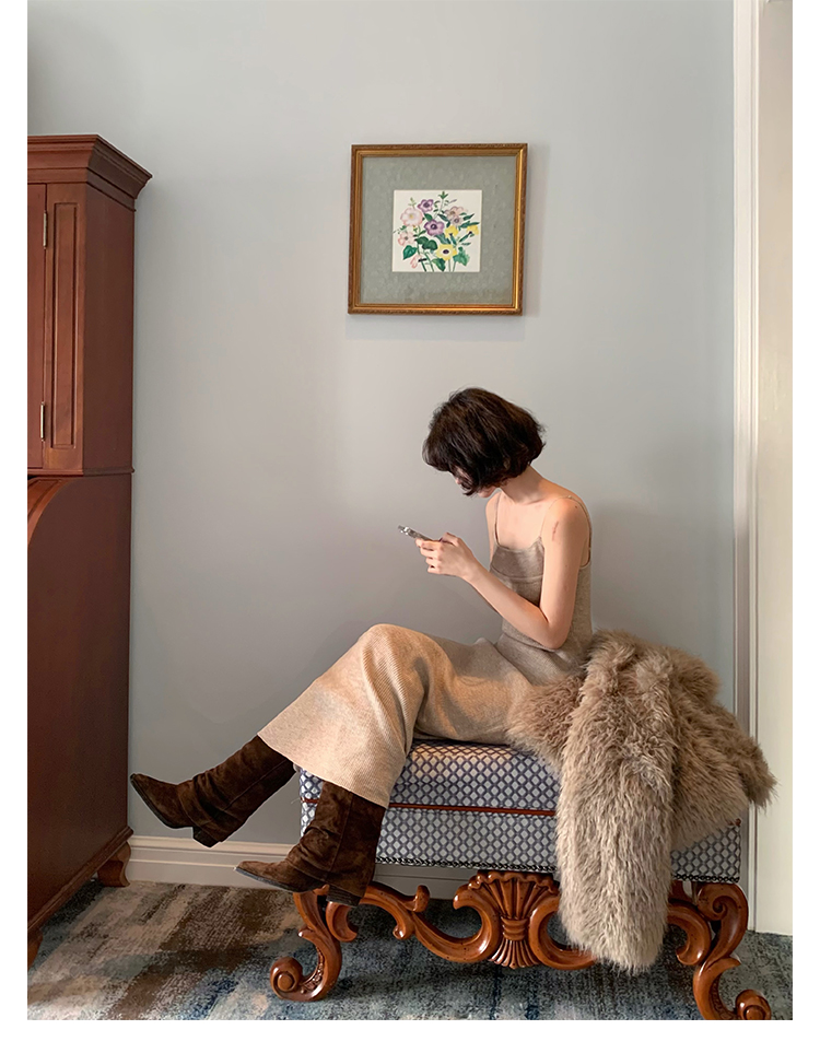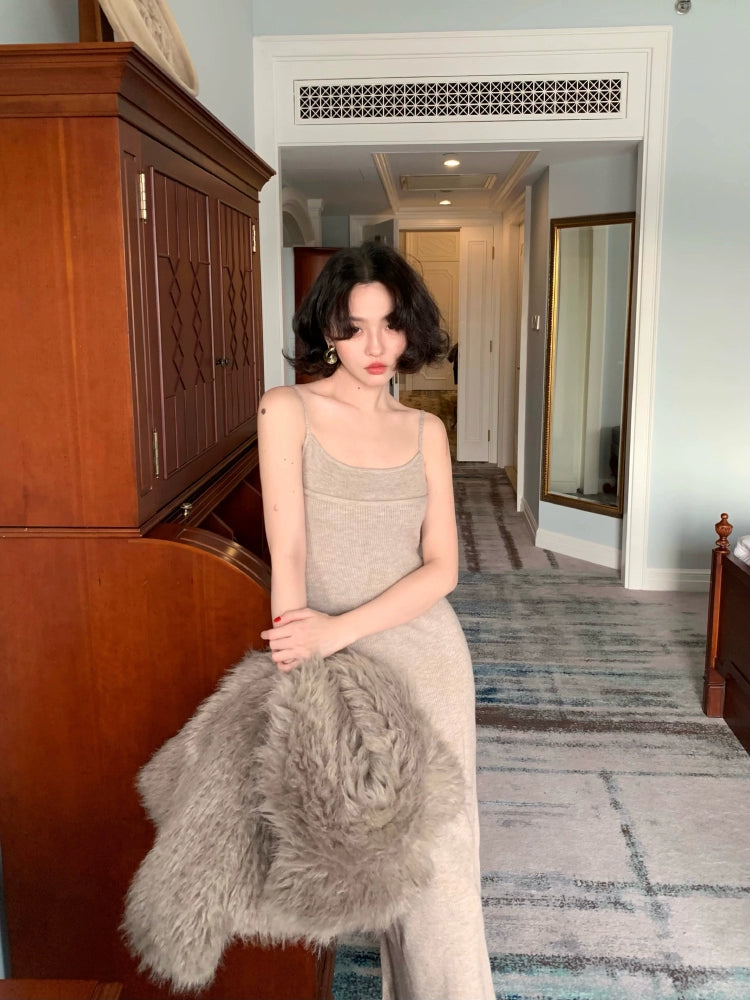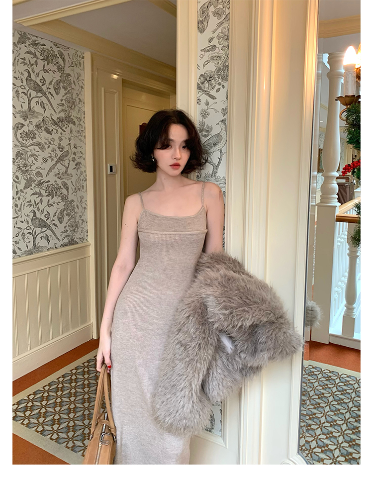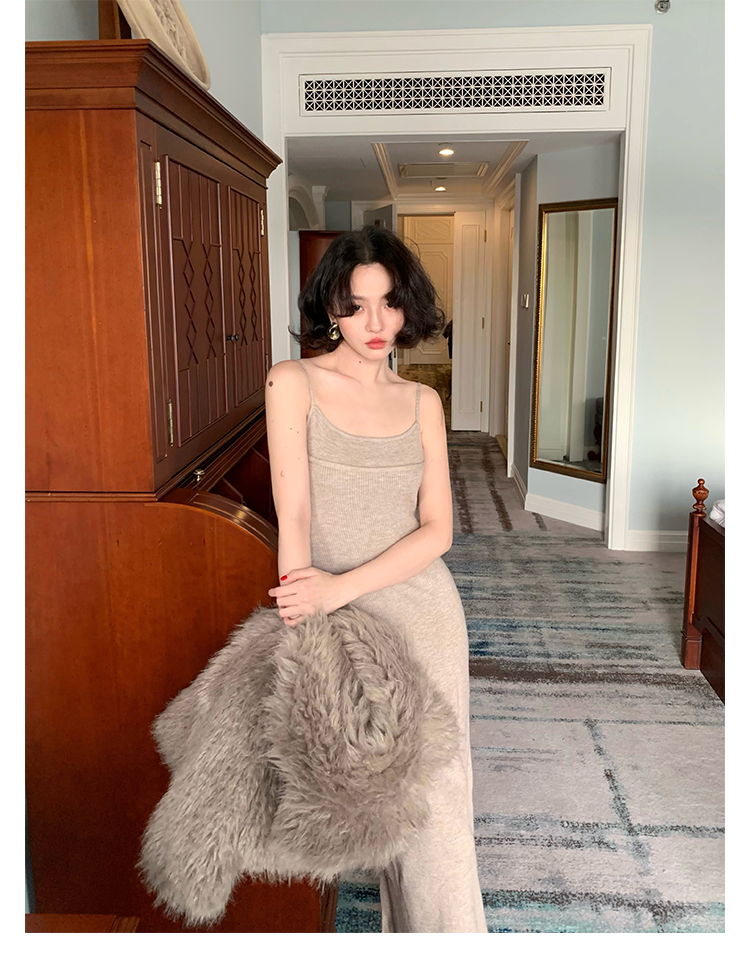 French Sleeveless Wrap Maxi Knit Dress (Evening Harvest)