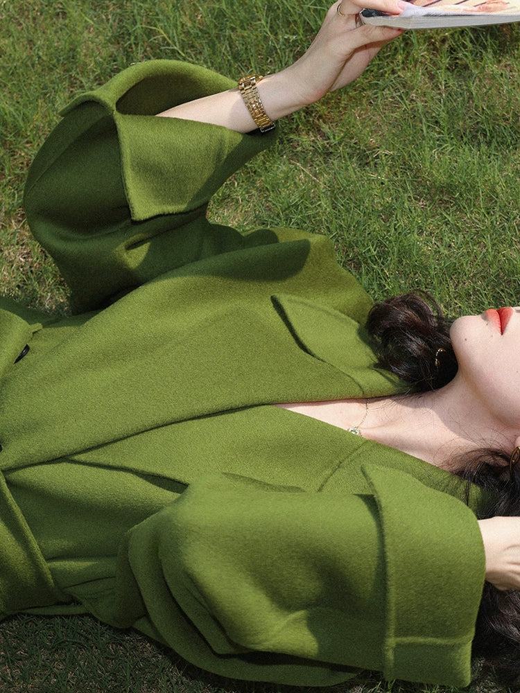 French Retro 100% Wool Tweed Midi Coat – Loose Classic Jacket