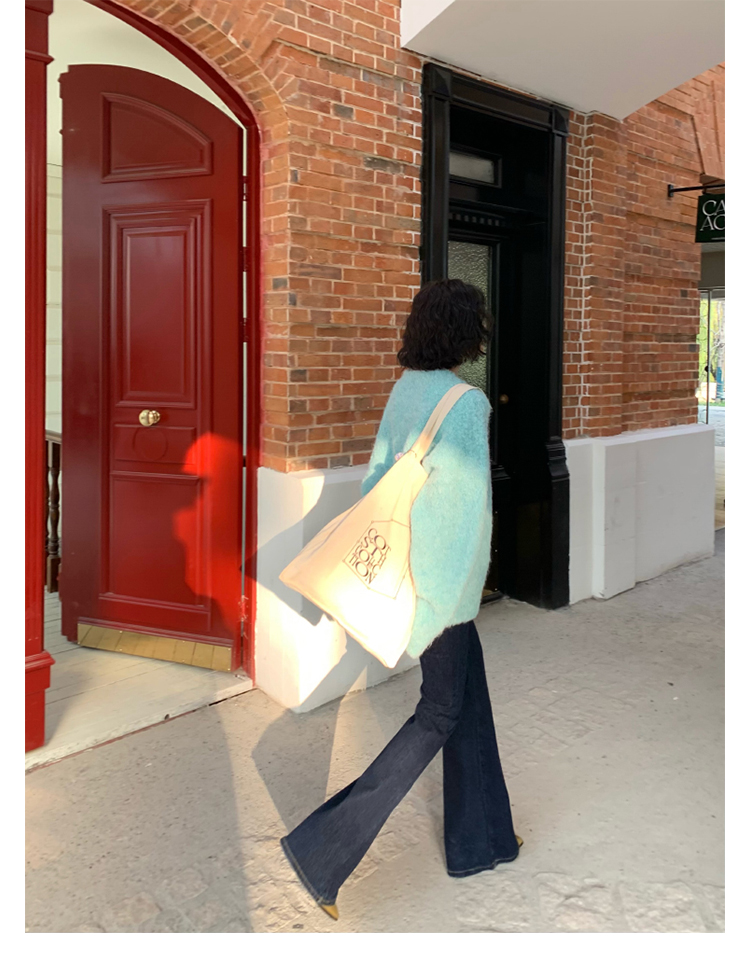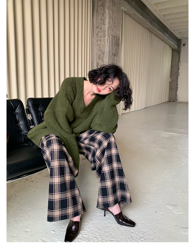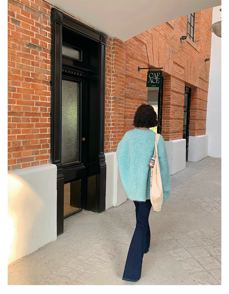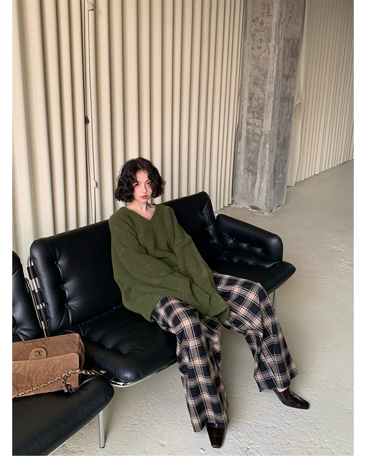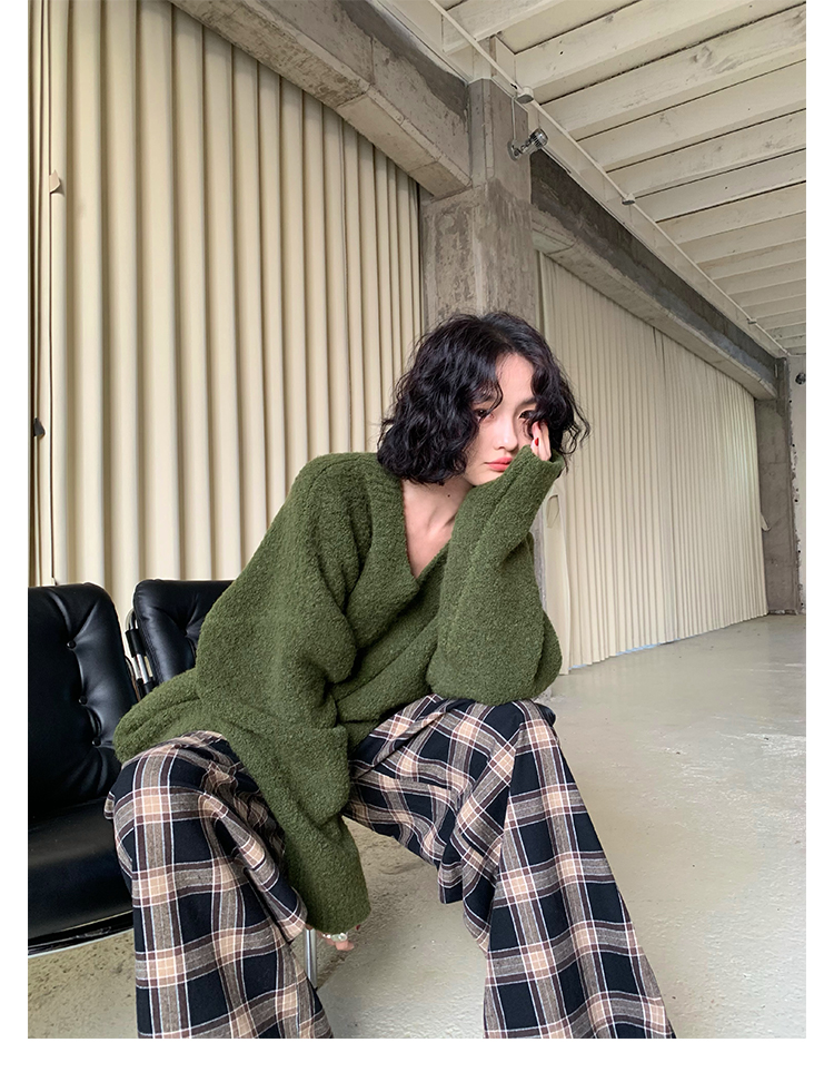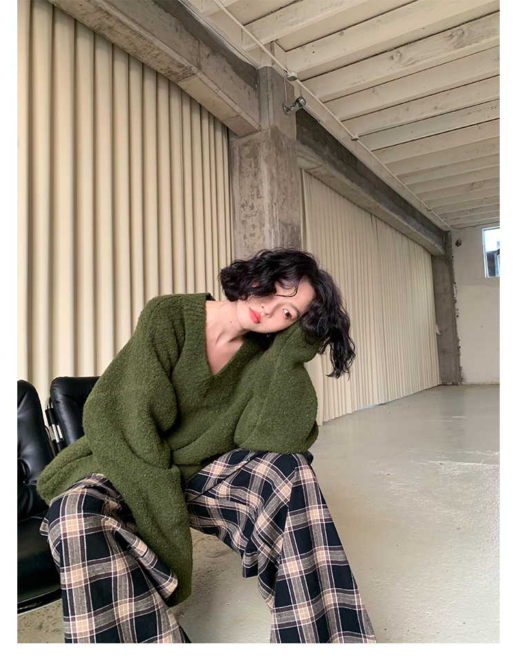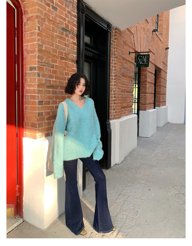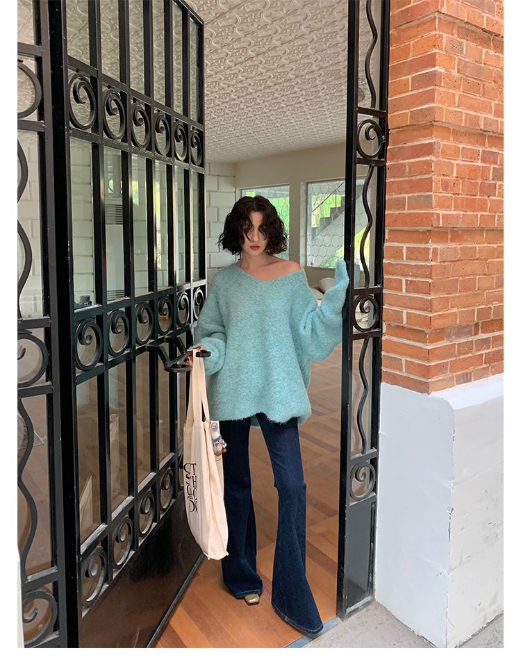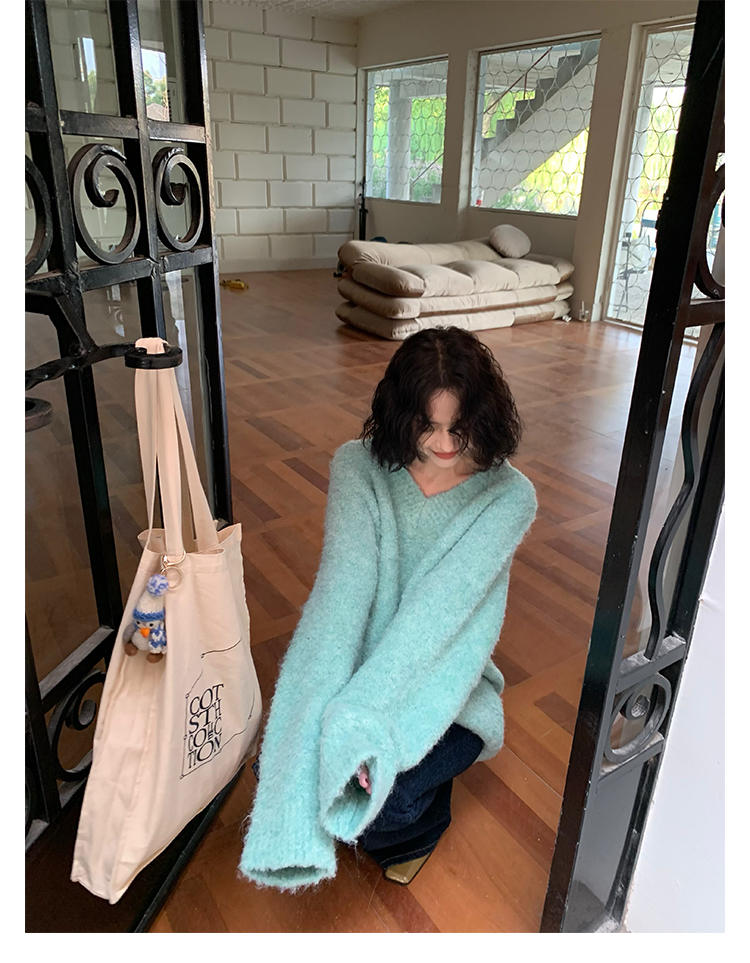 Ice Blue V-Neck Loose Wool Sweater – Cozy Fit