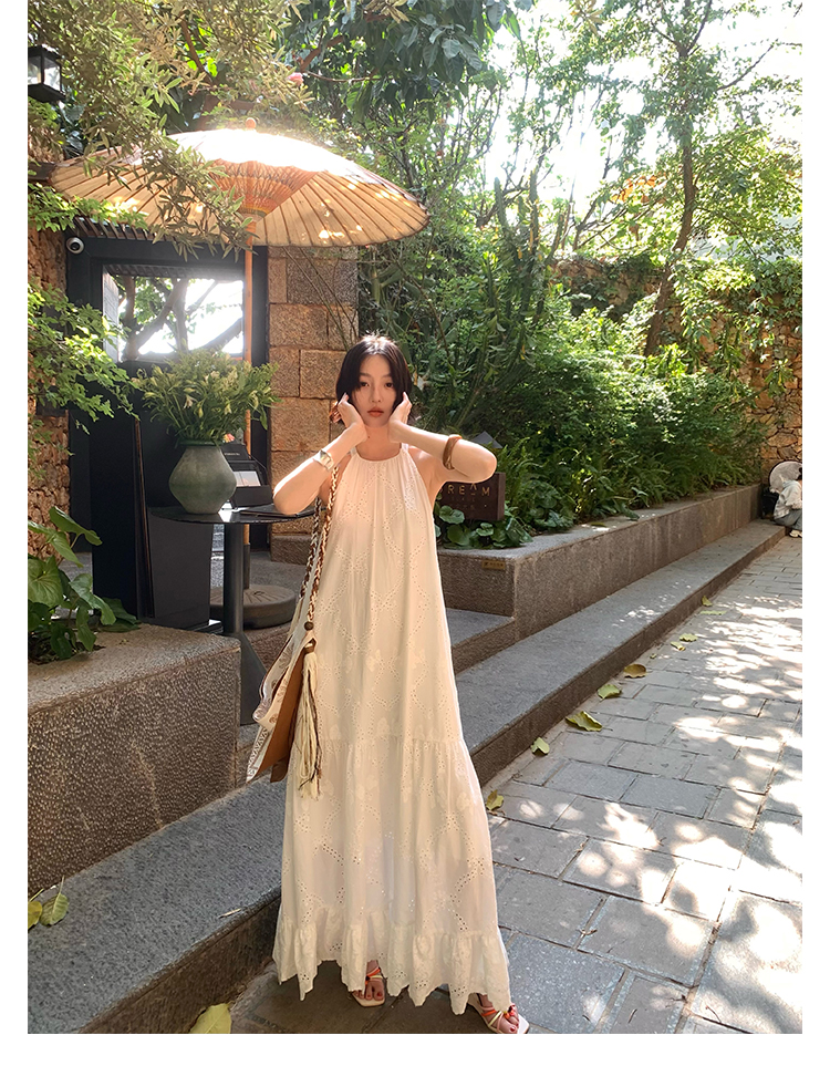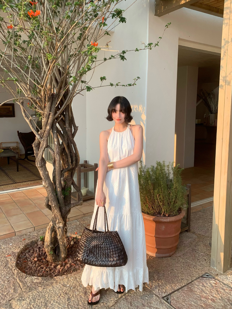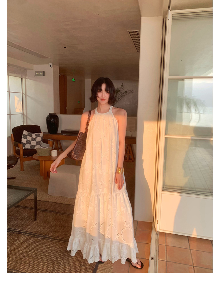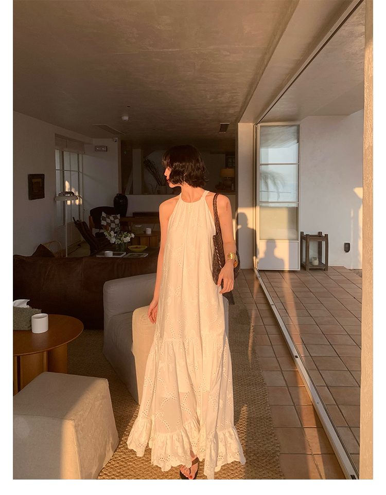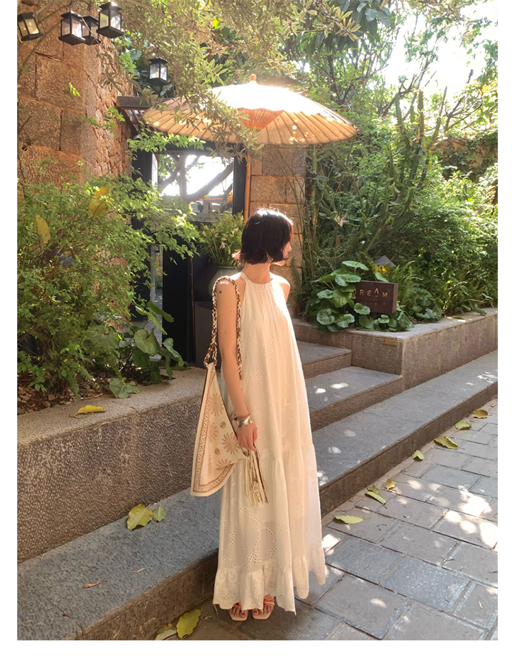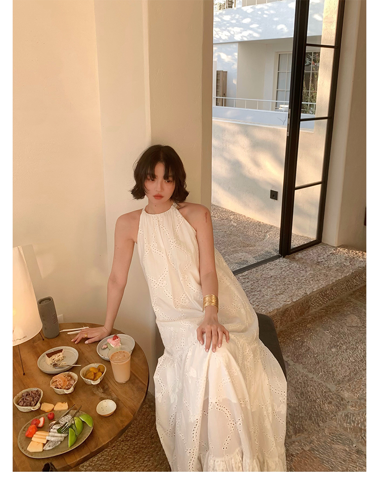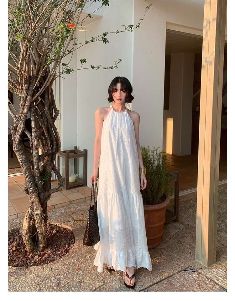 [Manye] French Retro Halterneck Maxi Dress – Resort Style