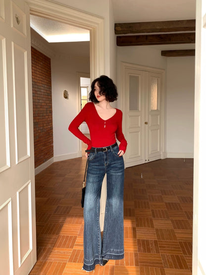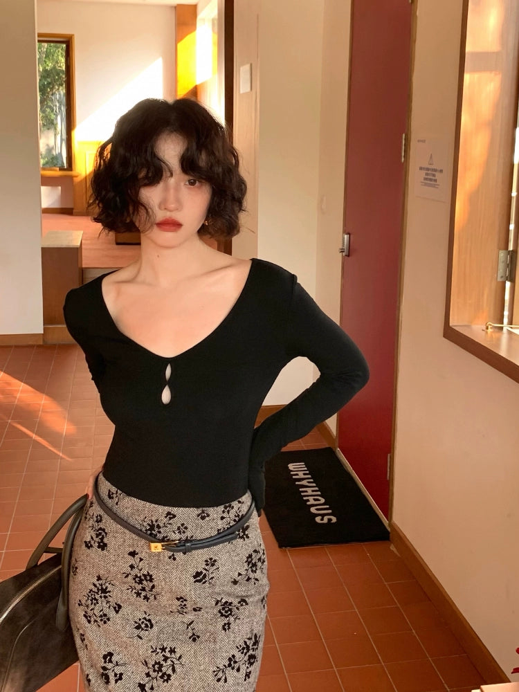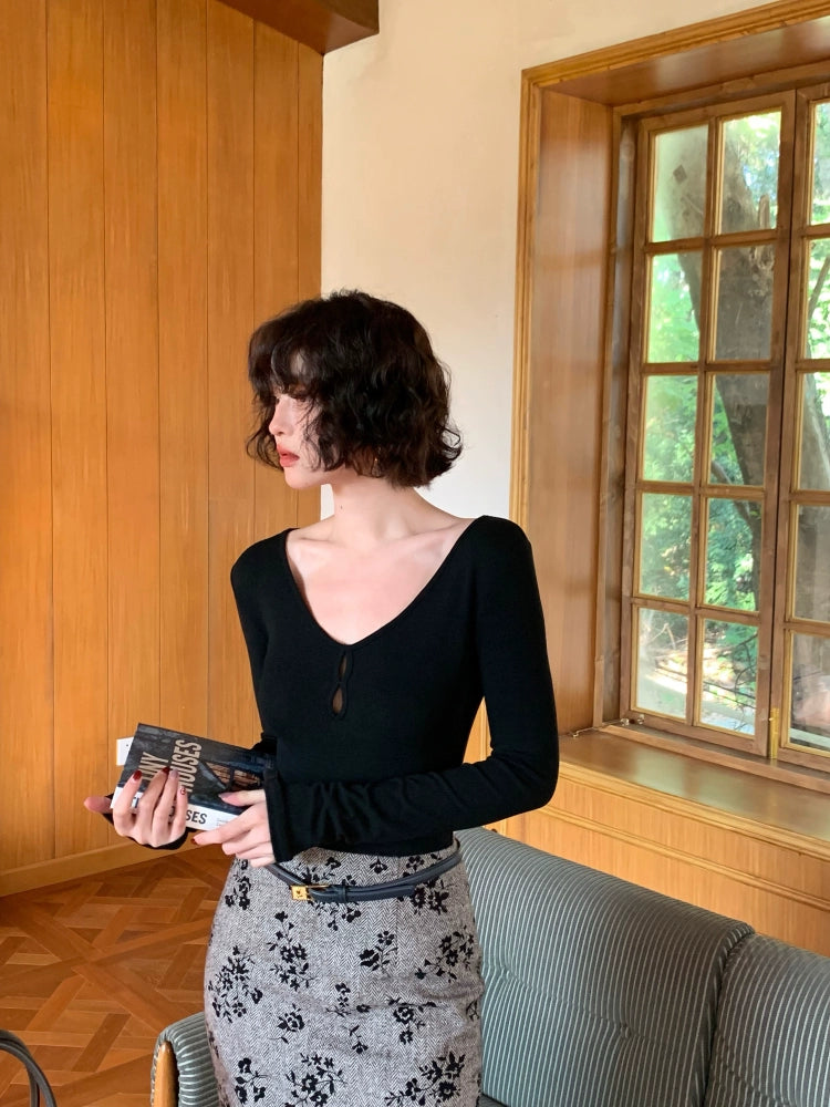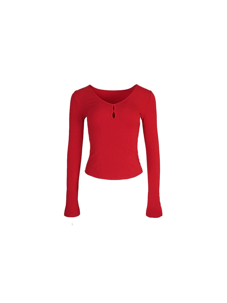 Simplified Cutout V-Neck Base Shirt – Sexy Minimalism