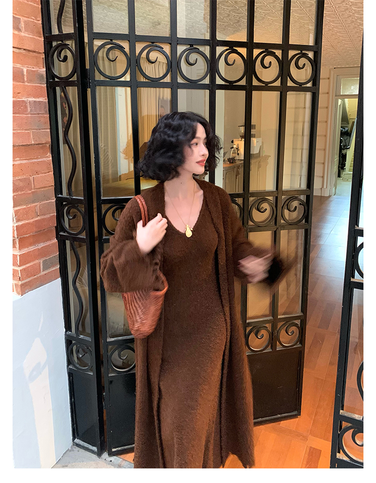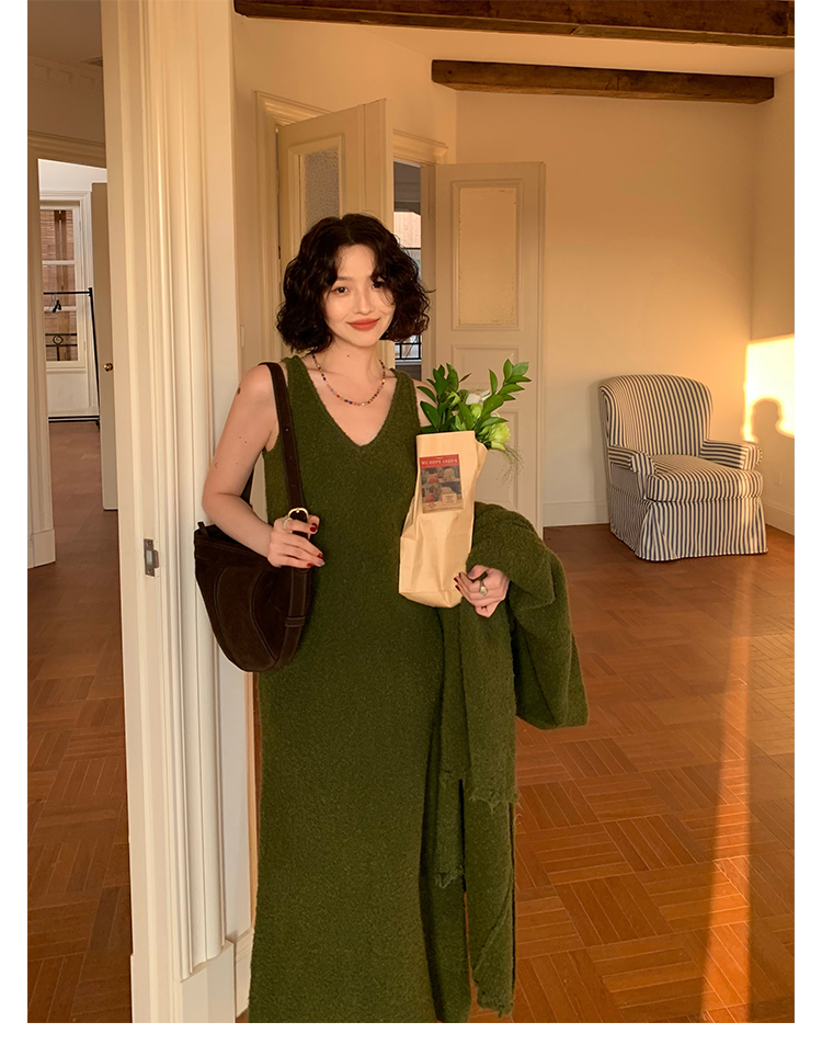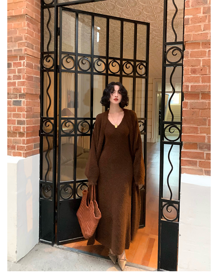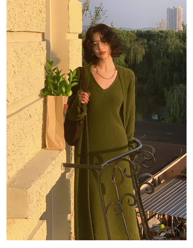 Soft Nails Knitted Cardigan + Vest Dress Set – Woolen Winter Duo