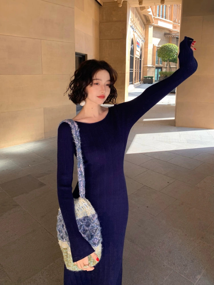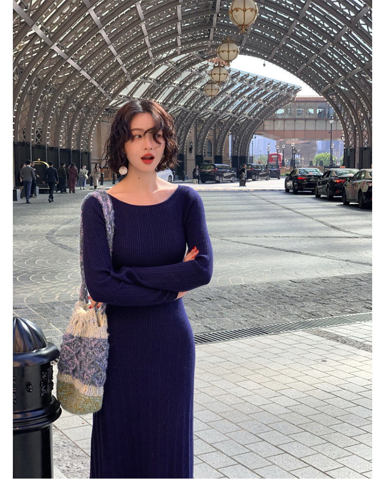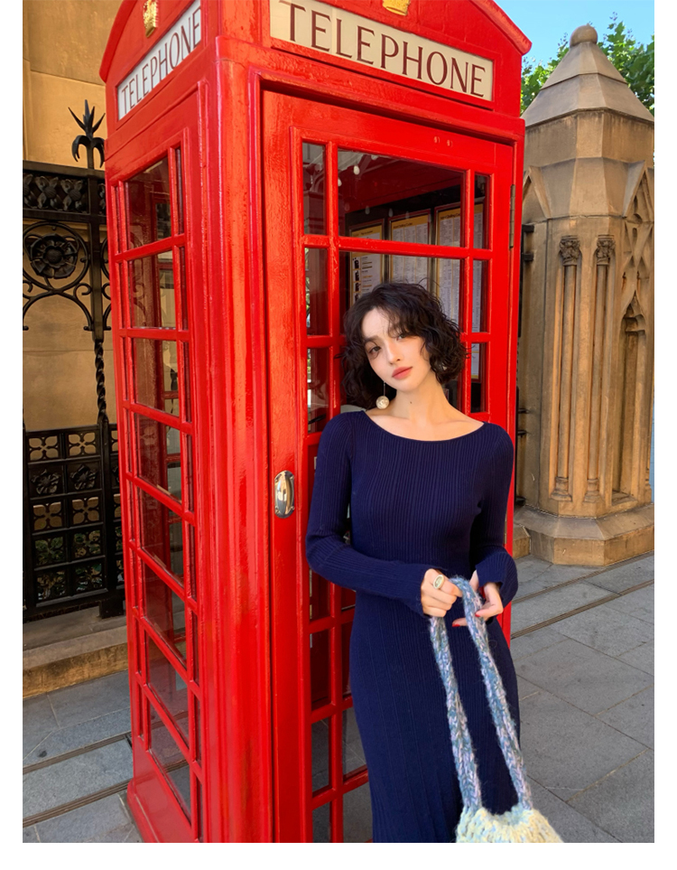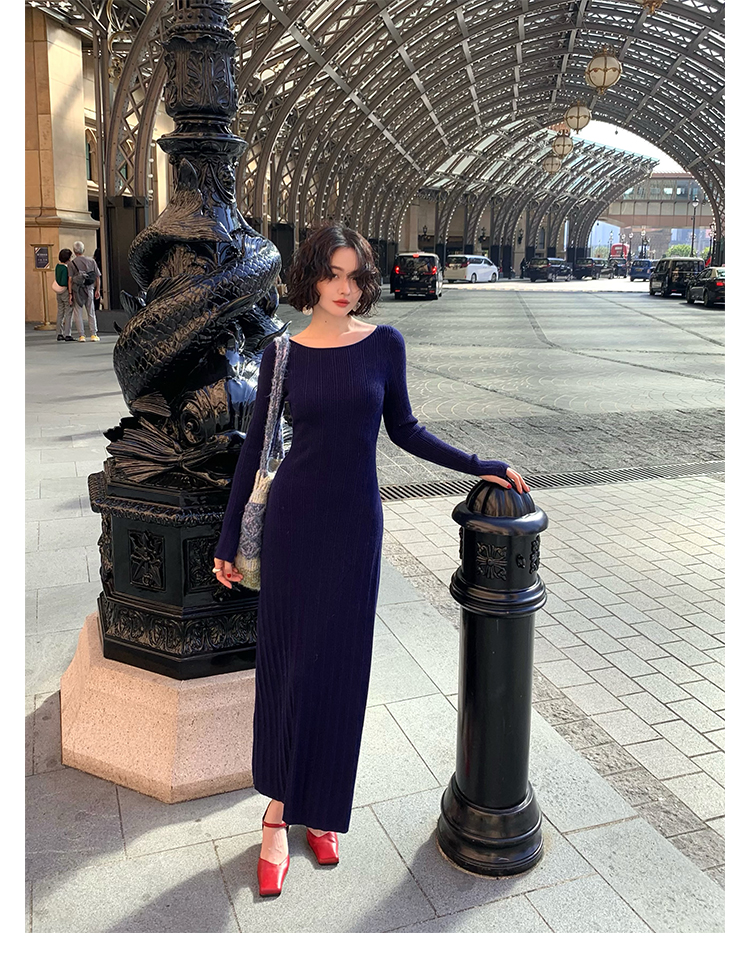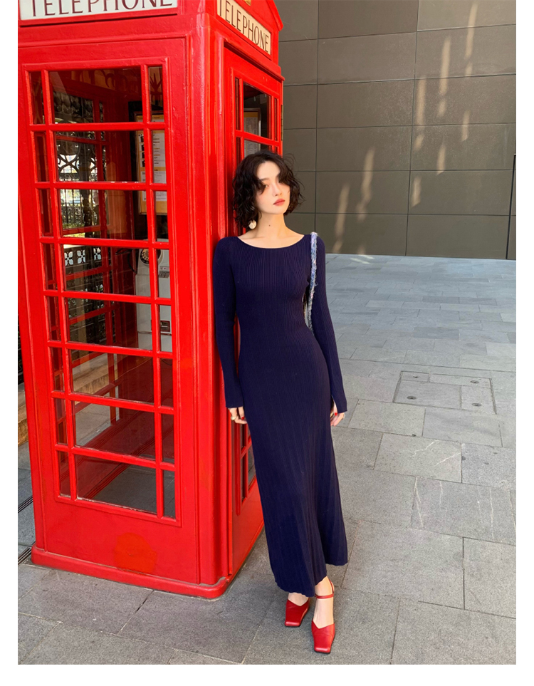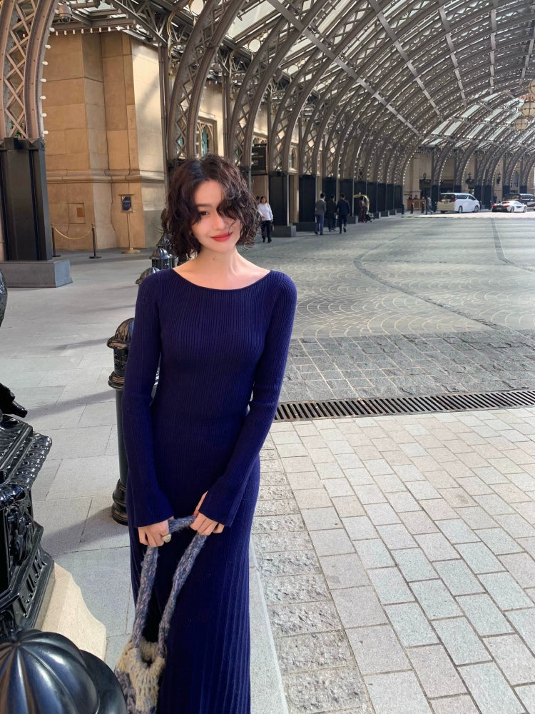 Retro Slim Waist Knitted Dress (Lanyun Collection)