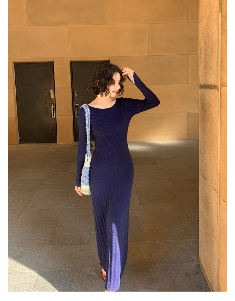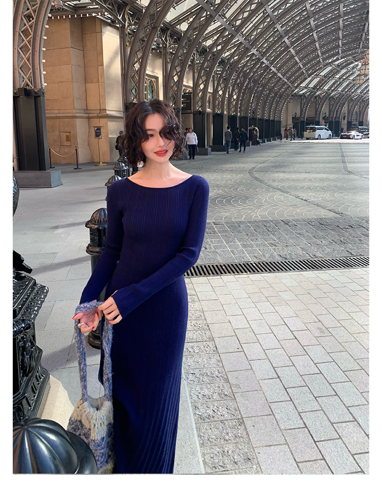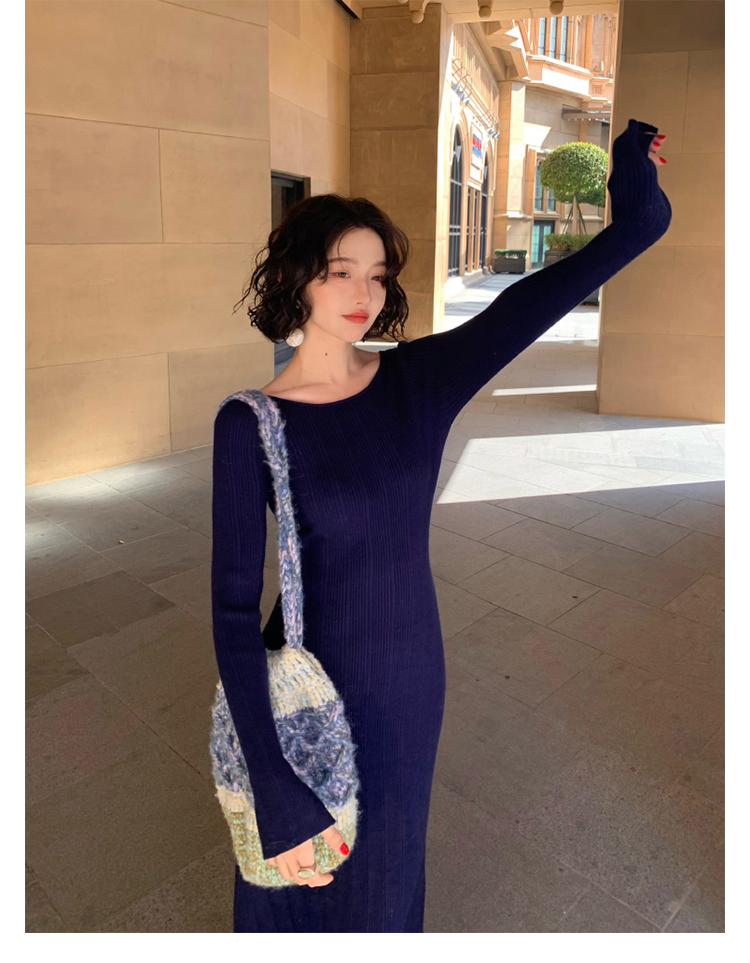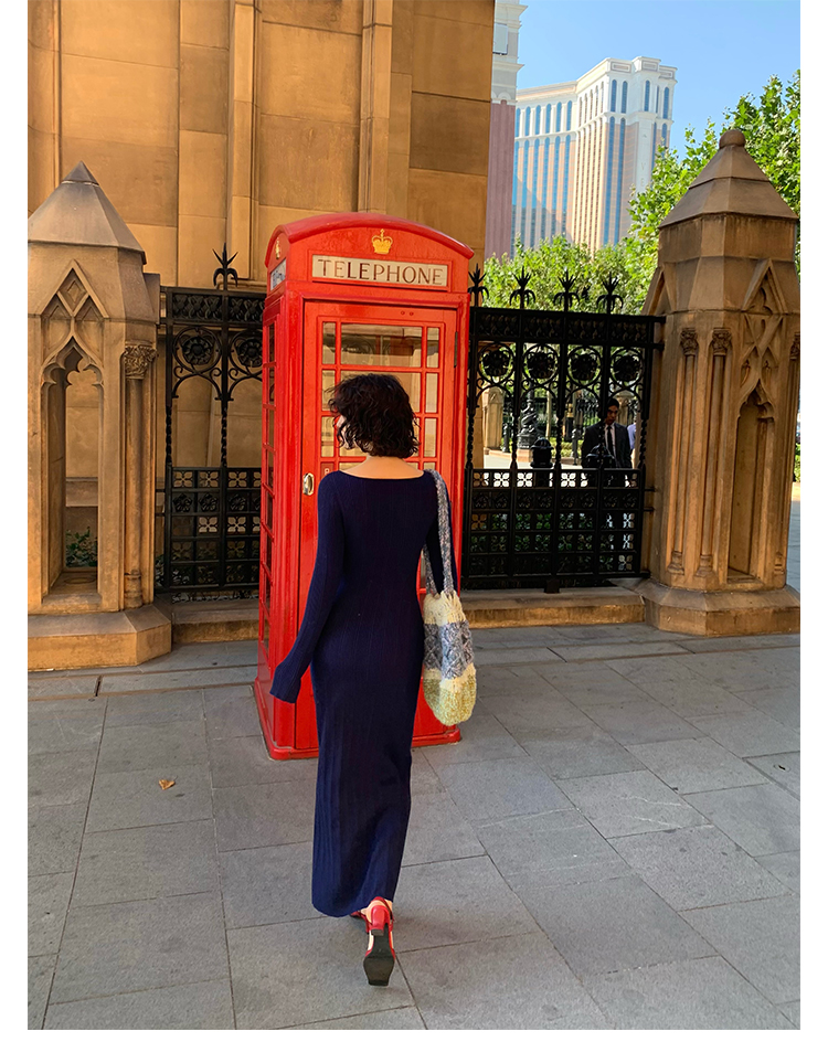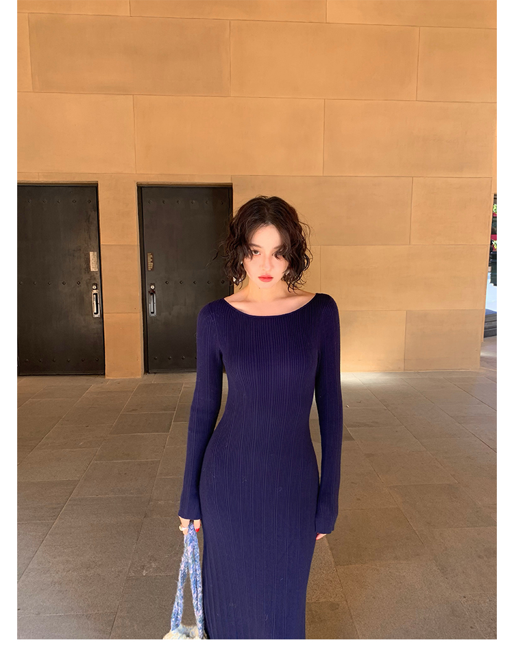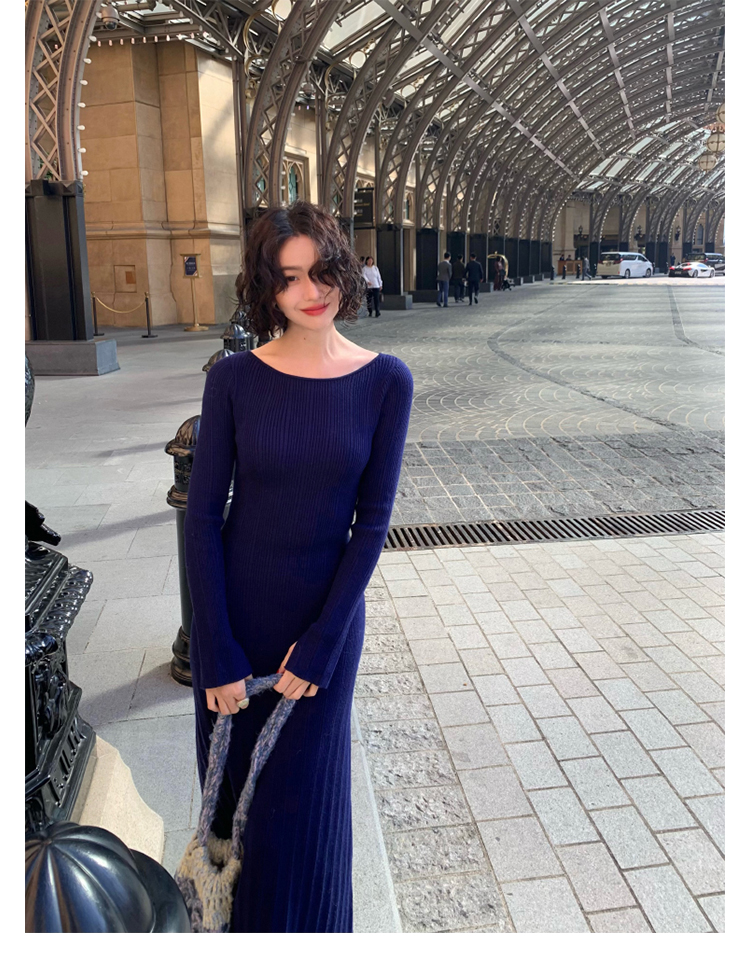 Retro Slim Waist Knitted Dress (Lanyun Collection)