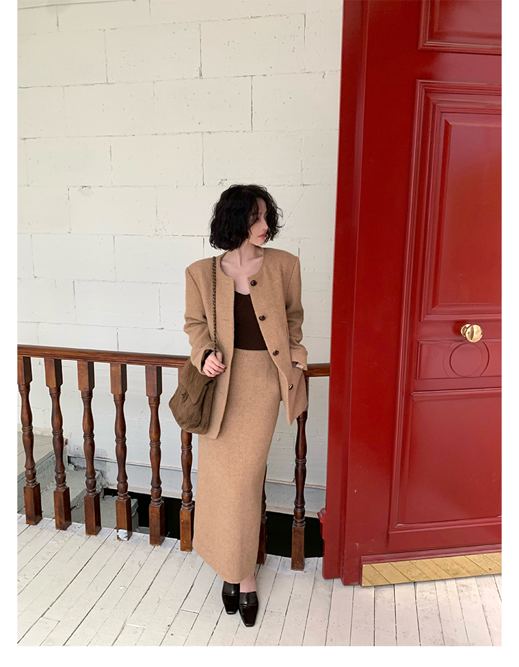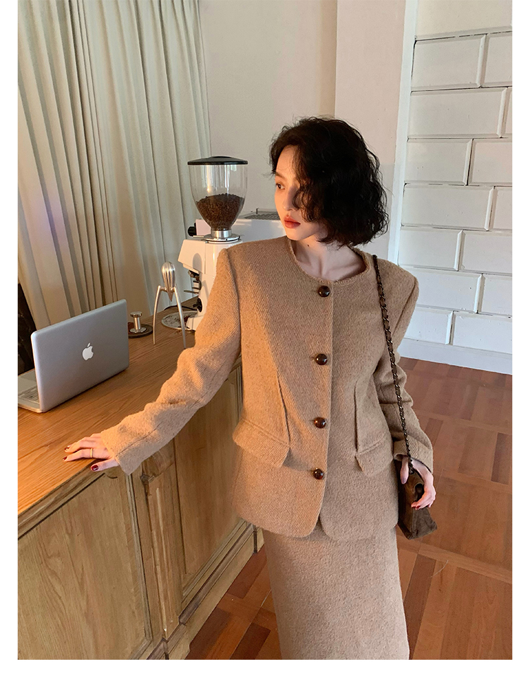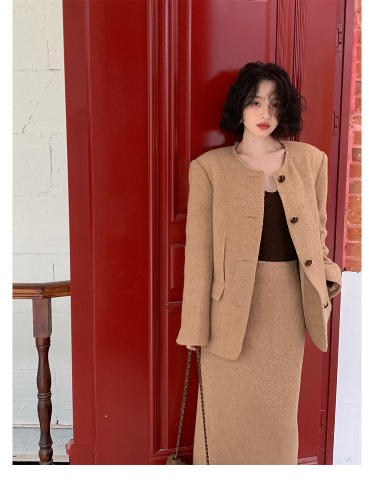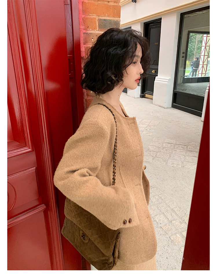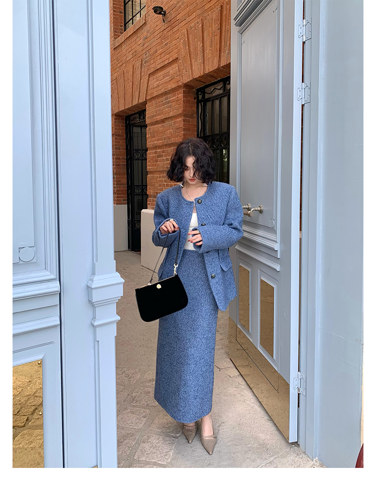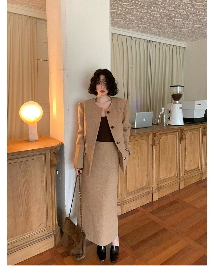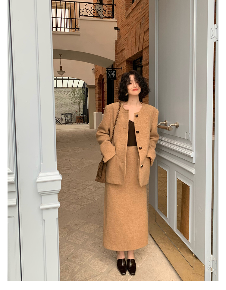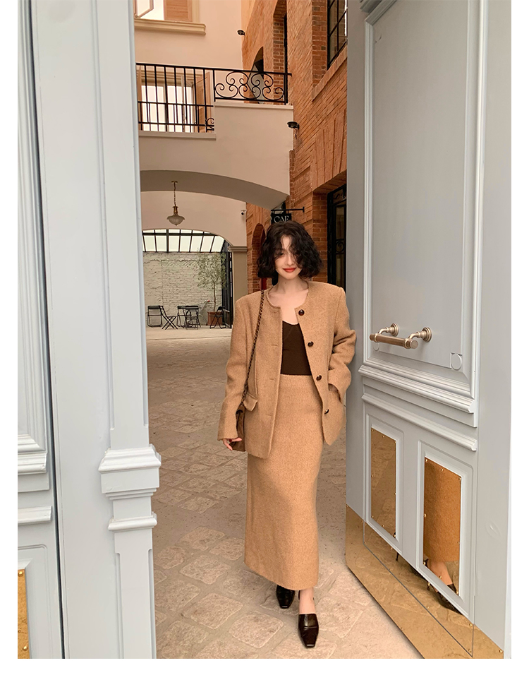 Two-Piece Wool Coat & Skirt Set – Chic Small Fragrance Design