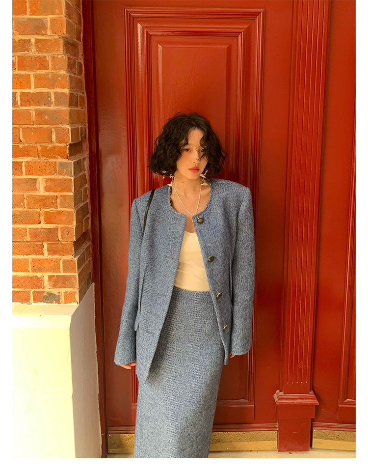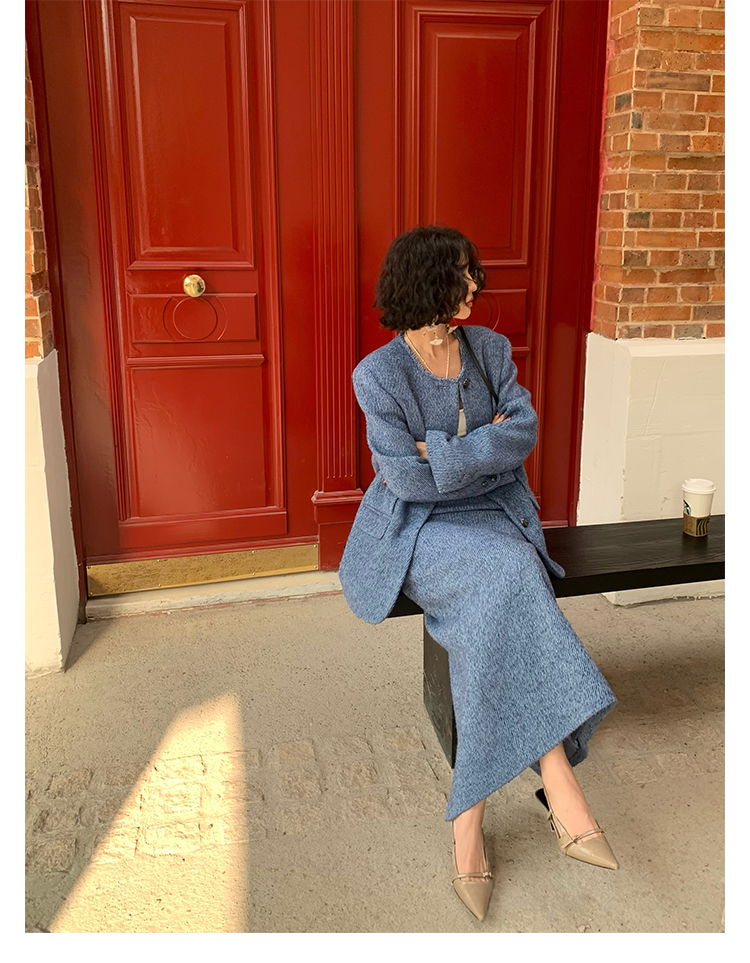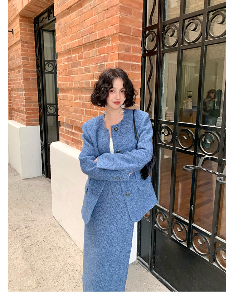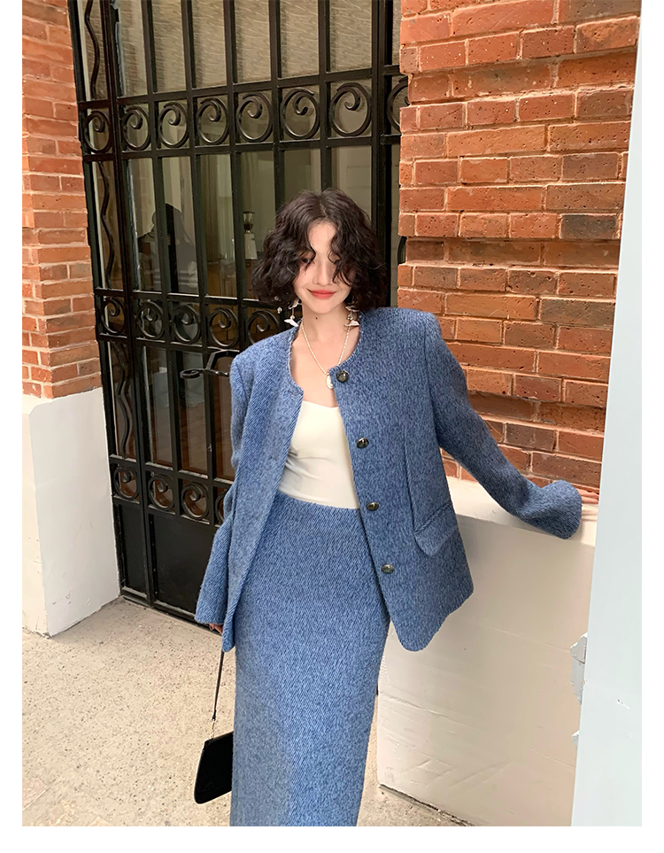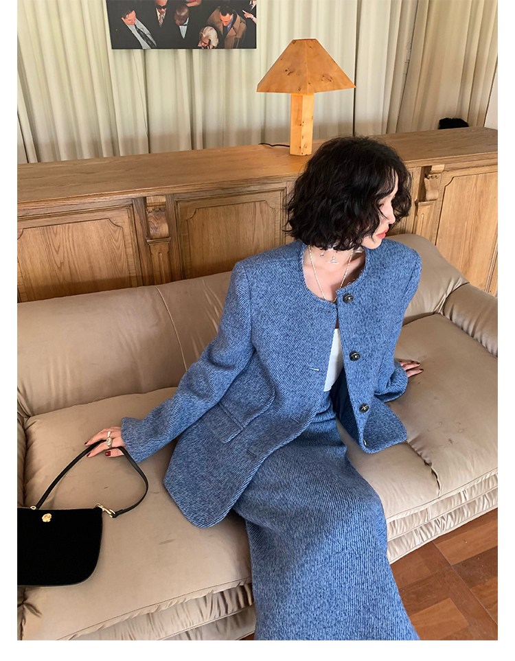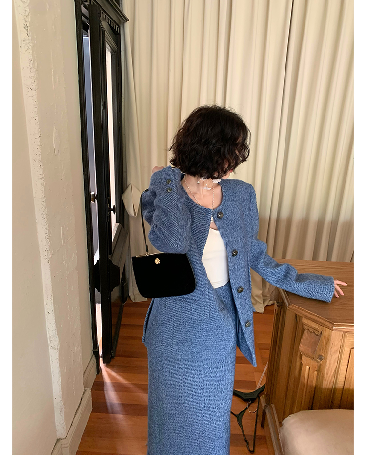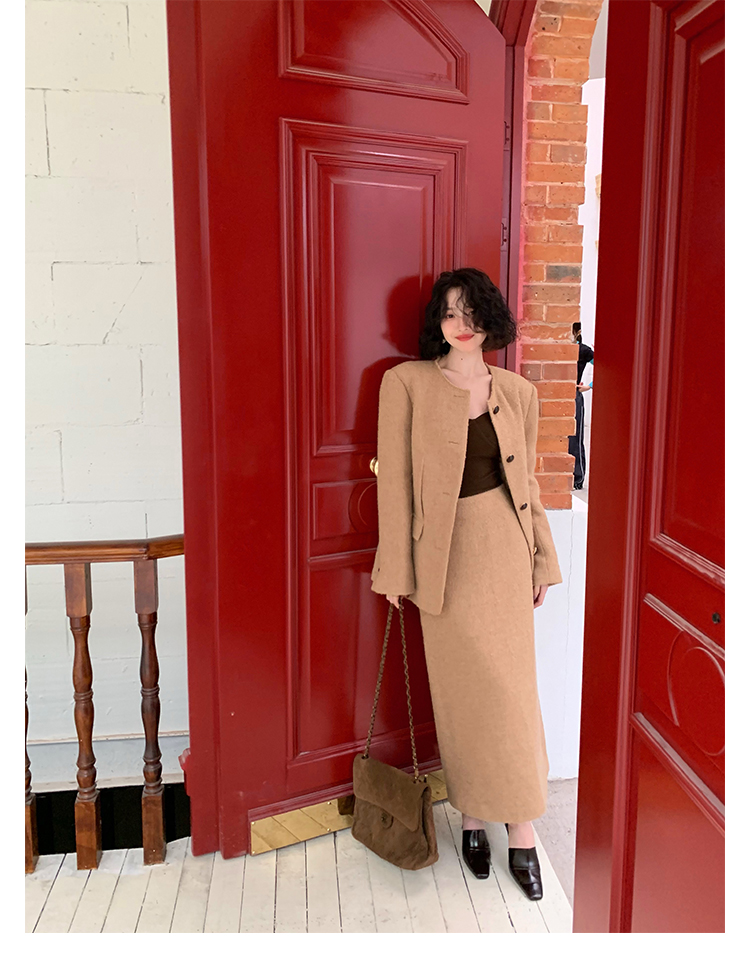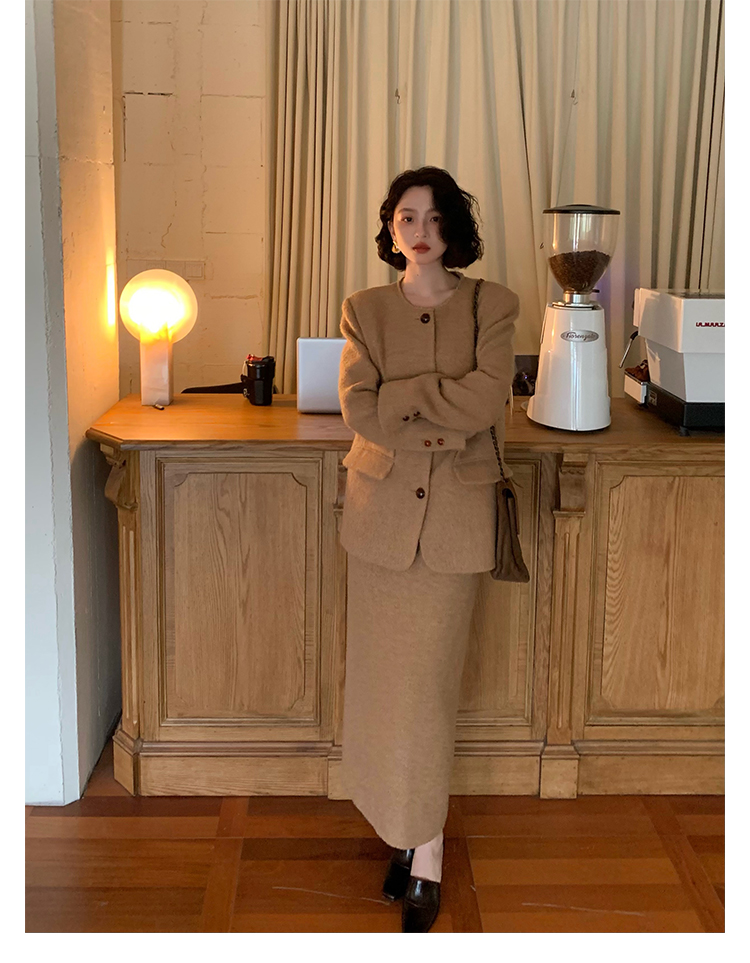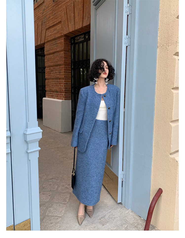 Two-Piece Wool Coat & Skirt Set – Chic Small Fragrance Design