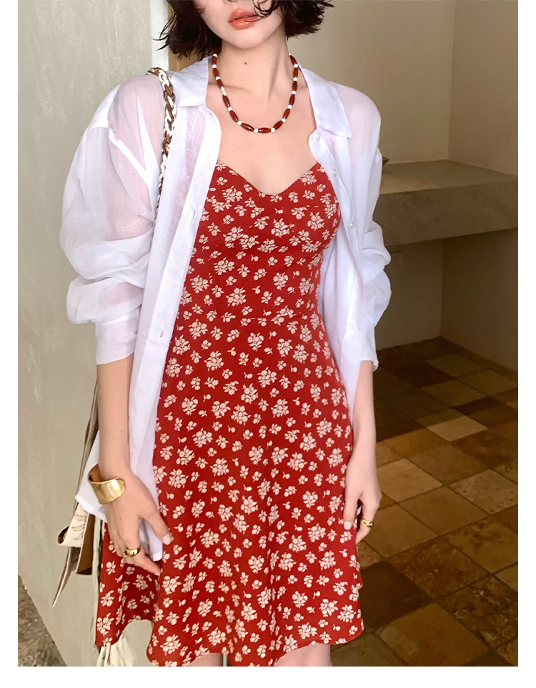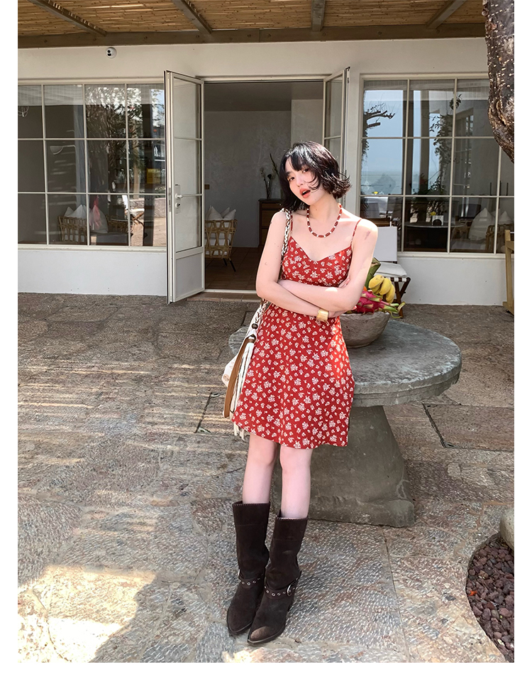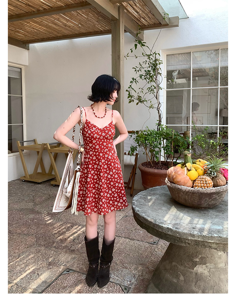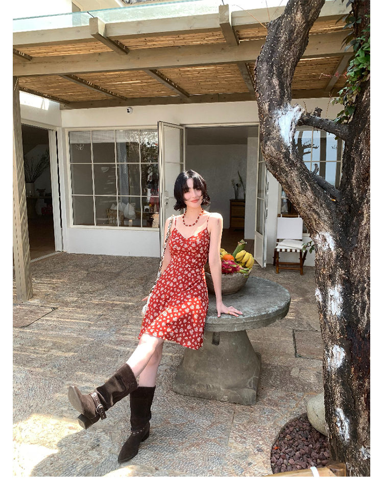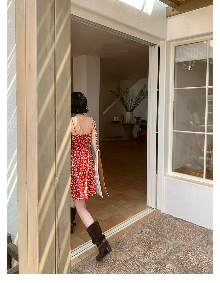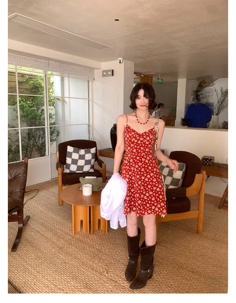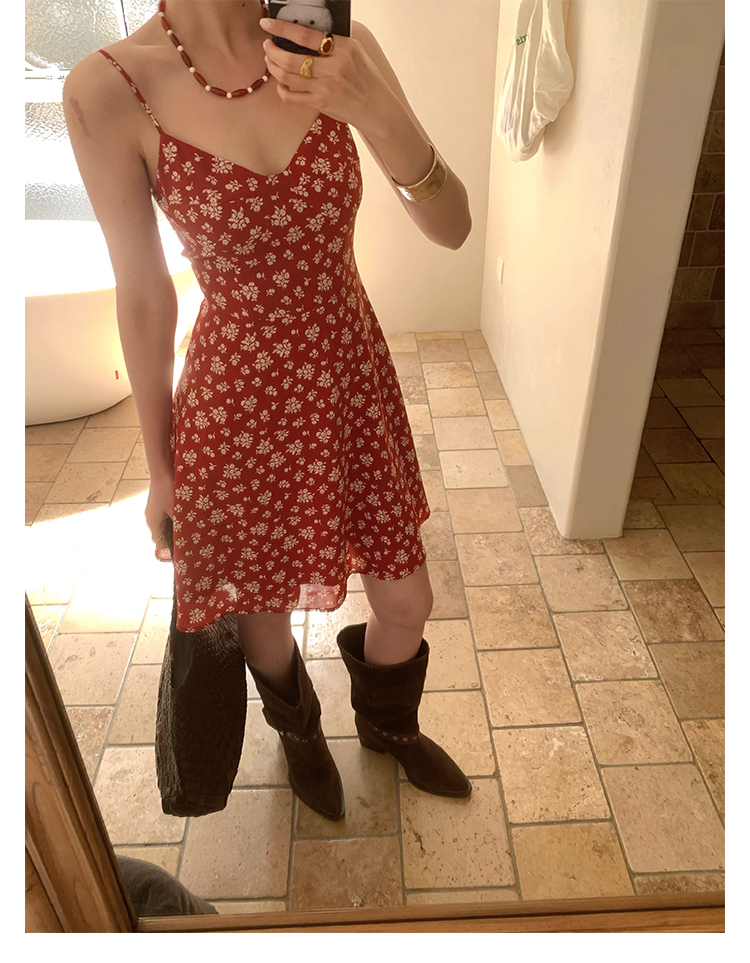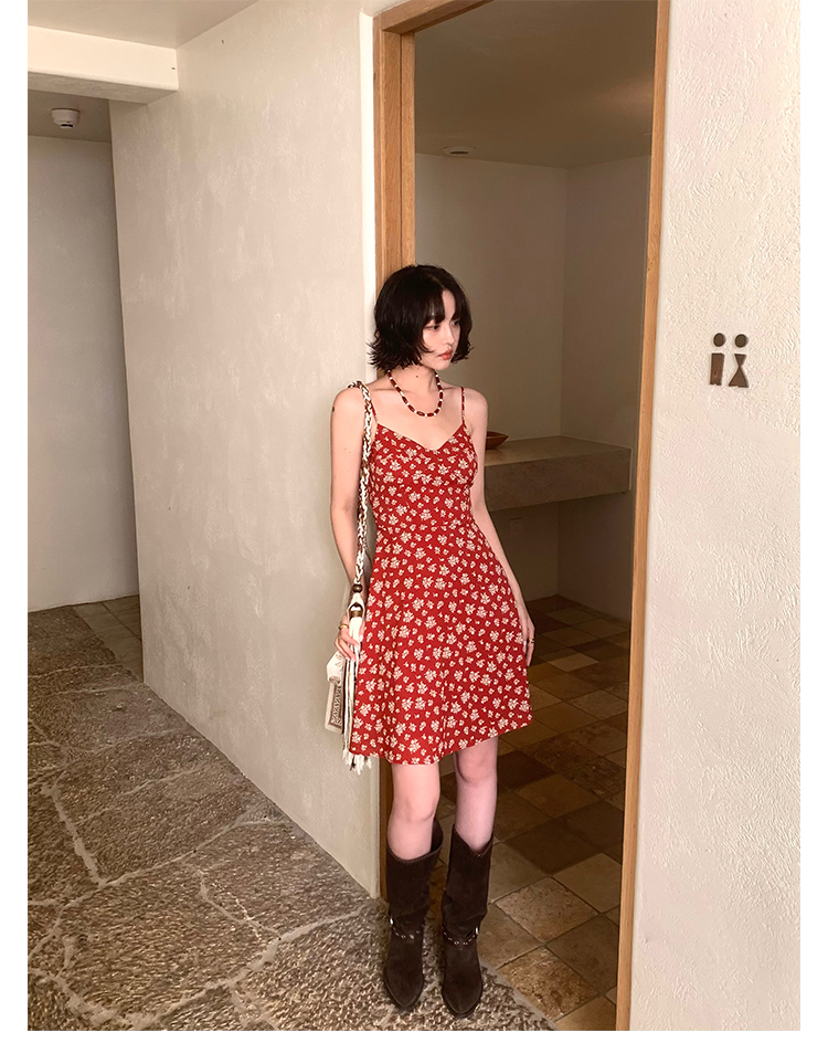 [Vermilion Cherry] French Floral Suspender Mini Dress