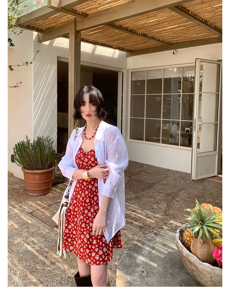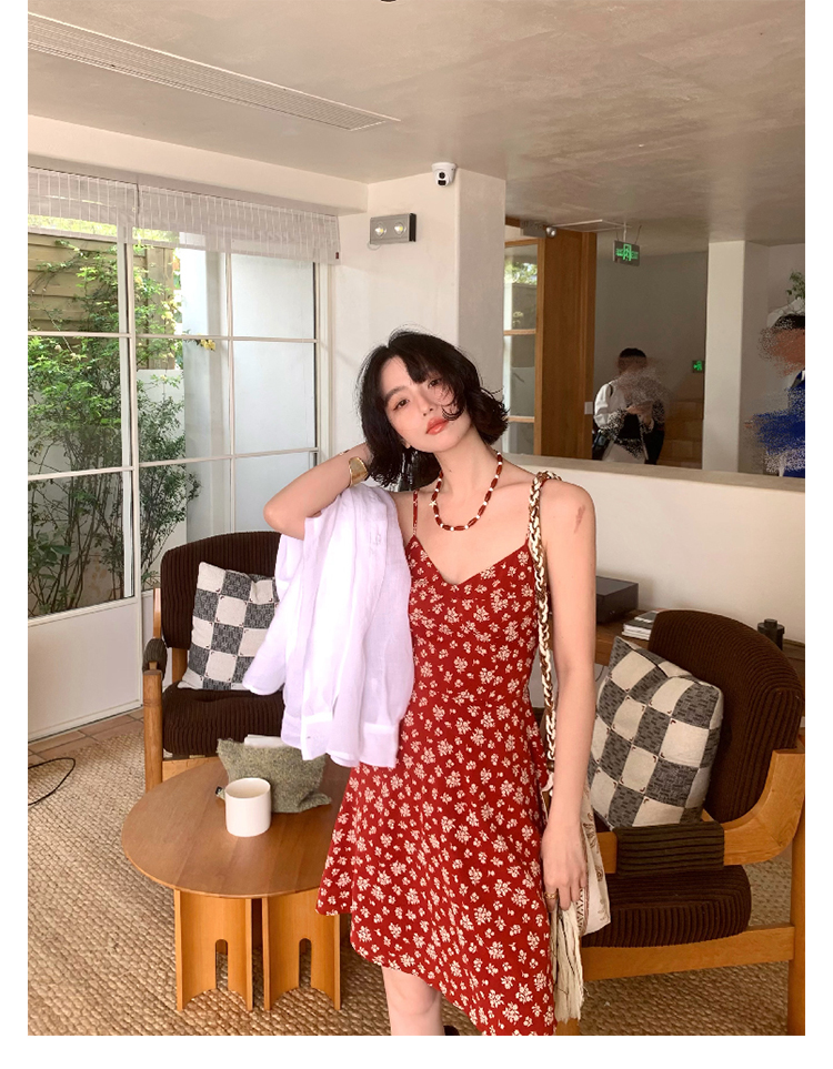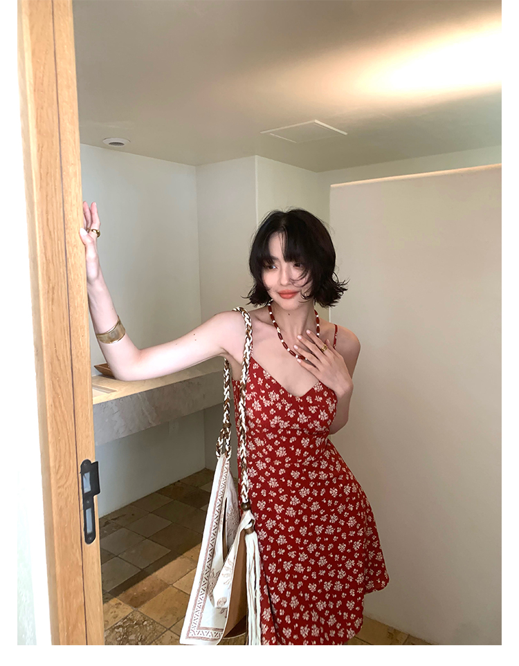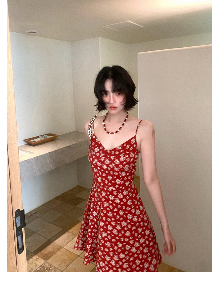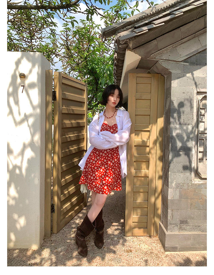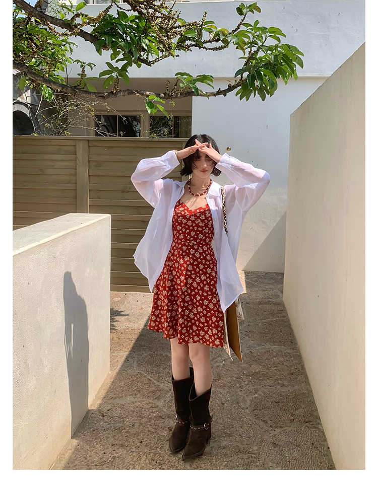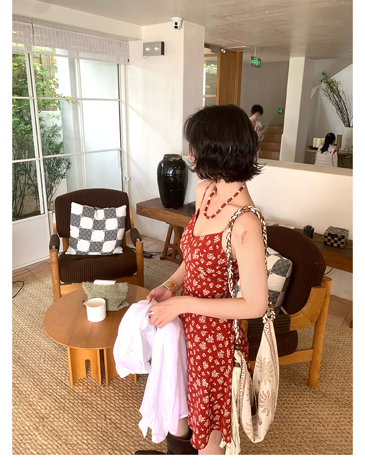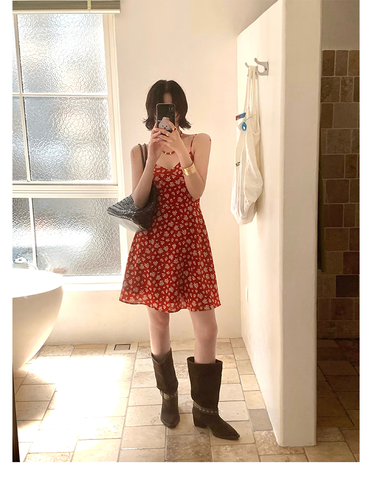 [Vermilion Cherry] French Floral Suspender Mini Dress