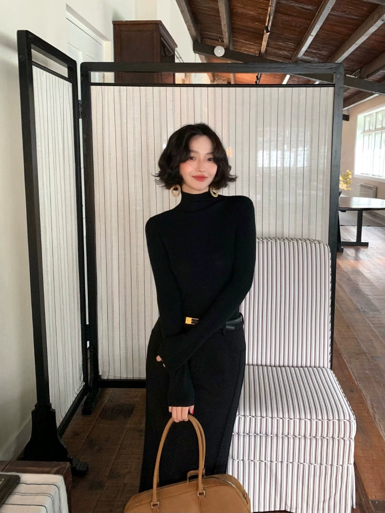 Winter High Neck Cropped Knit Top – Vintage Elegance