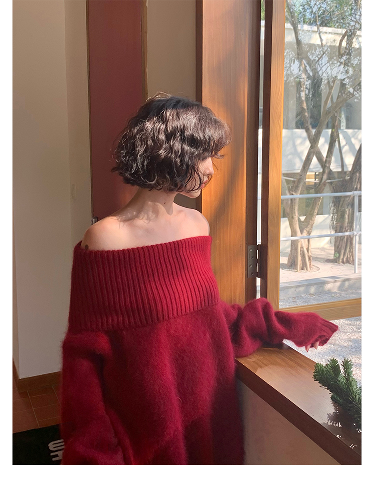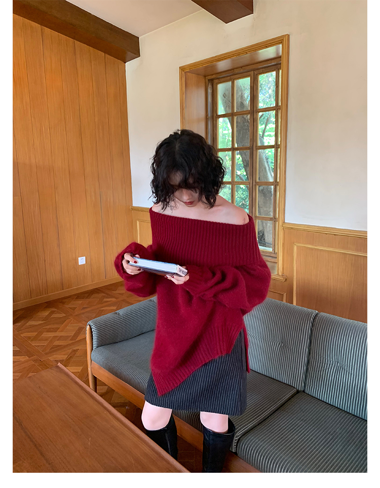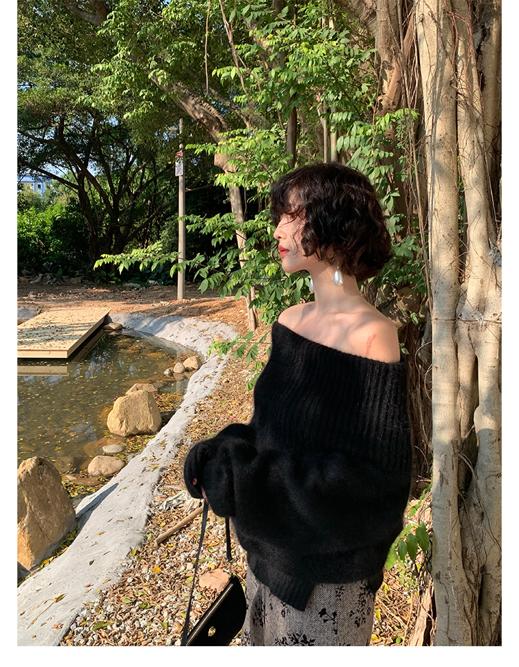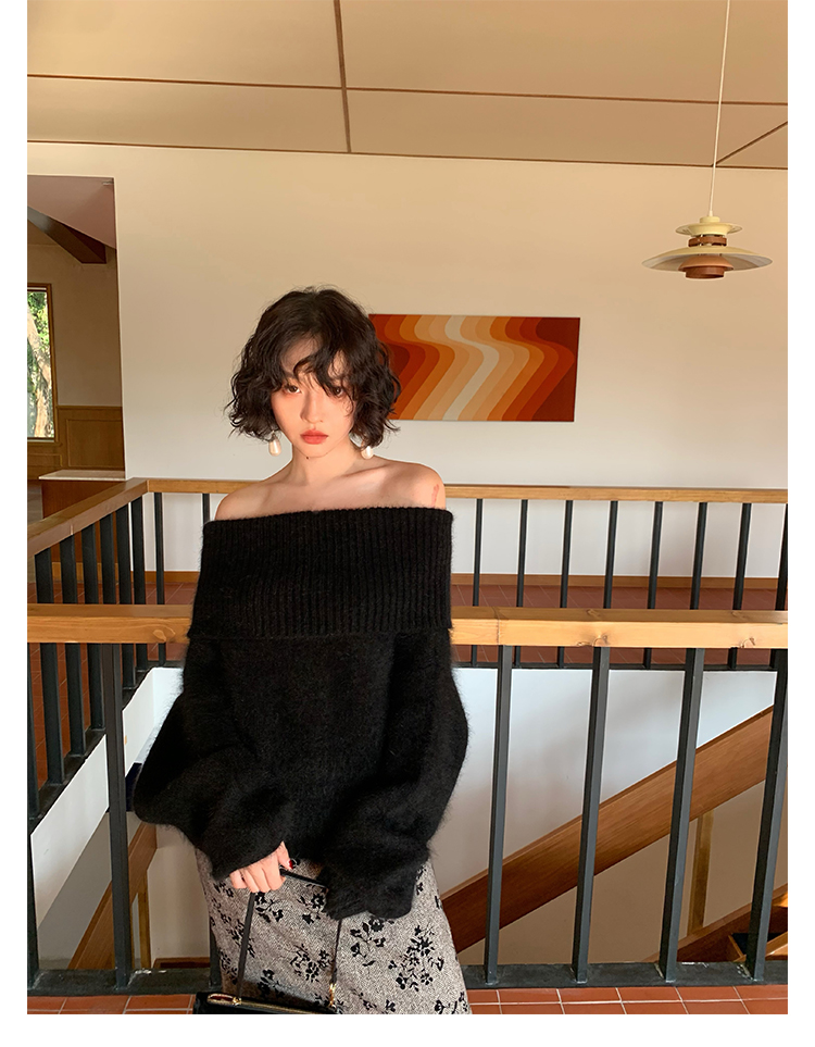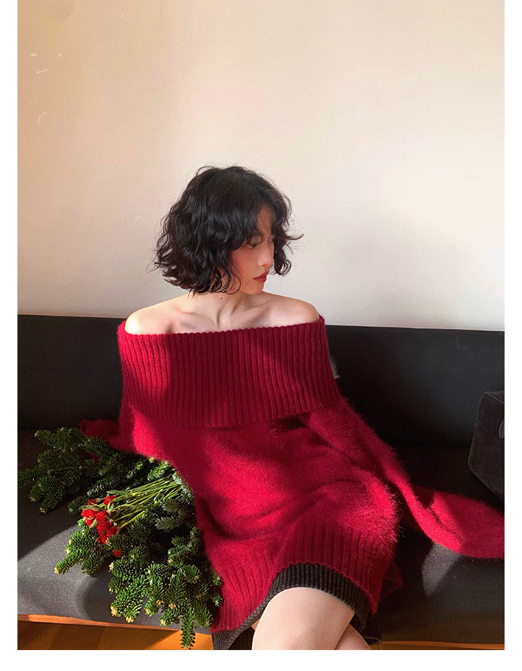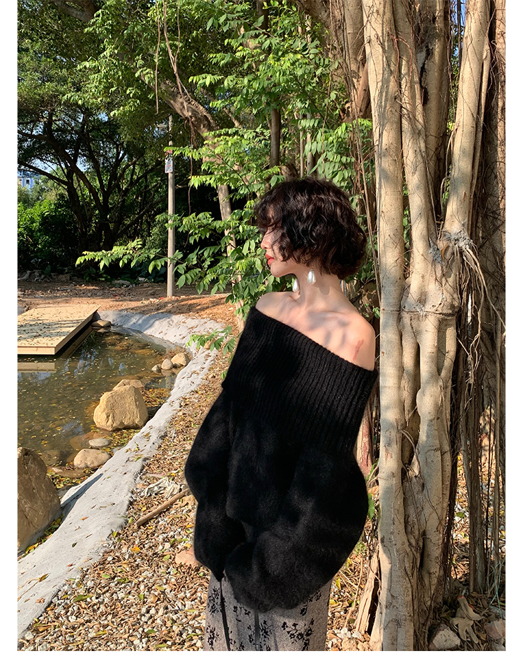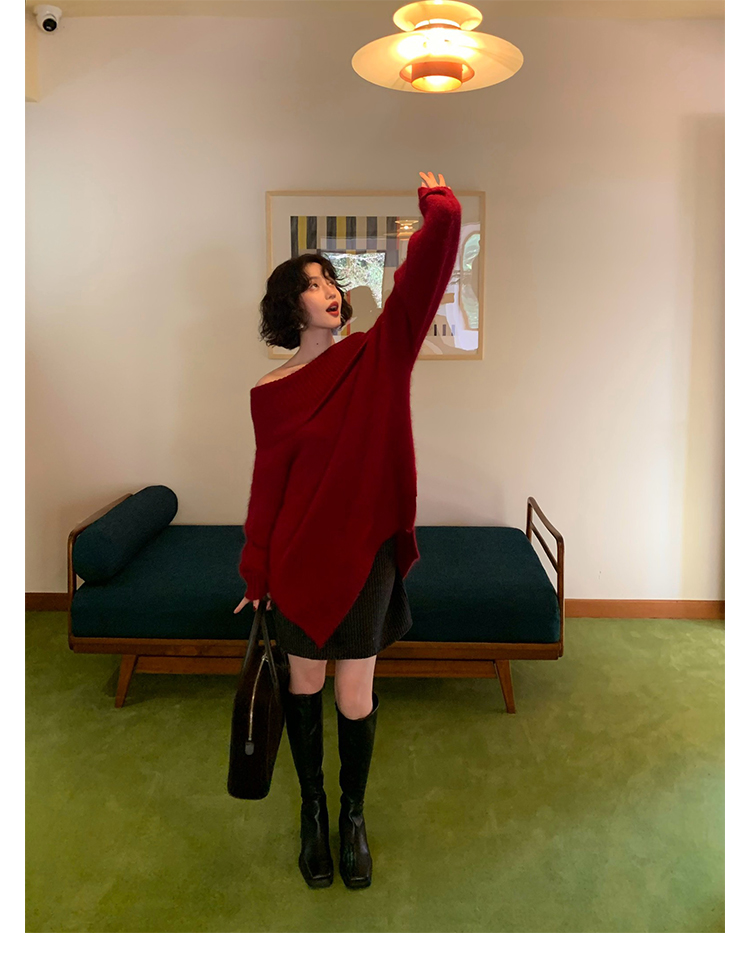 One-Shoulder Raccoon Fleece Wool Sweater – Retro Knit Charm