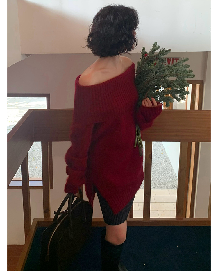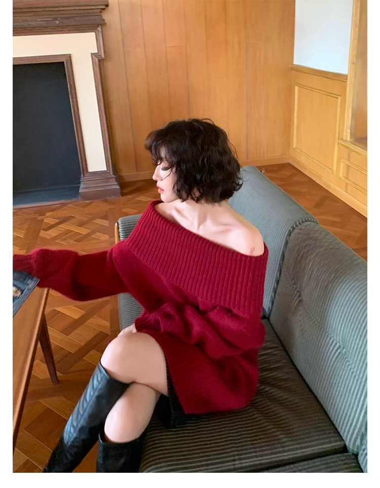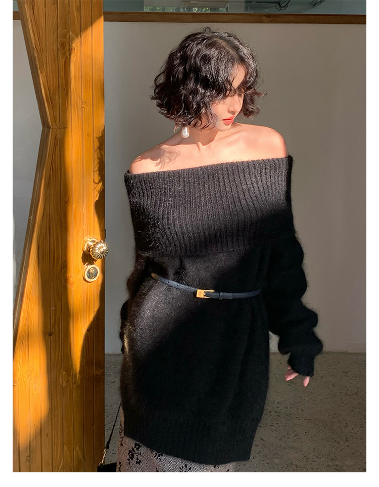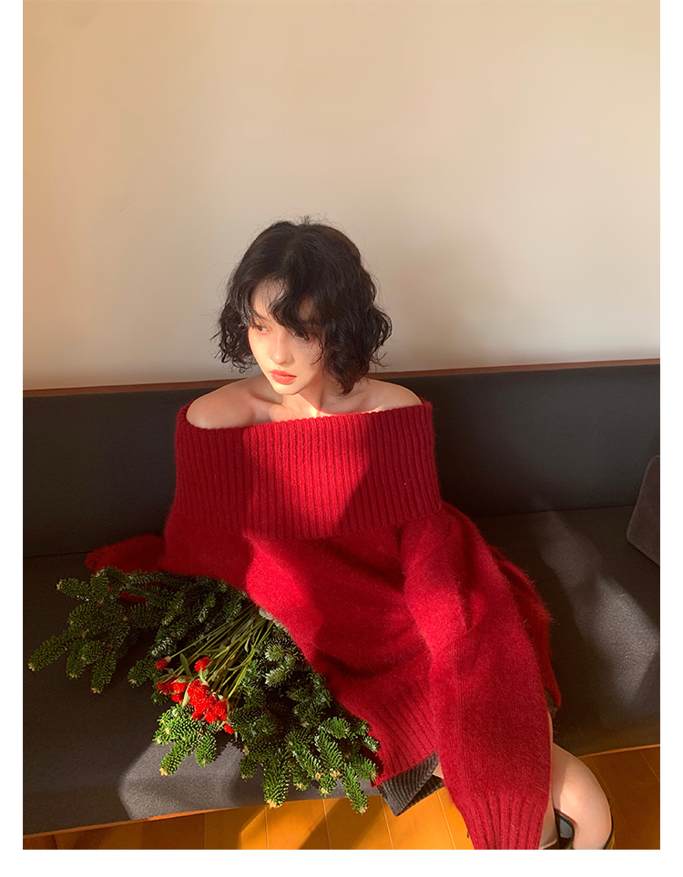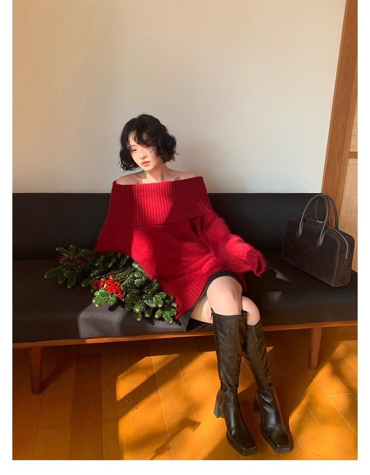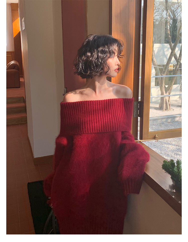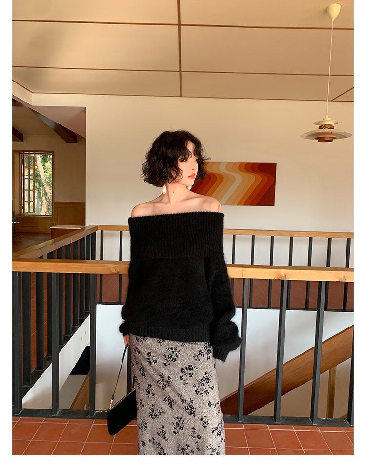 One-Shoulder Raccoon Fleece Wool Sweater – Retro Knit Charm