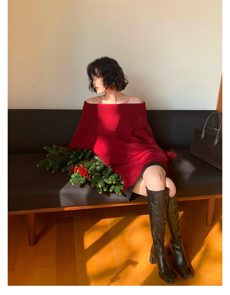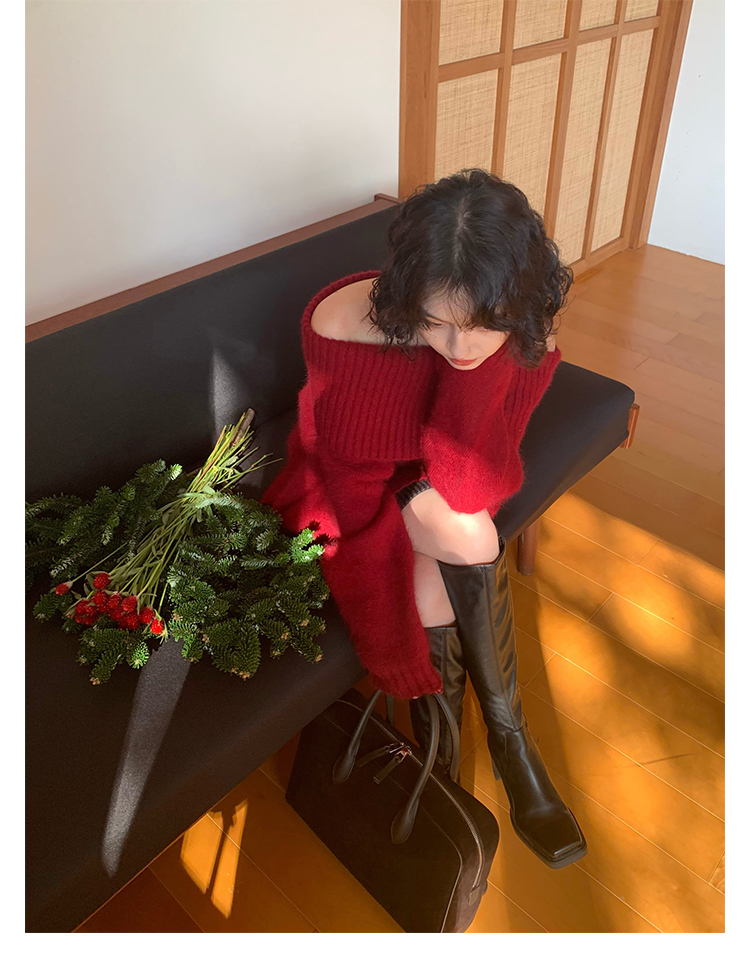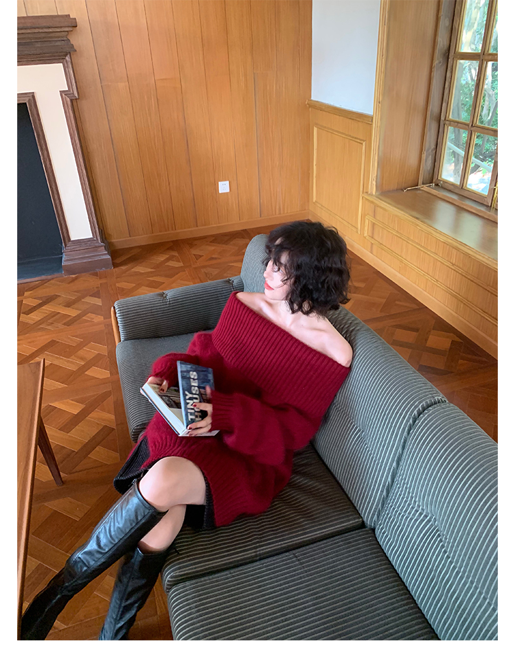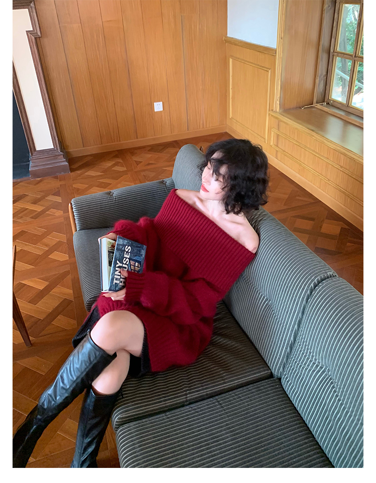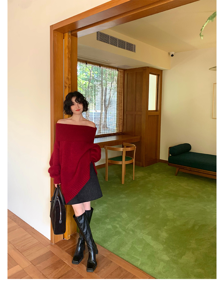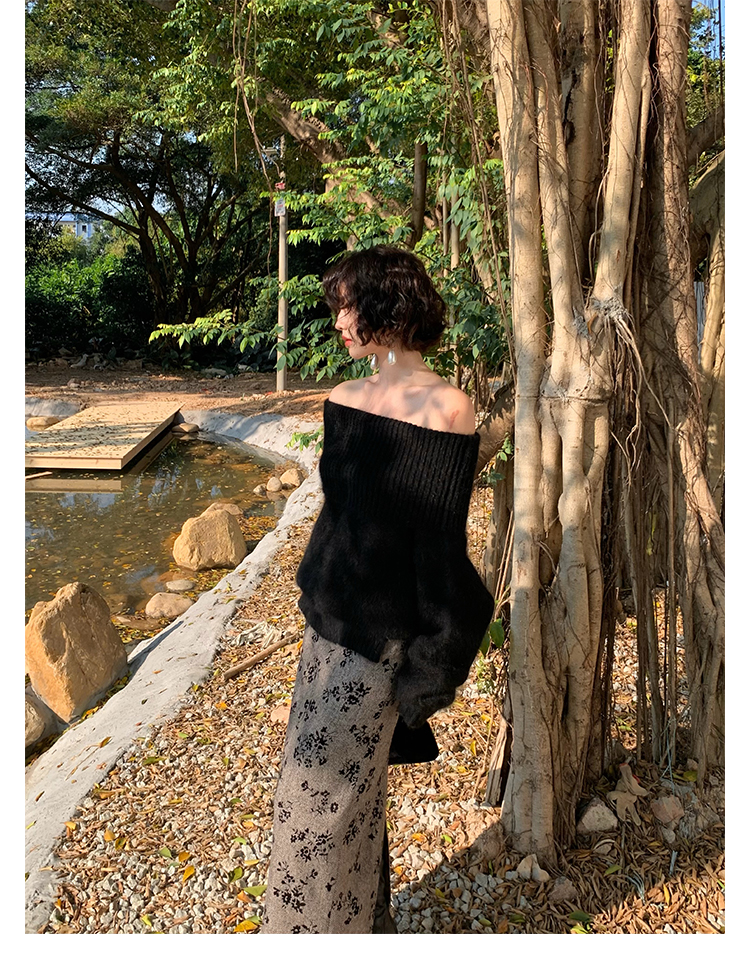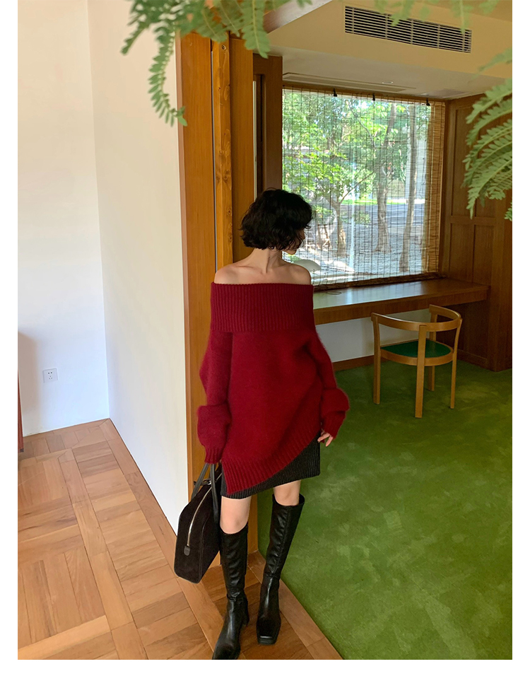 One-Shoulder Raccoon Fleece Wool Sweater – Retro Knit Charm